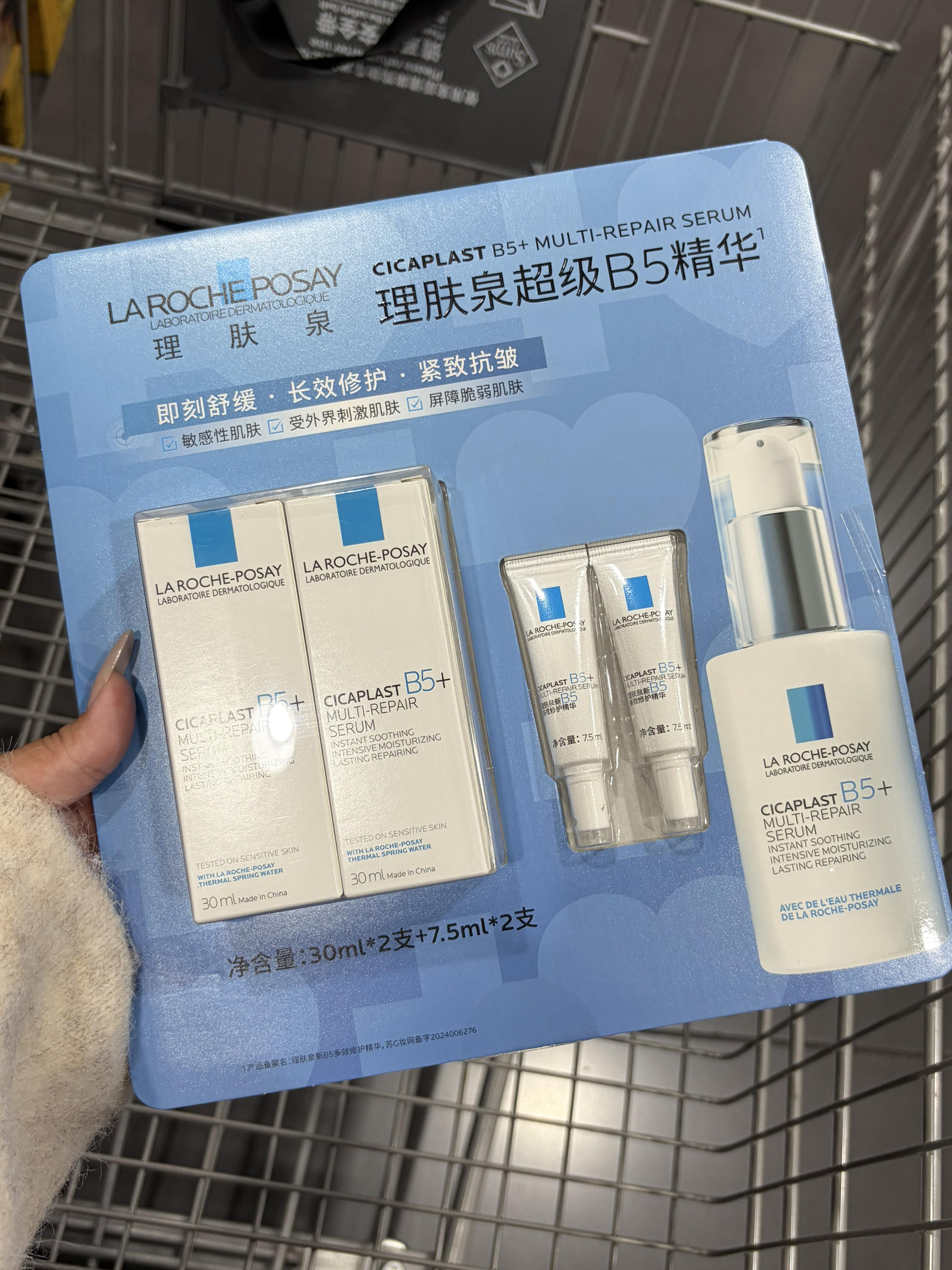 理肤泉超级B5精华这套真的太香了! 30ml2正装+7.5ml2小样❗️ 一套直接承包大半年的修护需求性价比直接拉满! 作为敏肌天菜 它能即刻舒缓泛红、长效修护屏障 还能紧致抗皱 不管是换季烂脸、刷酸后修护😍 还是日常维稳都超顶用 质地清爽好吸收 上脸不粘腻,敏感肌、屏障脆弱肌闭眼入!