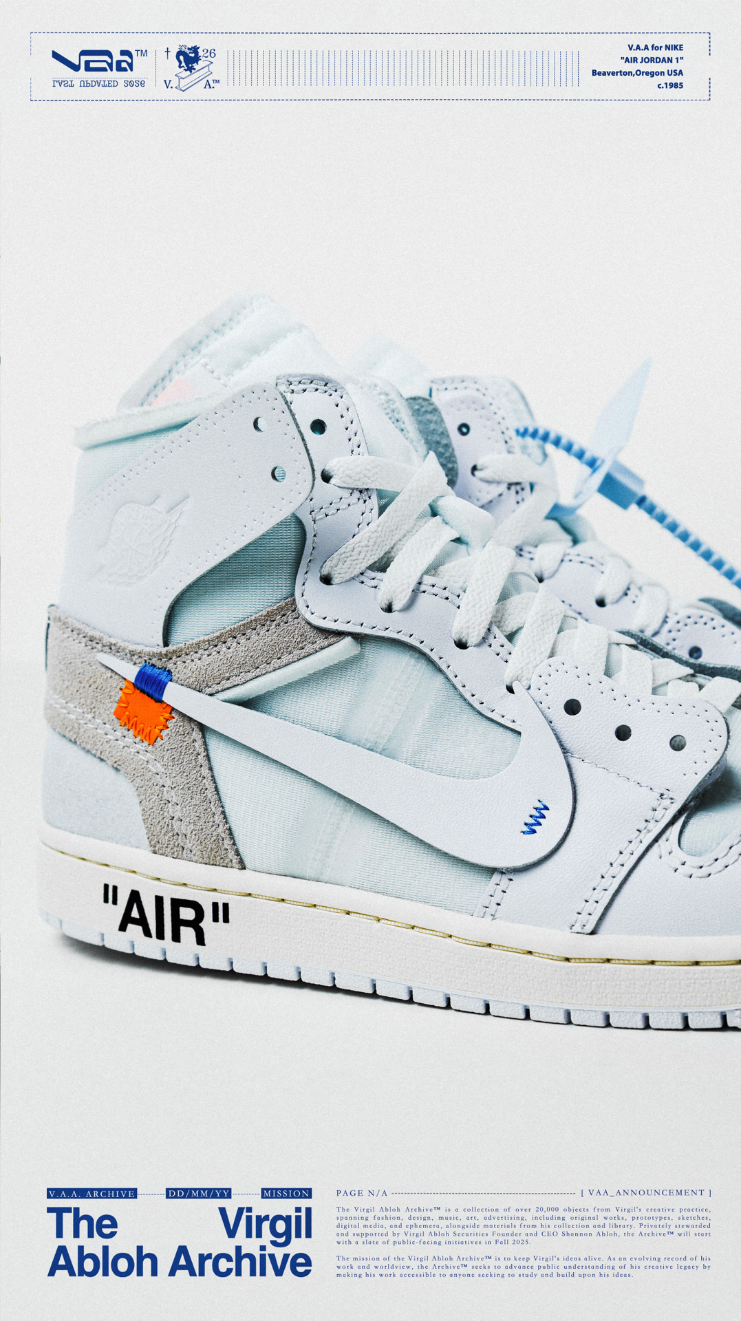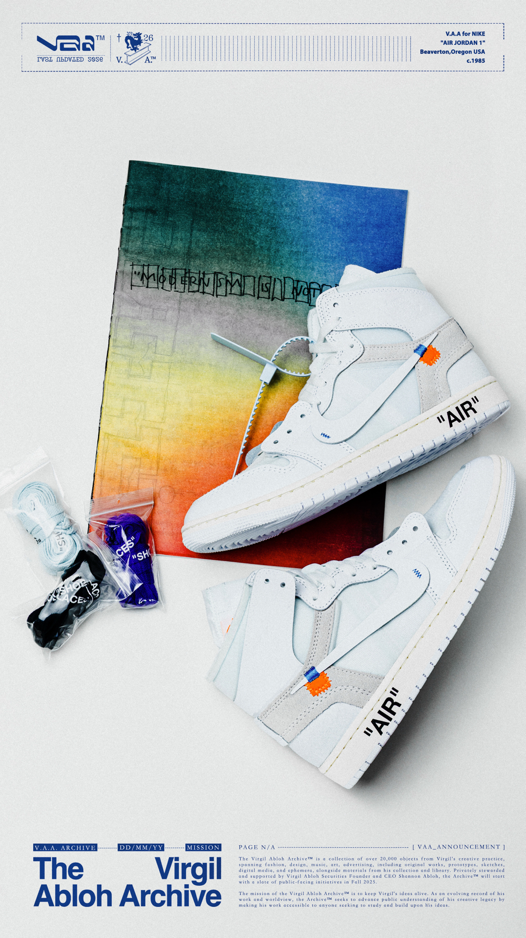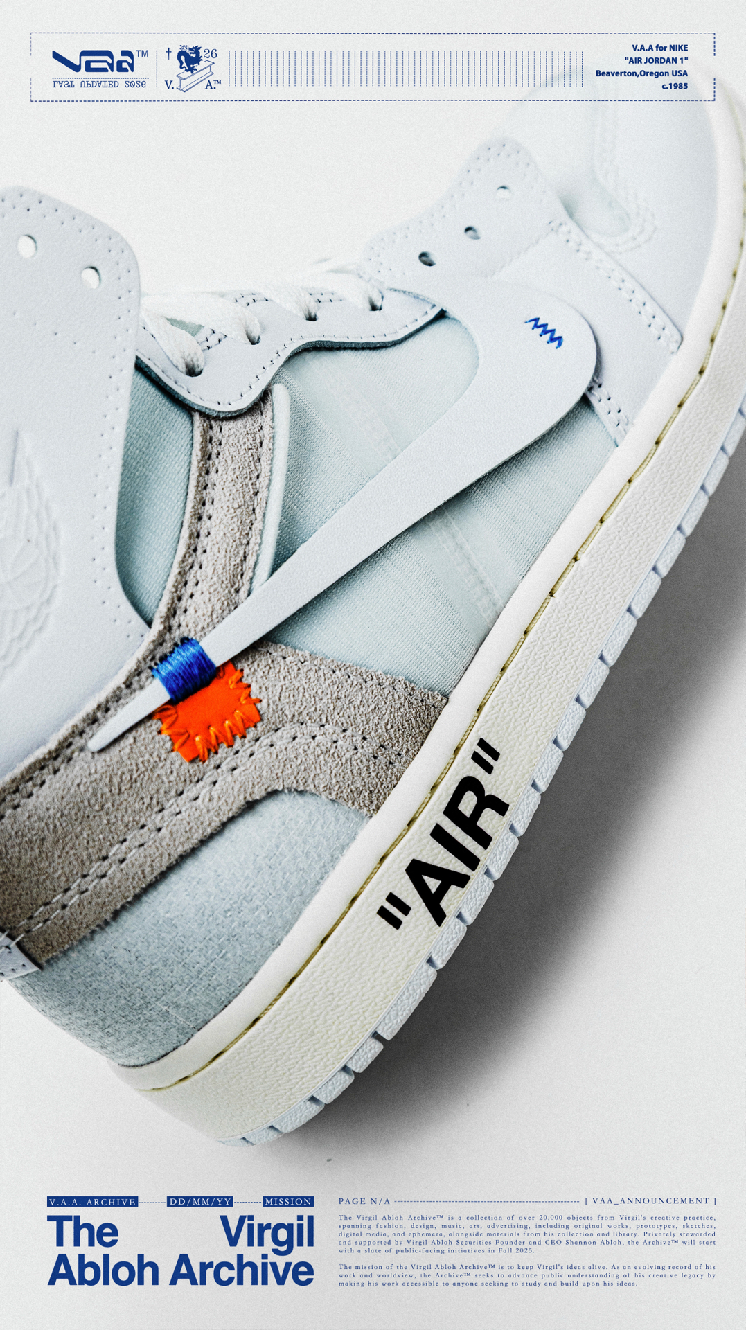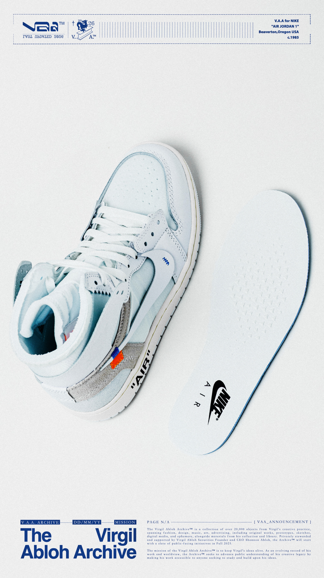 🫧白驹过隙🫧 👟:V.A.A. x Air Jordan 1 High OG Virgil Abloh与Jordan Brand在2018年推出的off-white x Air Jordan 1可以说是一石激起千层浪,开启了一个属于球鞋的黄金时代,如今时隔8年,这双曾经专属欧洲的纯白配色以V.A.A(Virgil Abloh Archive)的形式再次迎来回归,虽然鞋款在细节处与2018年作出...
