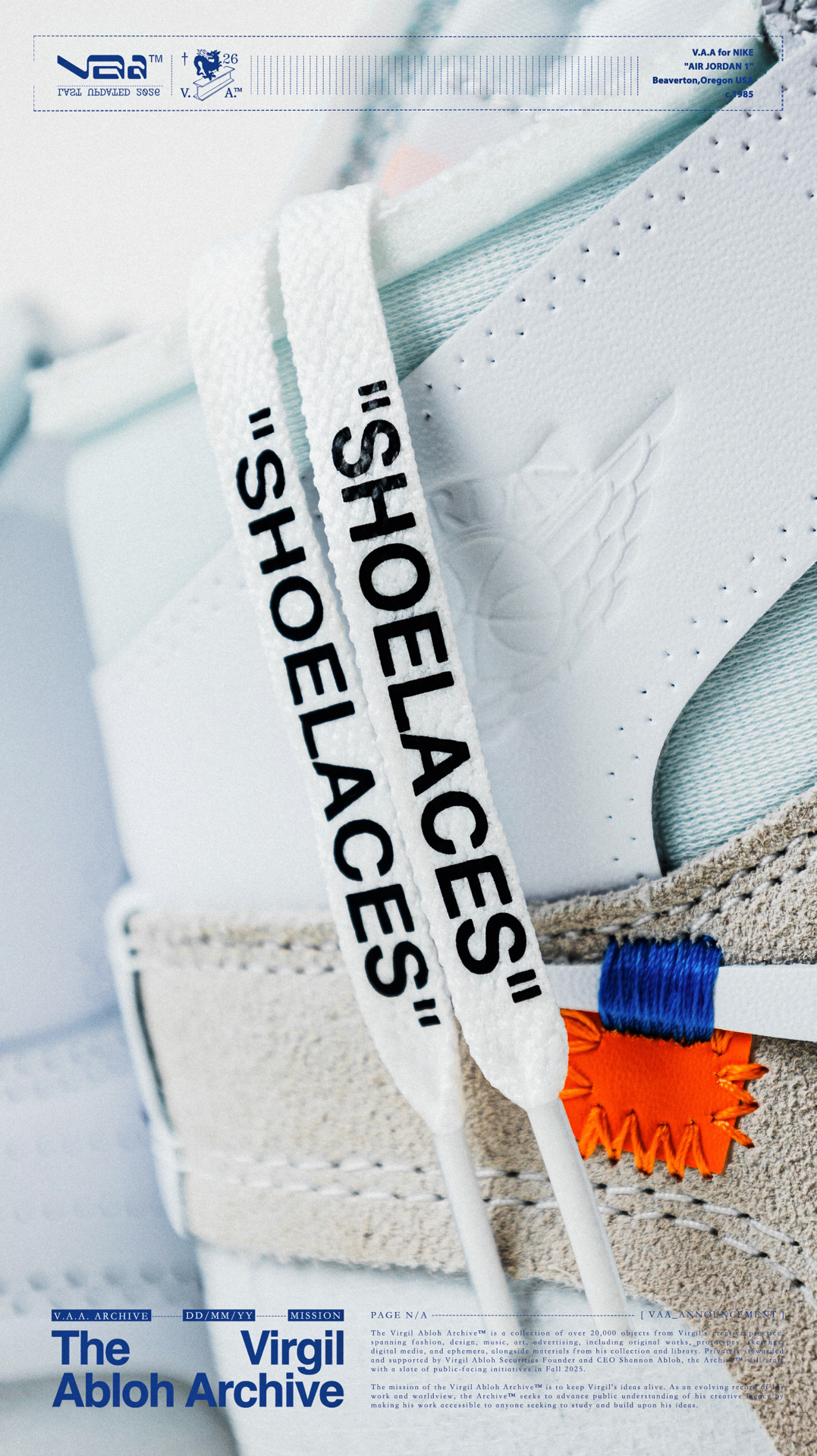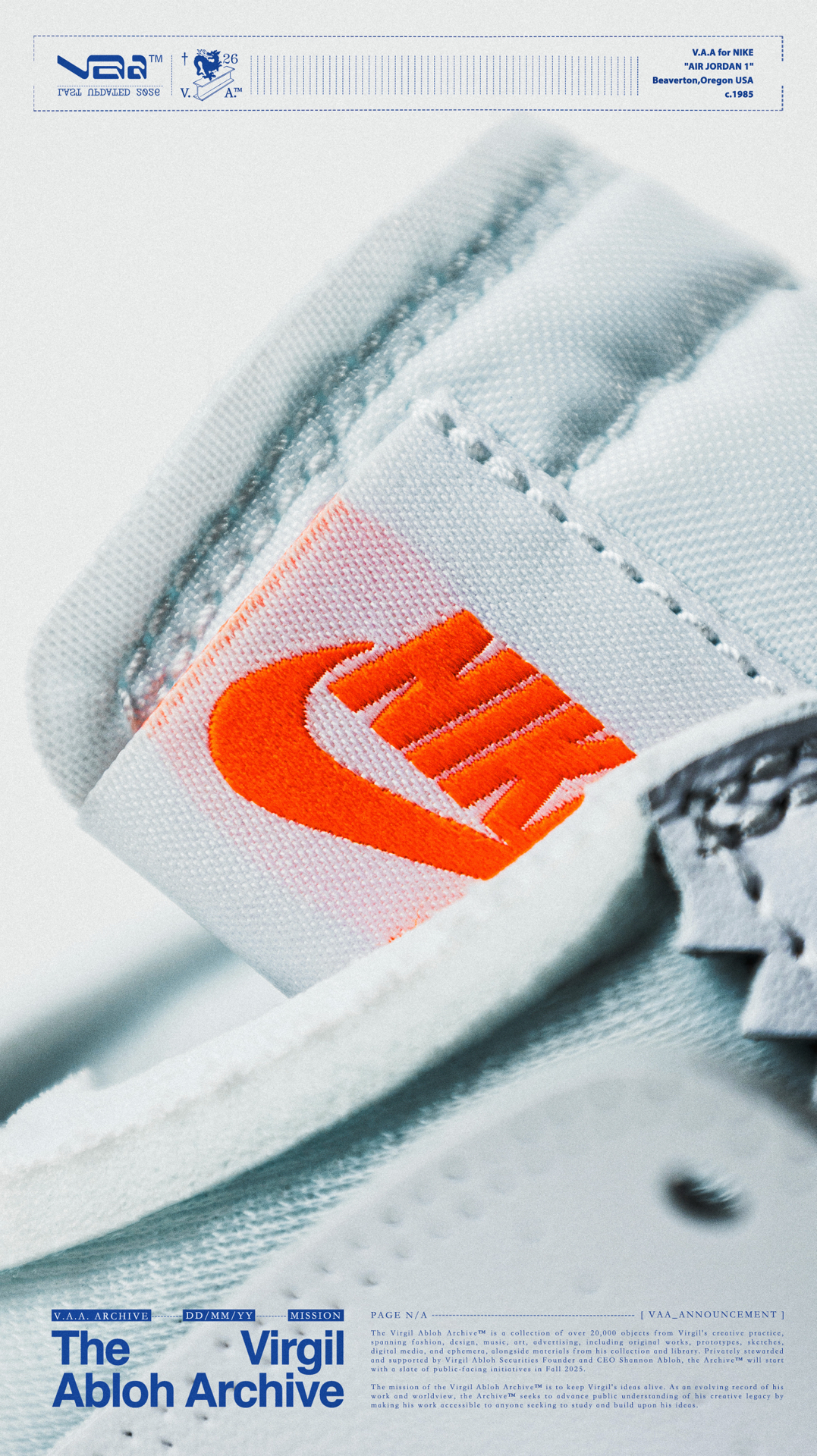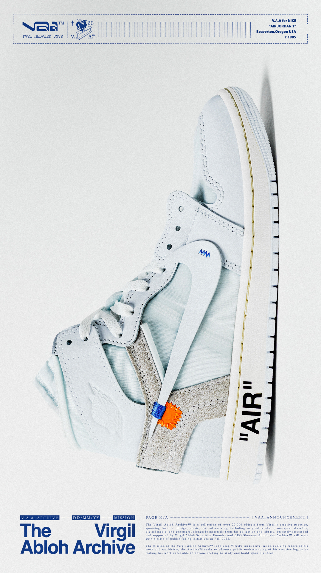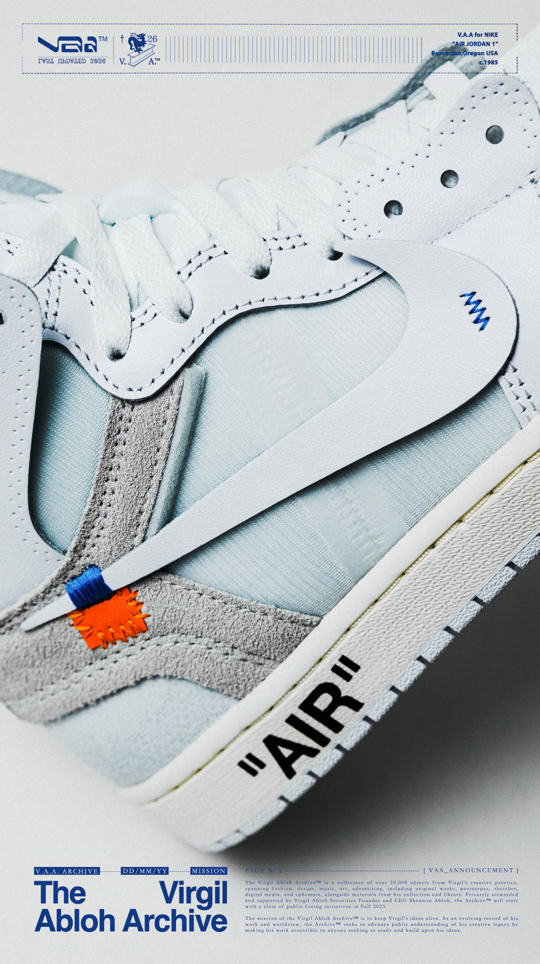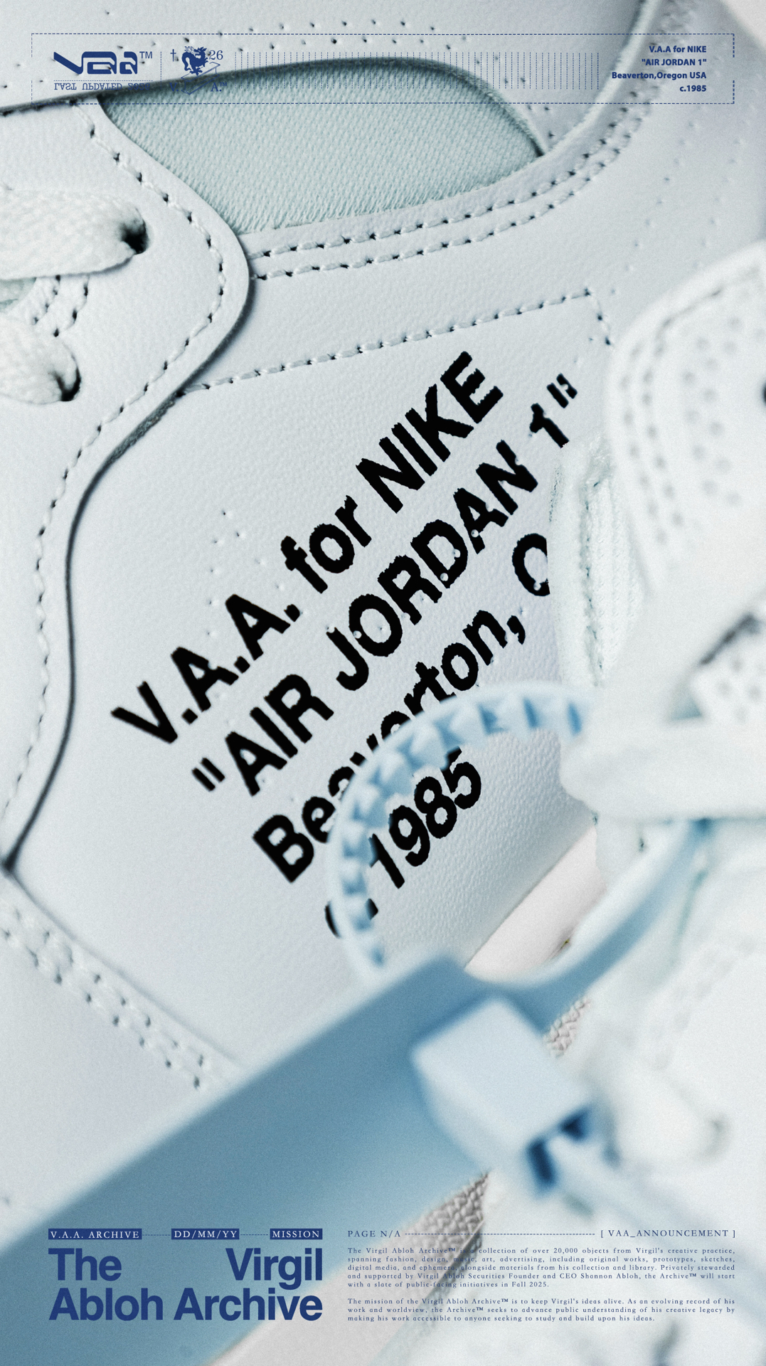 🫧白驹过隙🫧 👟:V.A.A. x Air Jordan 1 High OG Virgil Abloh与Jordan Brand在2018年推出的off-white x Air Jordan 1可以说是一石激起千层浪,开启了一个属于球鞋的黄金时代,如今时隔8年,这双曾经专属欧洲的纯白配色以V.A.A(Virgil Abloh Archive)的形式再次迎来回归,虽然鞋款在细节处与2018年作出...