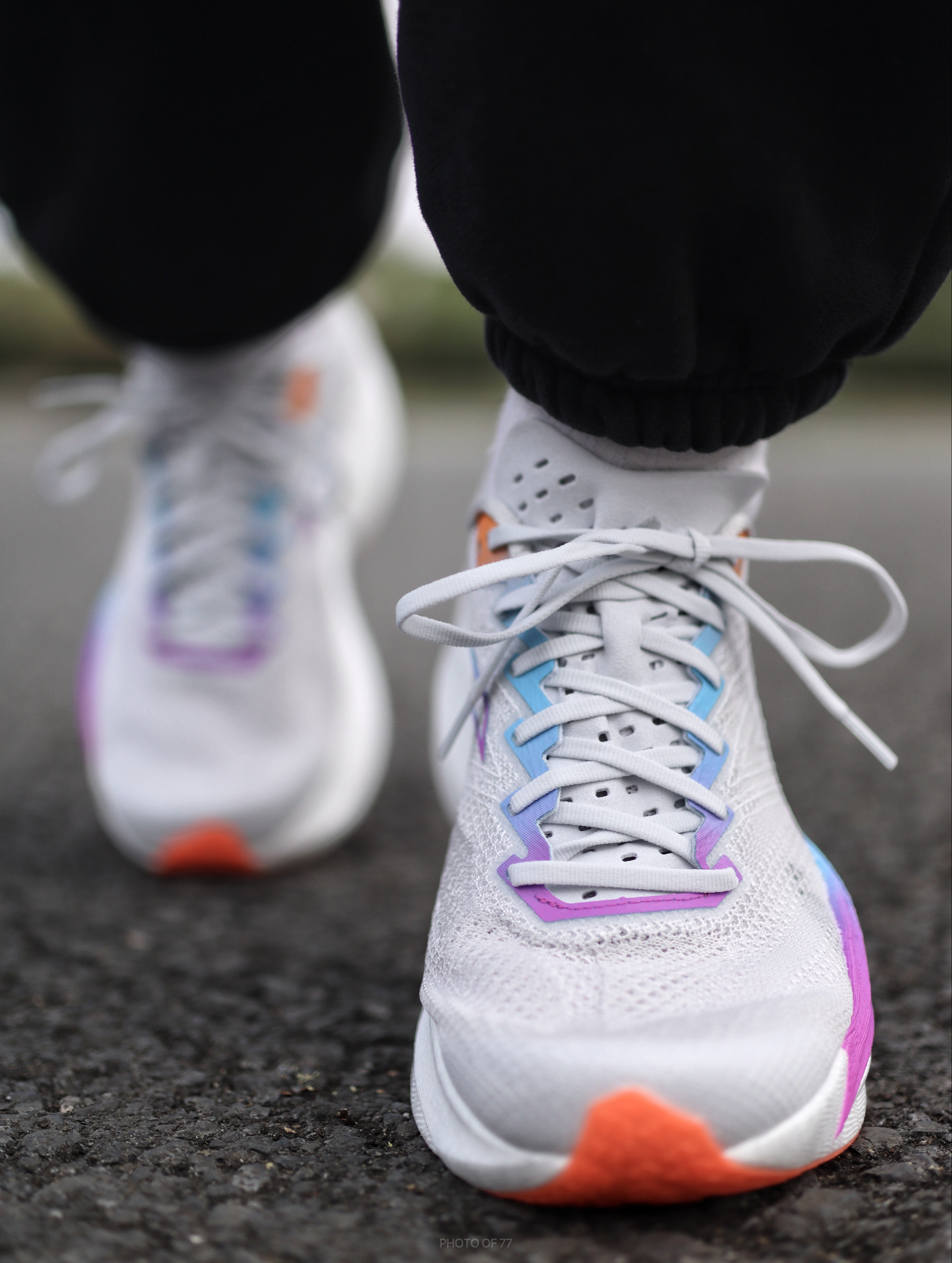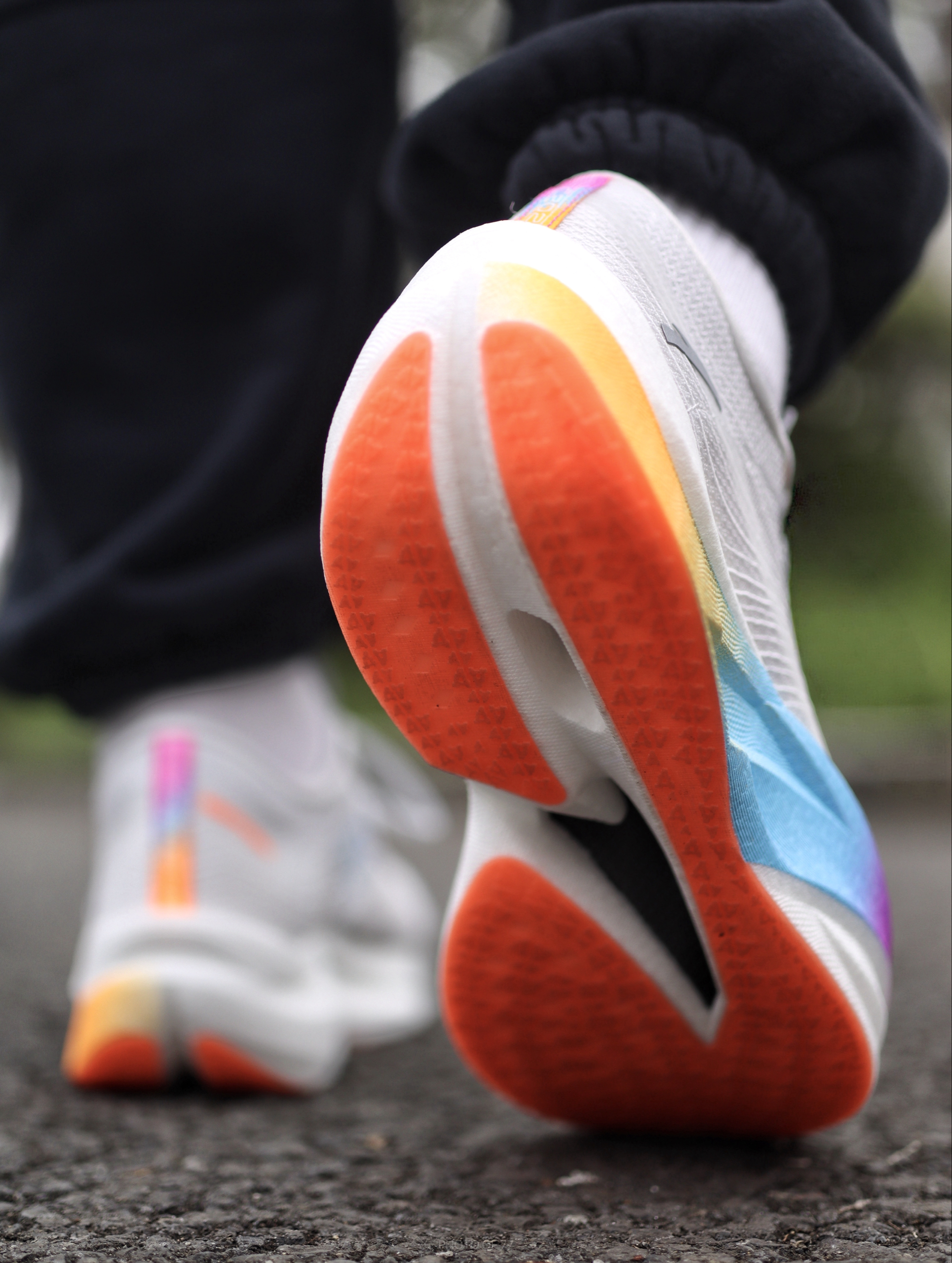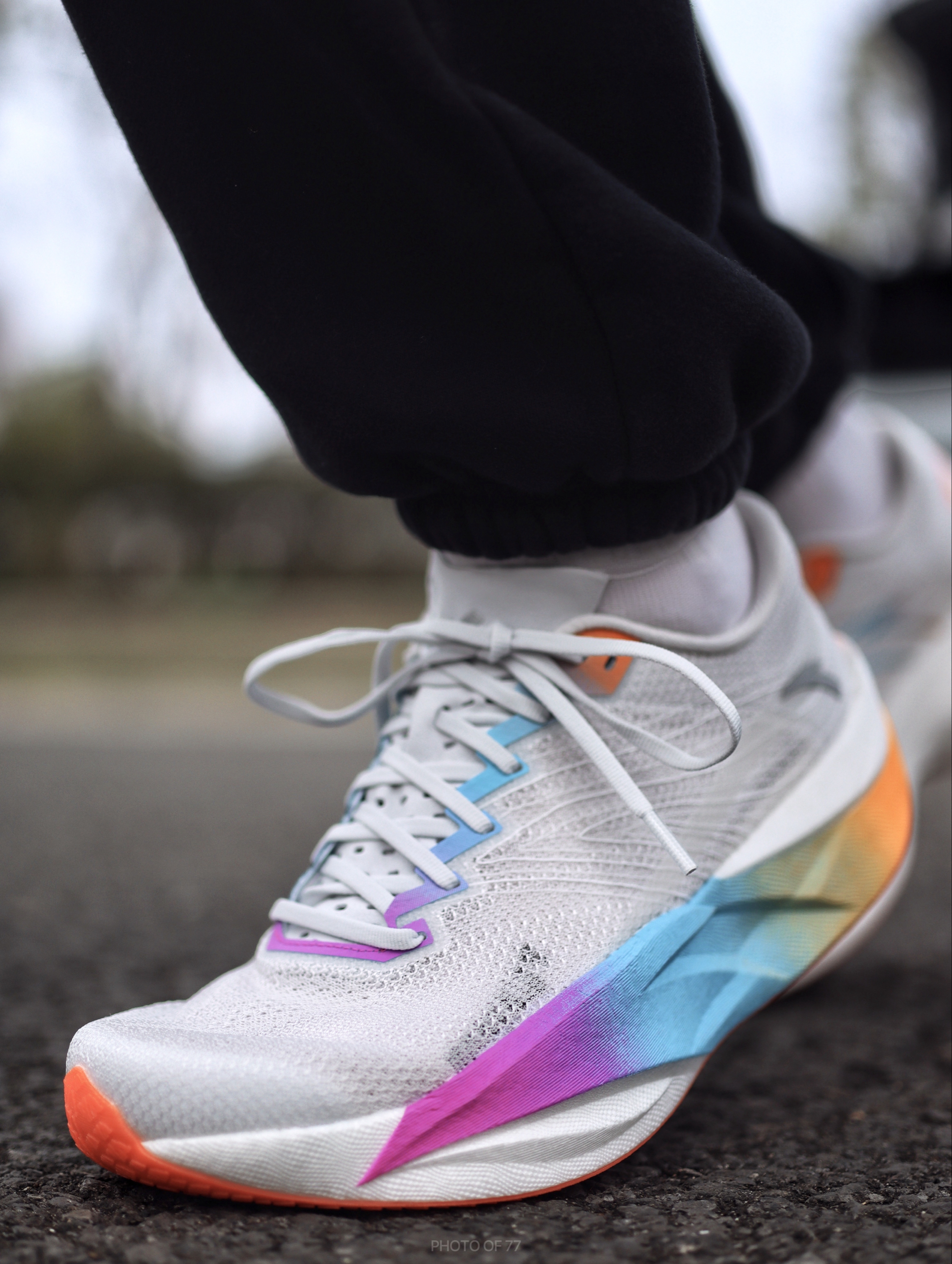 今天上脚的是这双C202 6.0的新配色灰蓝红,颜值我觉得还是很有速度感,上脚后辨识度很高!! 鞋面材质很软,透气性也不错,适合即将到来的夏天穿,上脚之后静态脚感的话偏软弹,跑起来落地能感受到双层氮科技对膝盖带来的缓冲很明显,配合全掌碳板,有着不错的助推感。 适配人群:学生党体考体测、全马330-430跑者。 鞋子不偏码,正常尺码选择就可以了(脚背偏宽也正常尺码选)!!