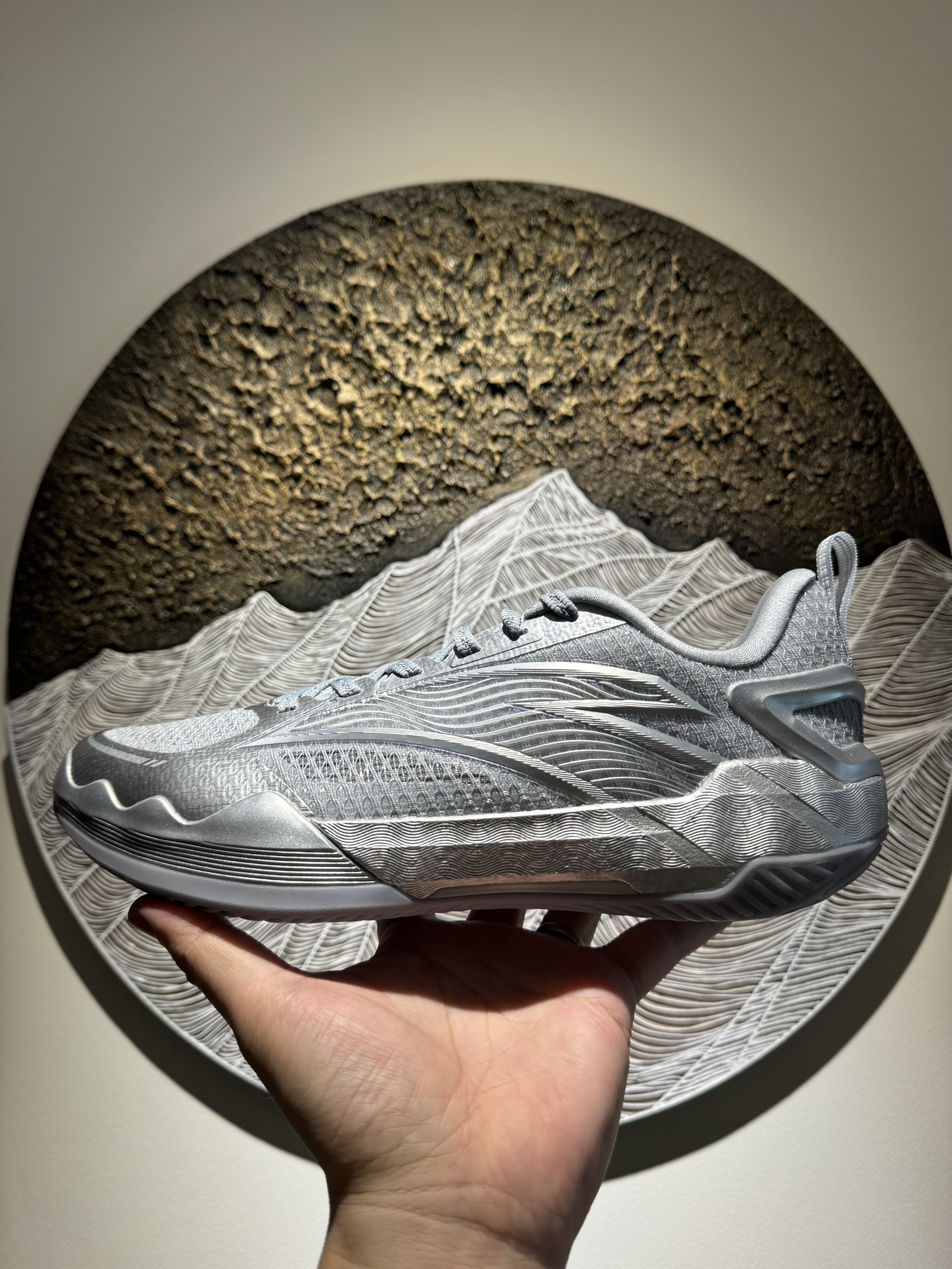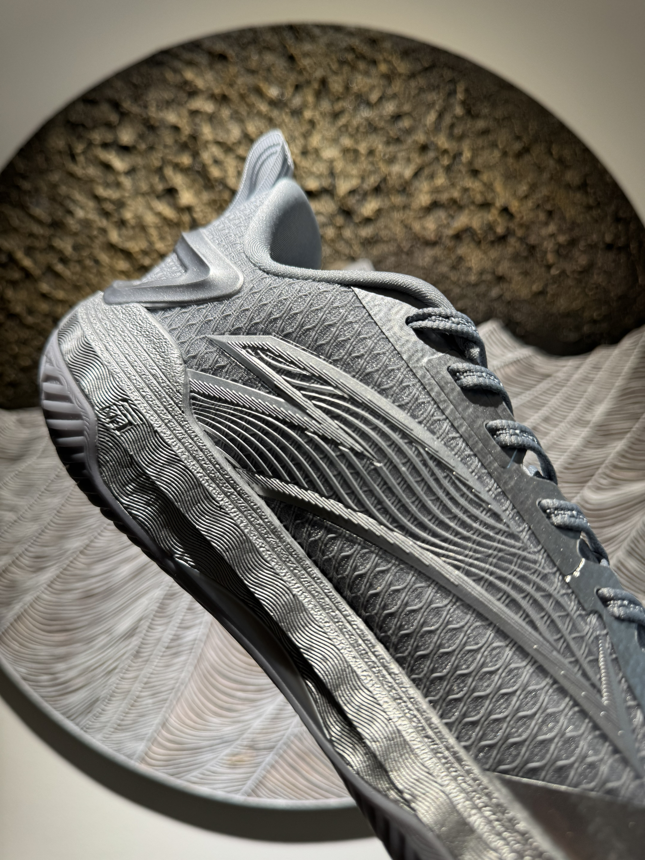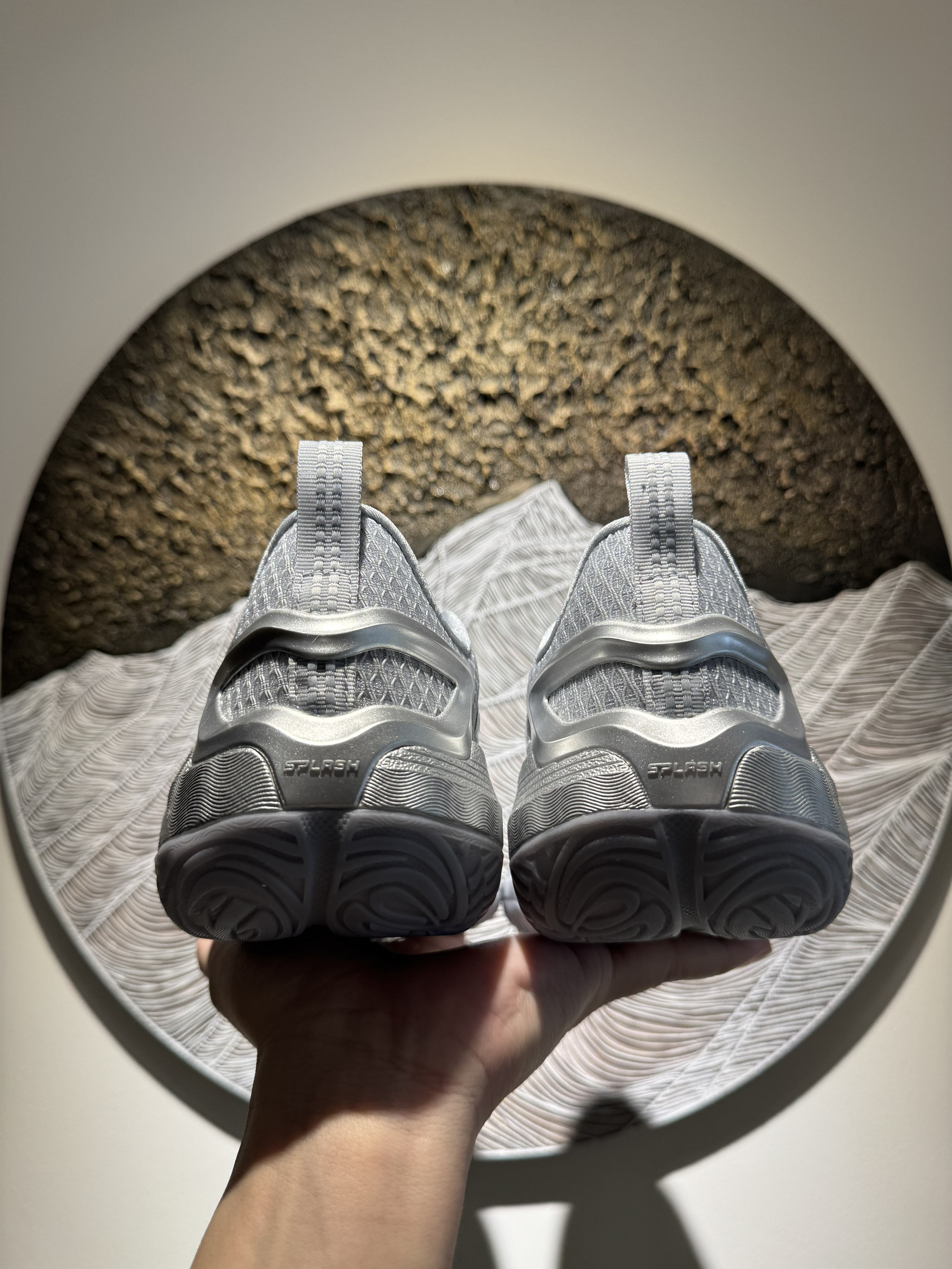 #夏日透气实战王 #夏日外场一弹即发 #轻透实战派 #水花8 #水花8代流光 上手后有几个直观感受: 质量轻,面薄透,中底弹 绞综工艺增加鞋面韧性,镂空透气开窗 适配炎热的盛夏,透气性加强的同时 鞋面强度不减,银灰配色质感细腻 不同光线下,展示出不同的高级感 性能表现: LTR橡胶,中底回弹反馈直接 前中后TPU抗扭防侧翻,颜值在线➕轻质快靴