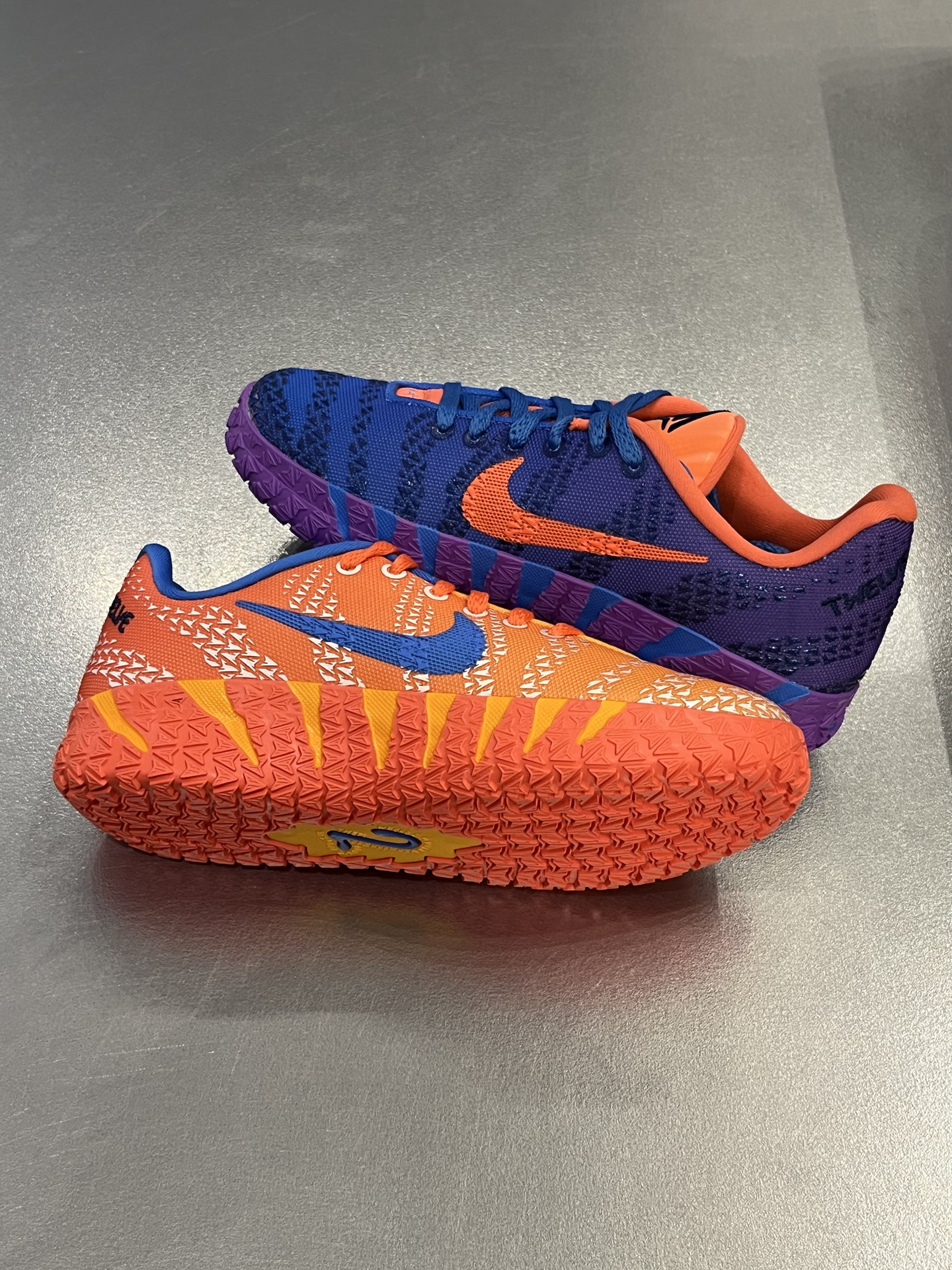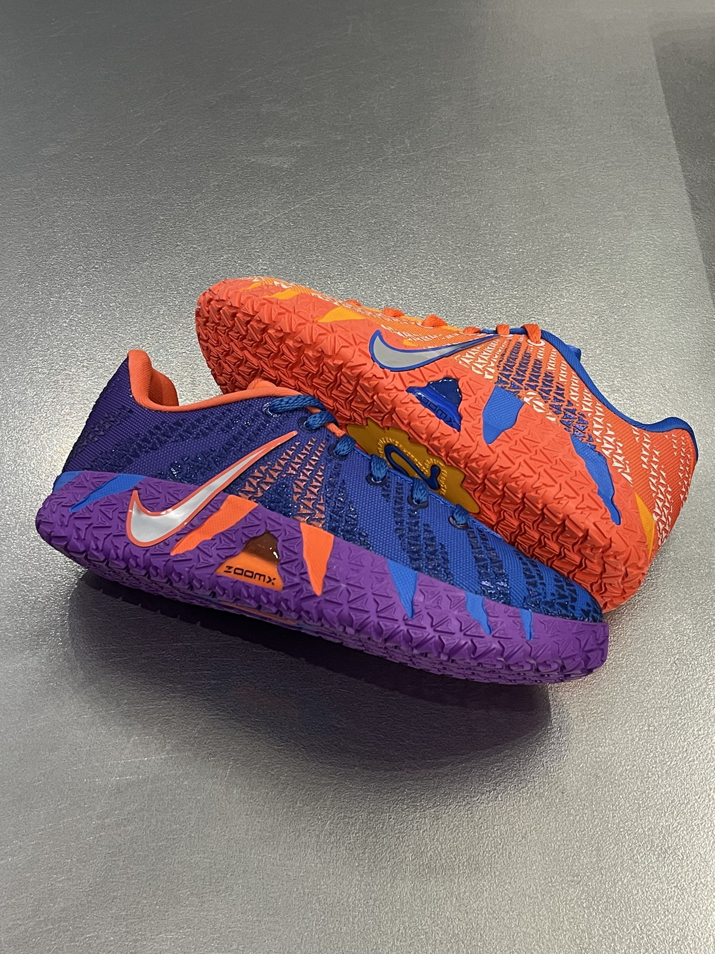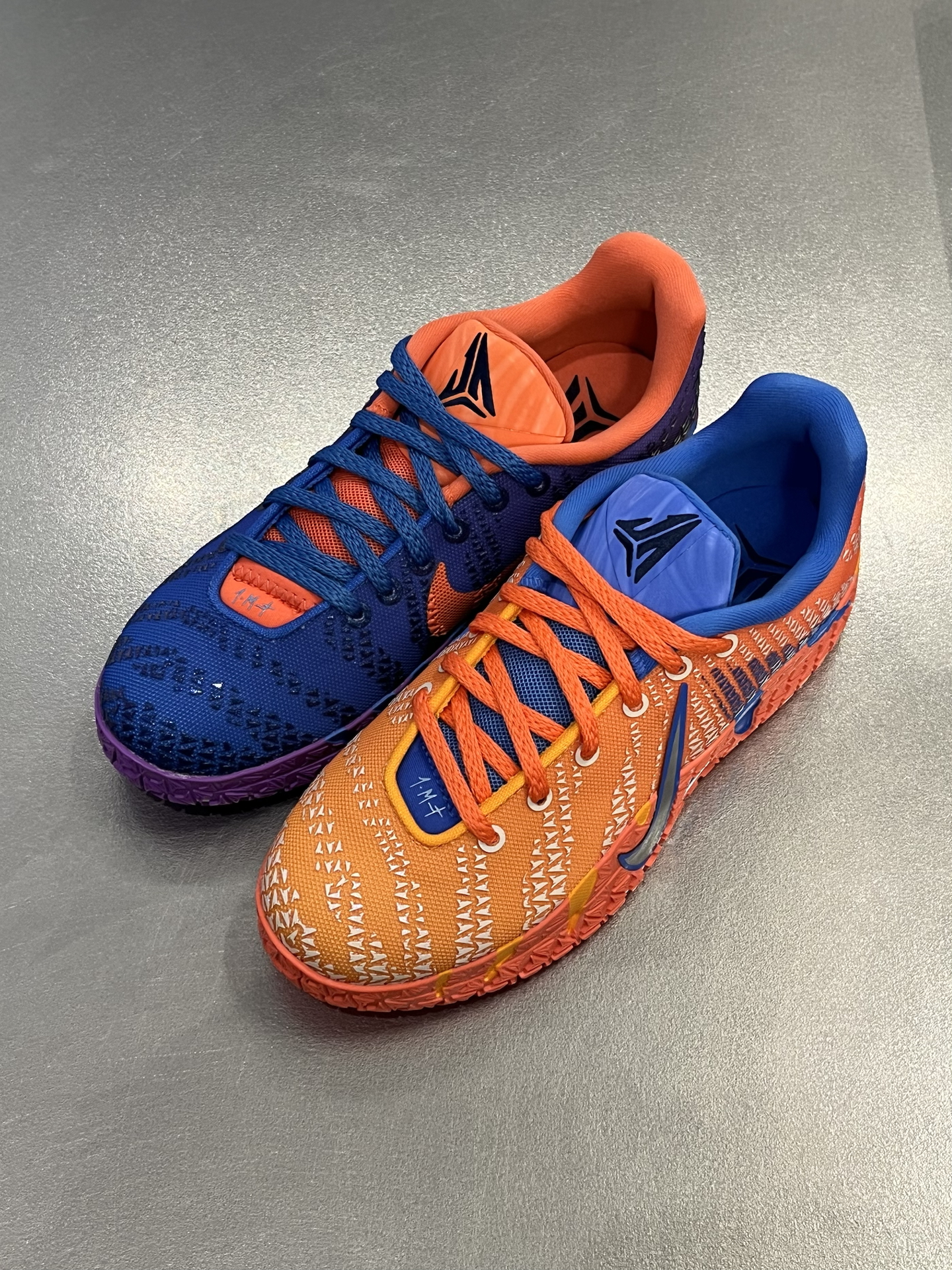 这双Ja3左右脚,分别是蓝橙色很亮眼,很难不多看几眼,妥妥的夏日多巴胺风格 鞋子重量很轻,感觉有点像跑鞋,跑跳起来就很灵活,不会有太多负担 中底是ZoomX泡绵,软弹的脚感,不用大体重也能明显感觉到缓震 这个底是橡胶鞋底,学生党在学校室外的水泥地、塑胶场打球也没啥问题,抓地很稳,不用担心打滑