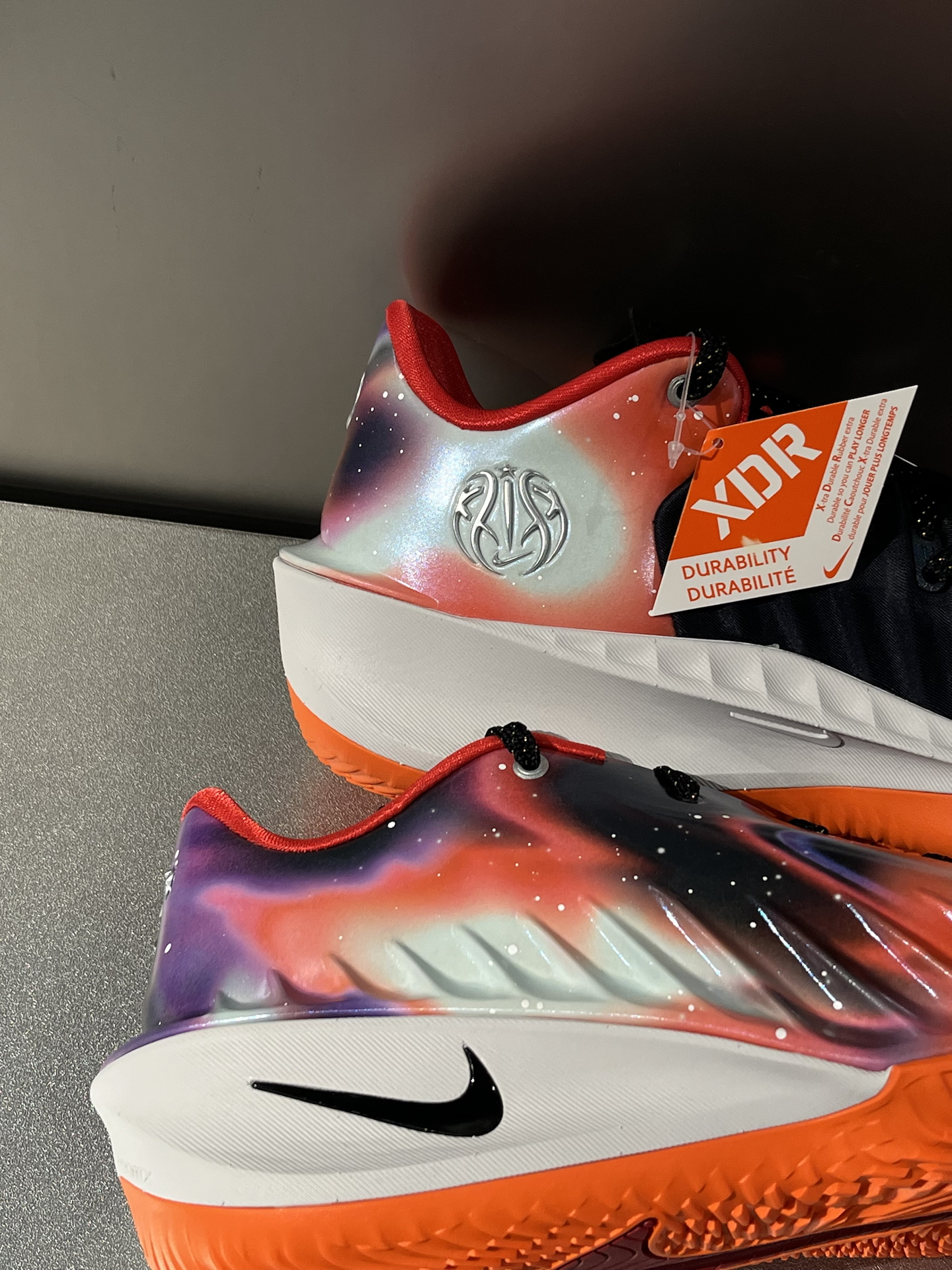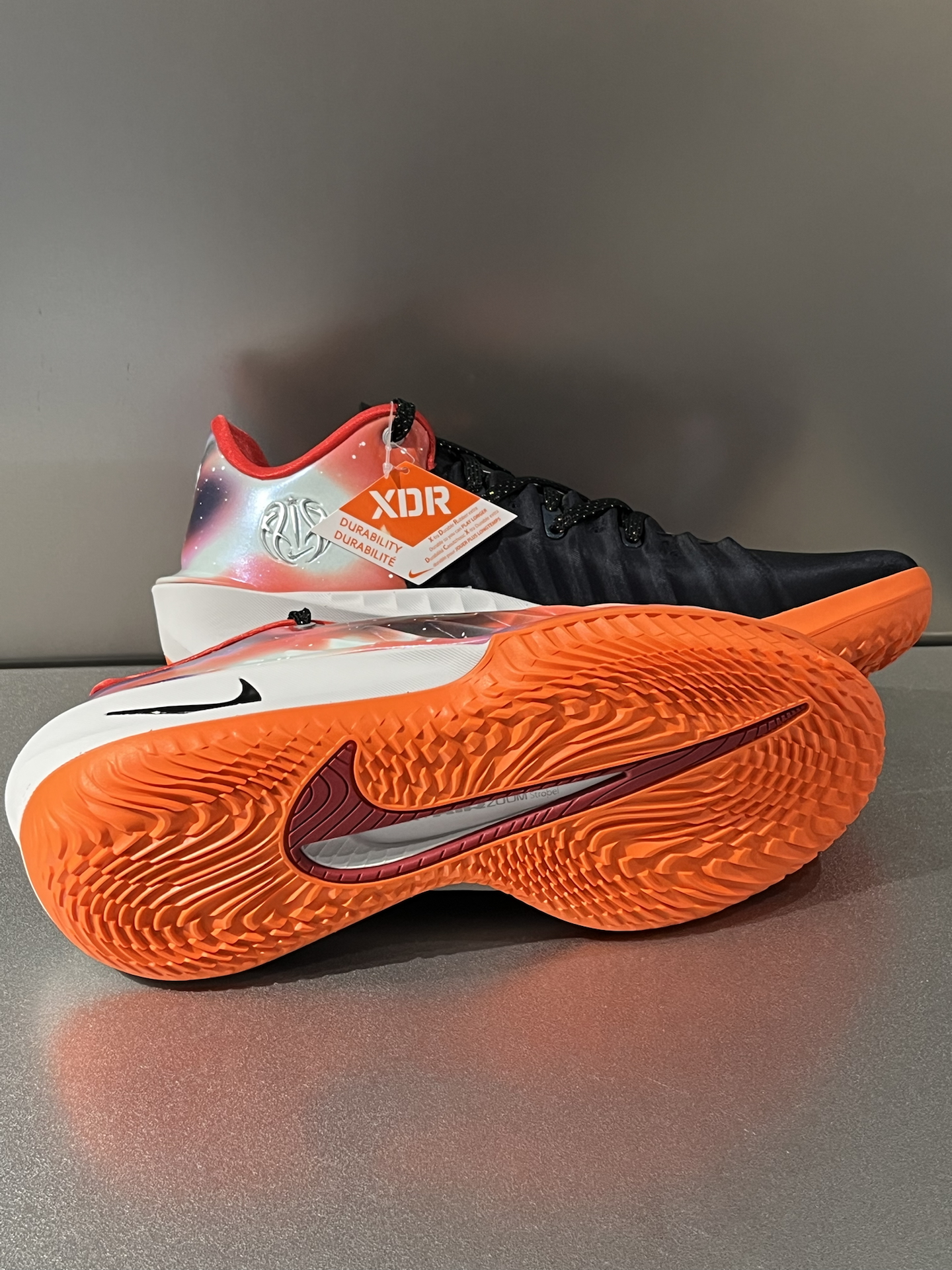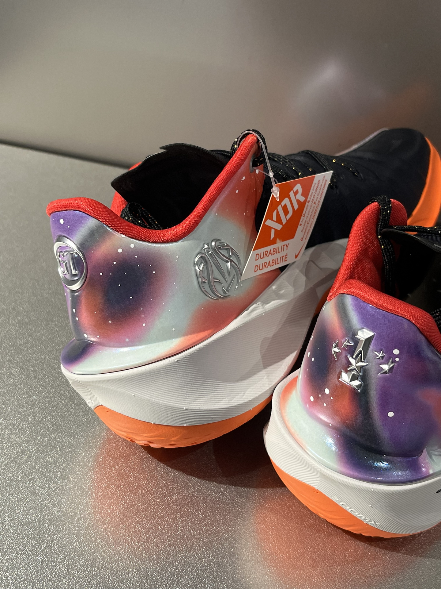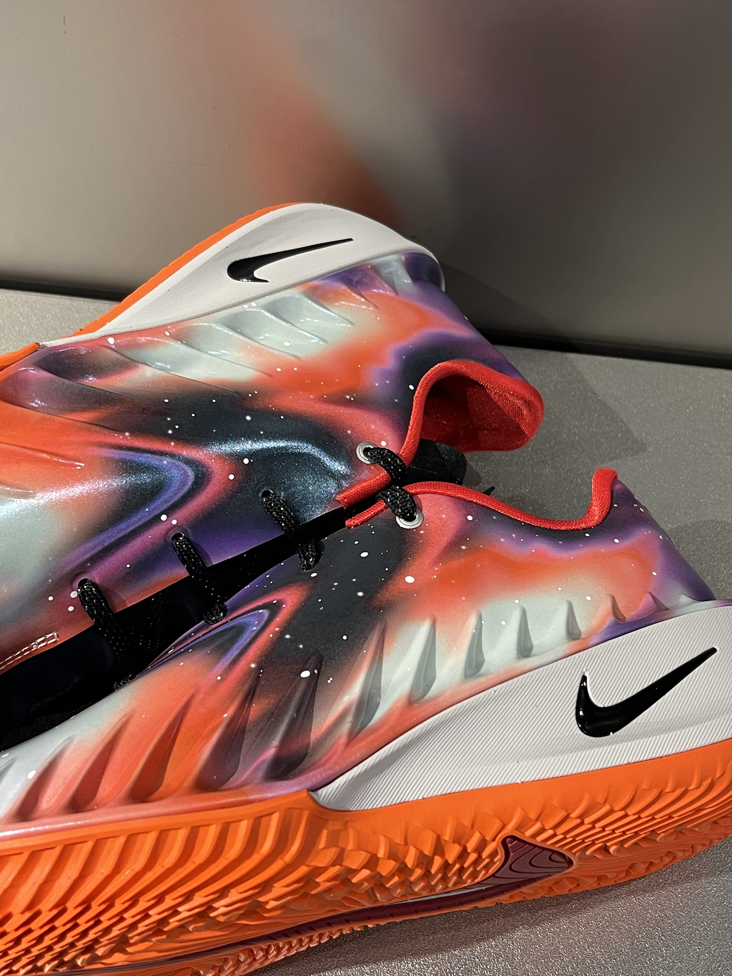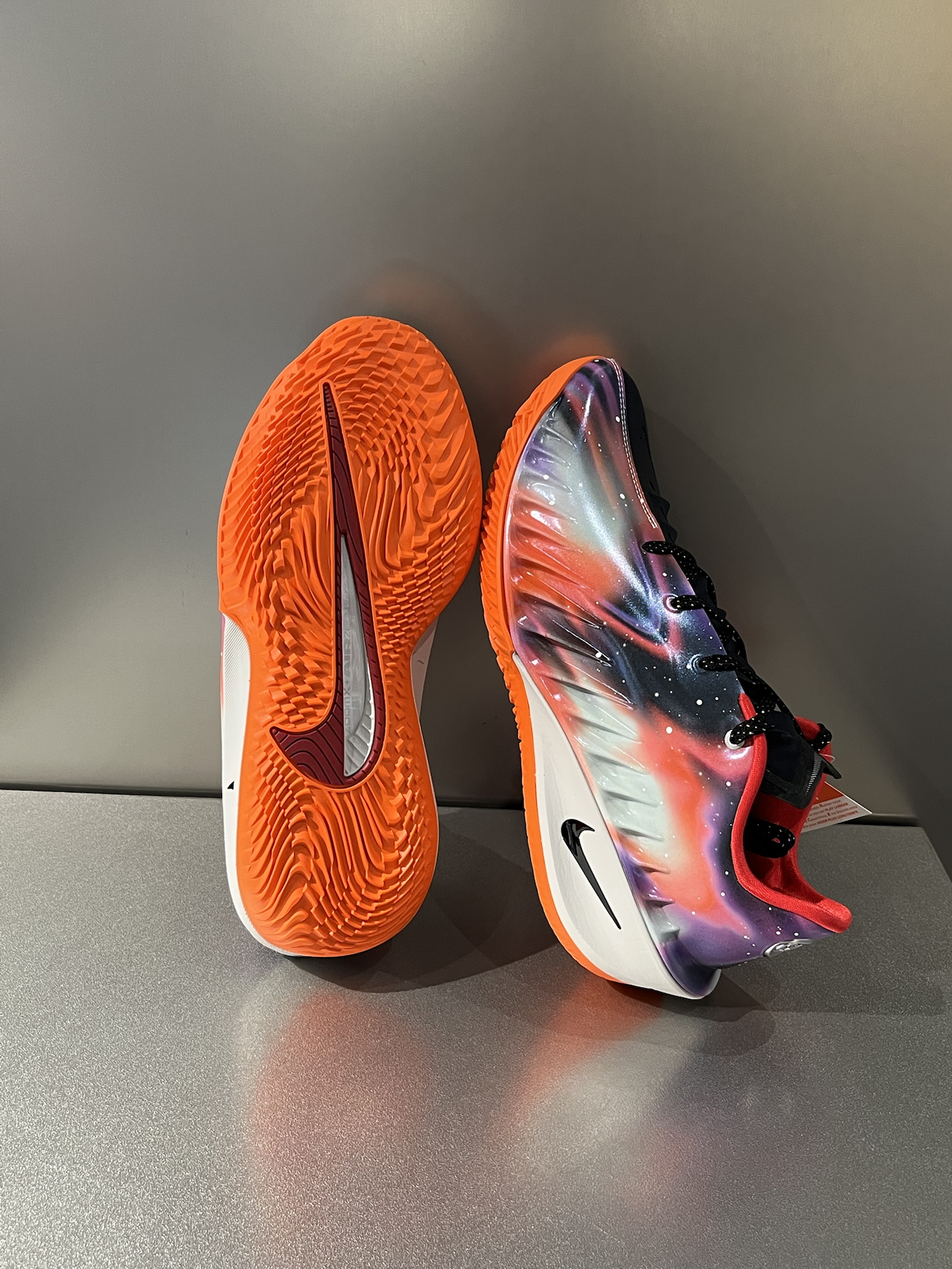 今年超爱的一双GT Cut 4,CHBL紫橙渐变,很有活力了,上脚就很吸睛 银河印花、行星元素,第一眼就很有宇宙感,左脚内侧耐高图案,右脚后跟五颗星,细节满满 一体成型鞋面,包裹很到位,就是需要多磨合,高脚背朋友可能要试大半码 中底是ZoomX泡绵➕全掌Zoom Strobel气垫,起跳落地,都能感受到回弹 这次终于不是水晶底,而是XDR橡胶底,学生党在学校水泥地、塑胶地都能放心实战,抓...