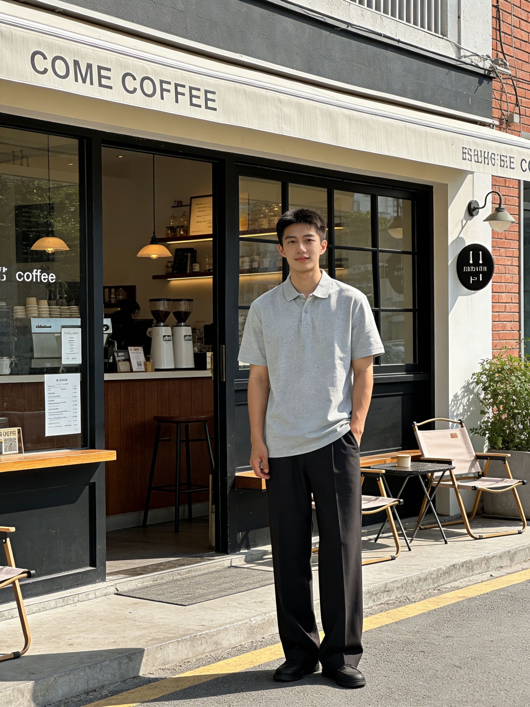 夏天真的拒绝复杂穿搭 这件浅灰色Polo就是我的本命懒人战袍 经典小标低调又耐看,面料垂感拉满不软塌 宽松版型对身材包容性超强 搭配运动短裤就是球场少年,搭配西裤秒变轻熟学长 日常通勤约会一键适配