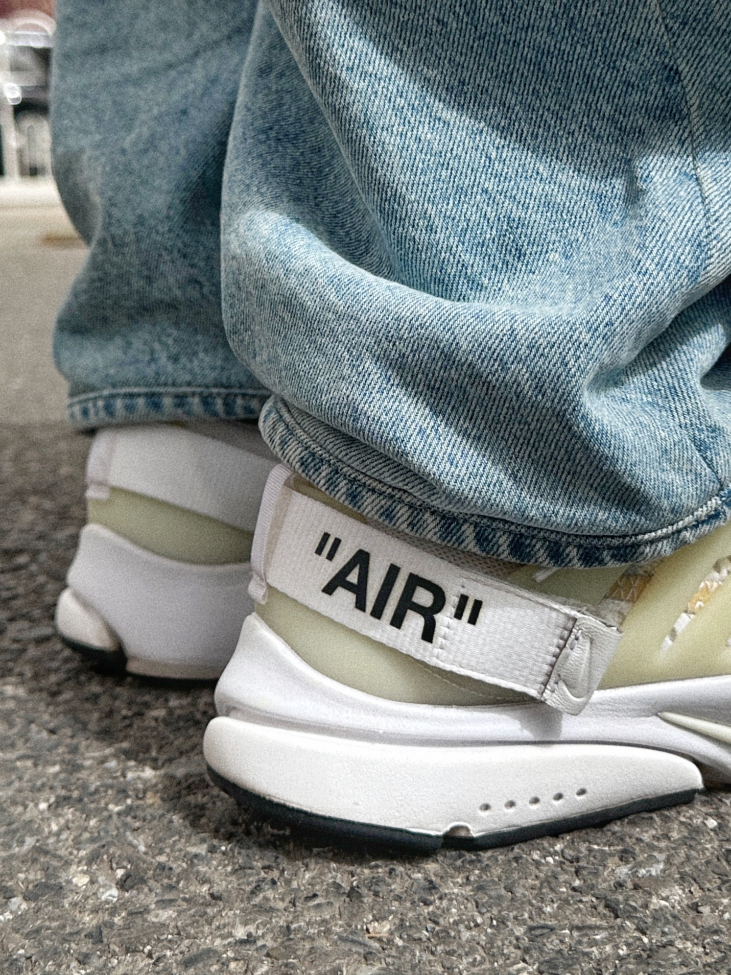 其实还挺喜欢这次的 V.A.A. 乔 1 的,但无奈线上抽签一个没中,连二抽资格都没有...🤣 那就继续穿 OW Presto 吧~本身 The Ten 系列中我最爱的就是 Presto,低帮好穿好搭配,脚感也是真的舒服!不知道 AJ1 复刻后,未来有没有可能把首发黑白色的 Presto 也带回呢?