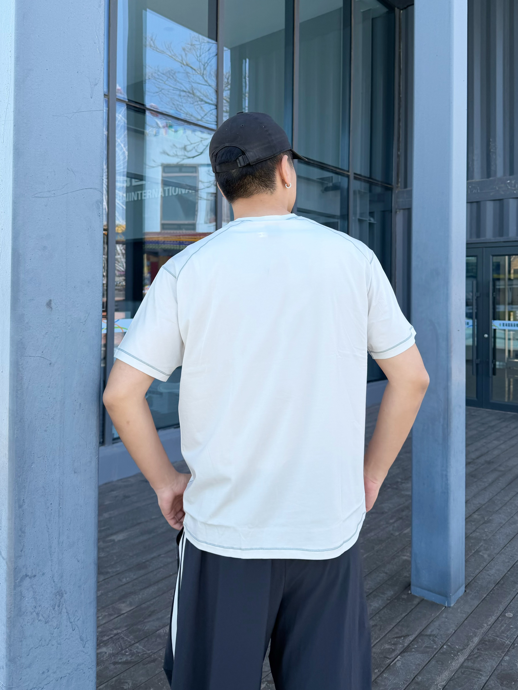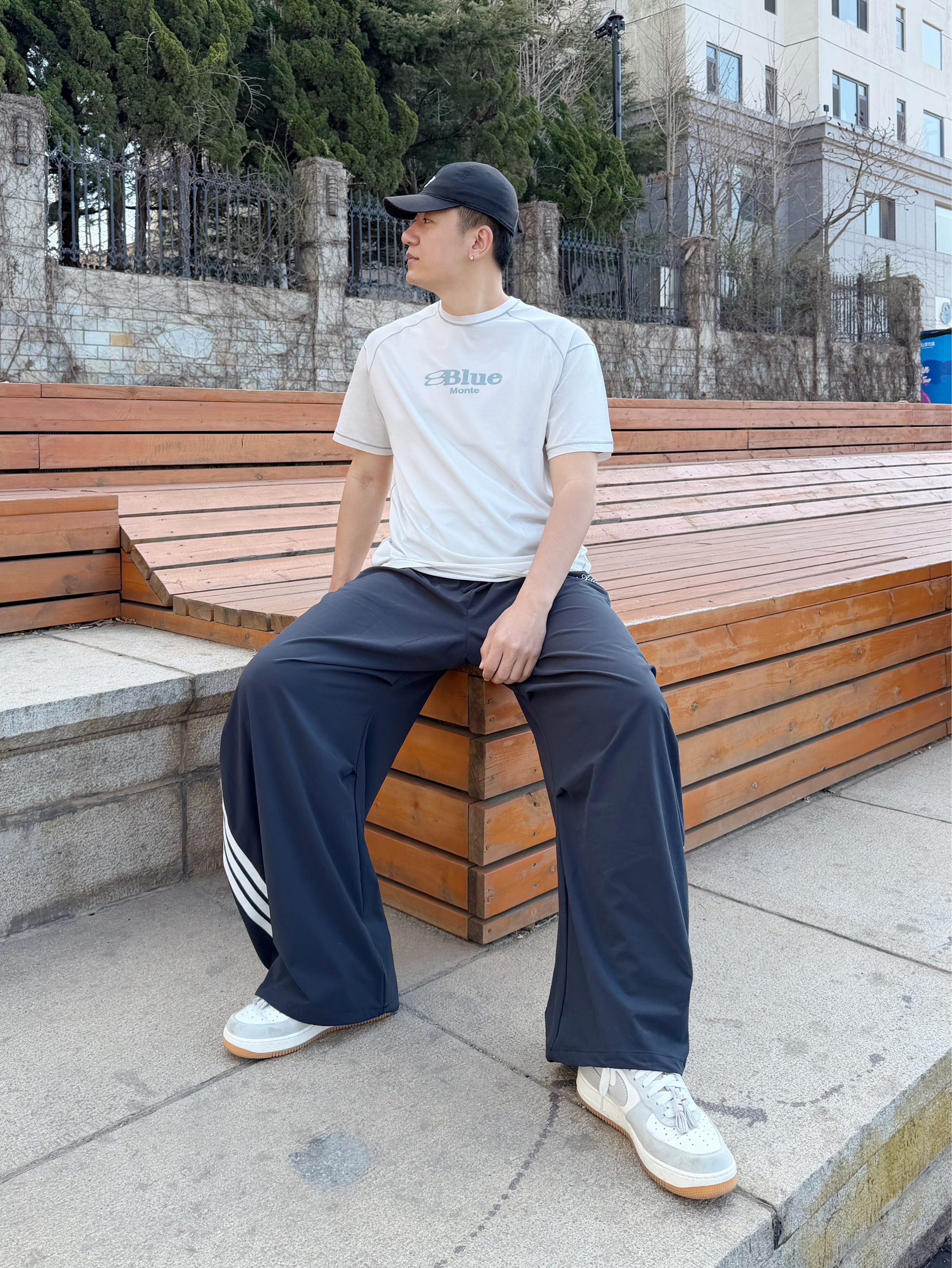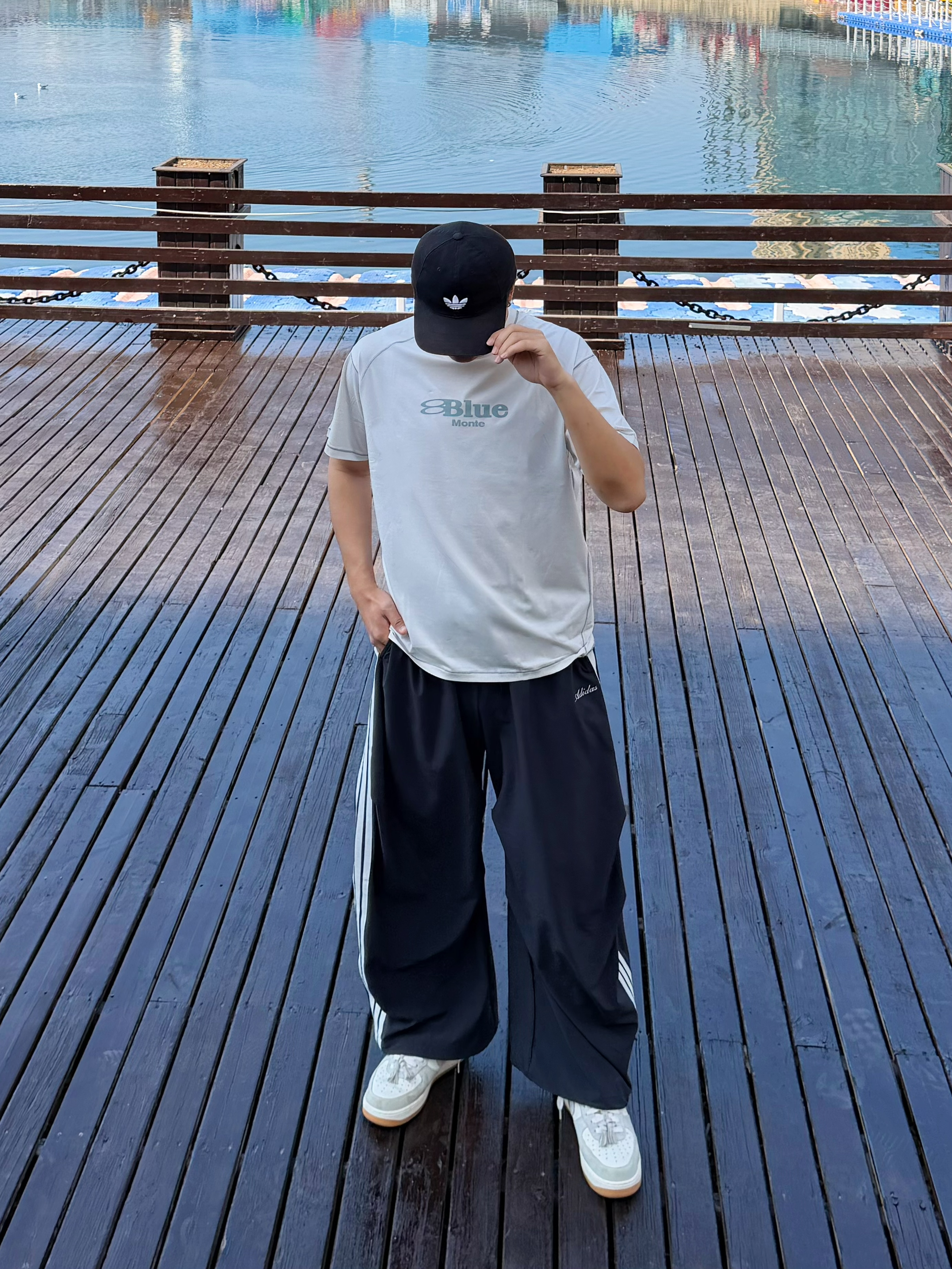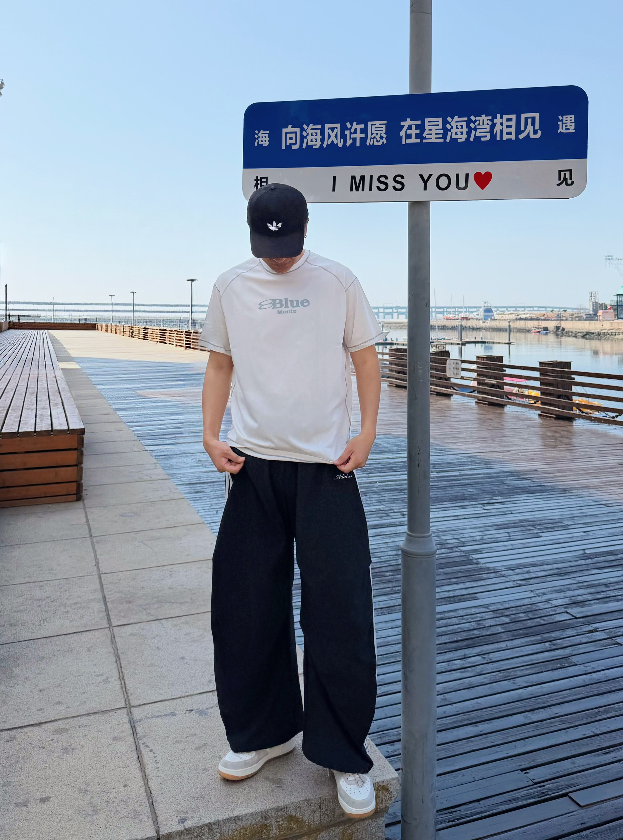 春夏T恤穿来穿去,还是简约风最耐看☁️ 这件蓝岐云峰白T恤,面料吸湿速干, 出汗不粘身,印花有点小设计感但不浮夸 下身黑裤+卡其板鞋,整体颜色干干净净,看着就舒服 个人感觉越简单越显质感,清爽一整天~ 👦🏻:188 | 85 👕:XL