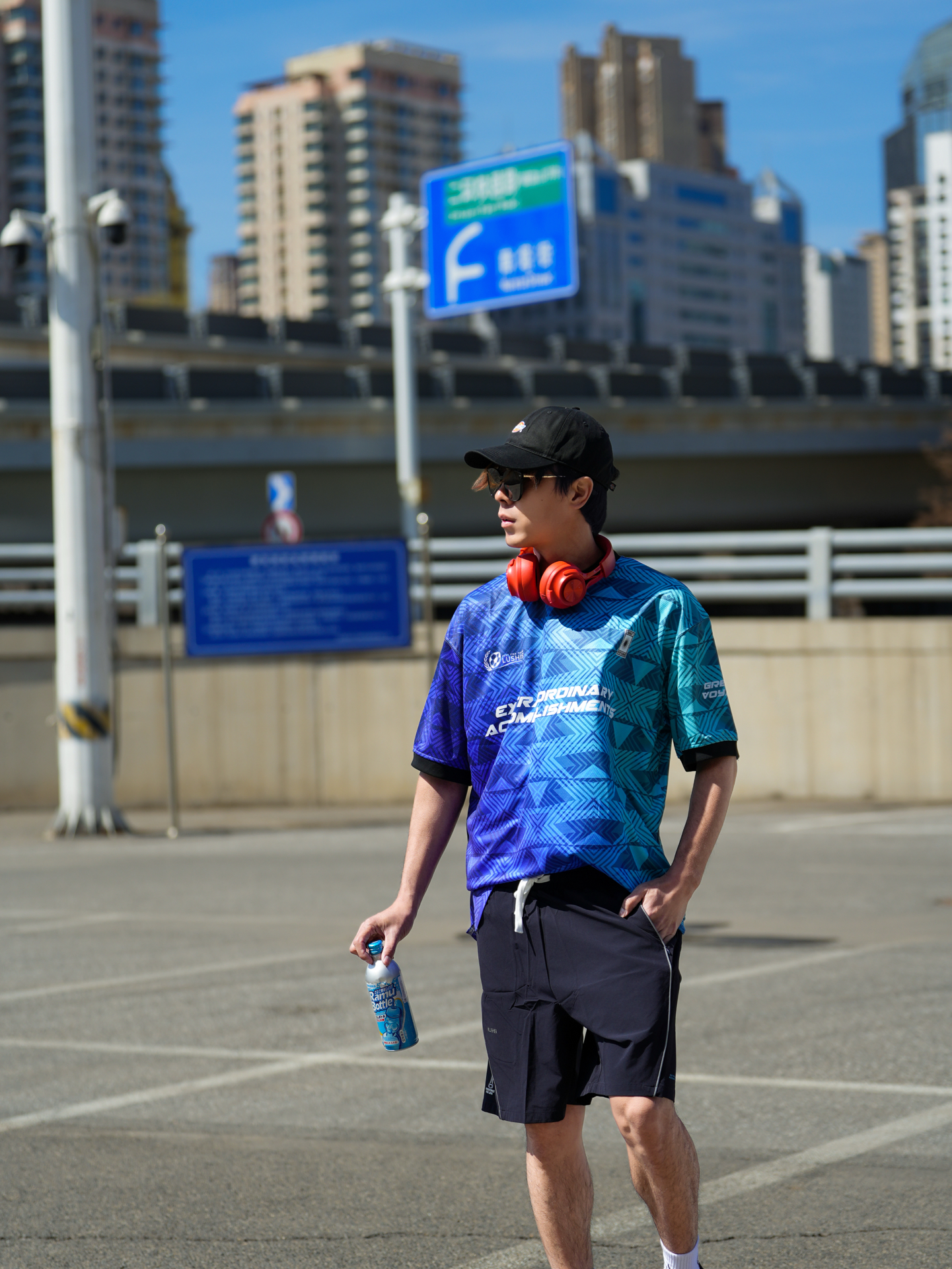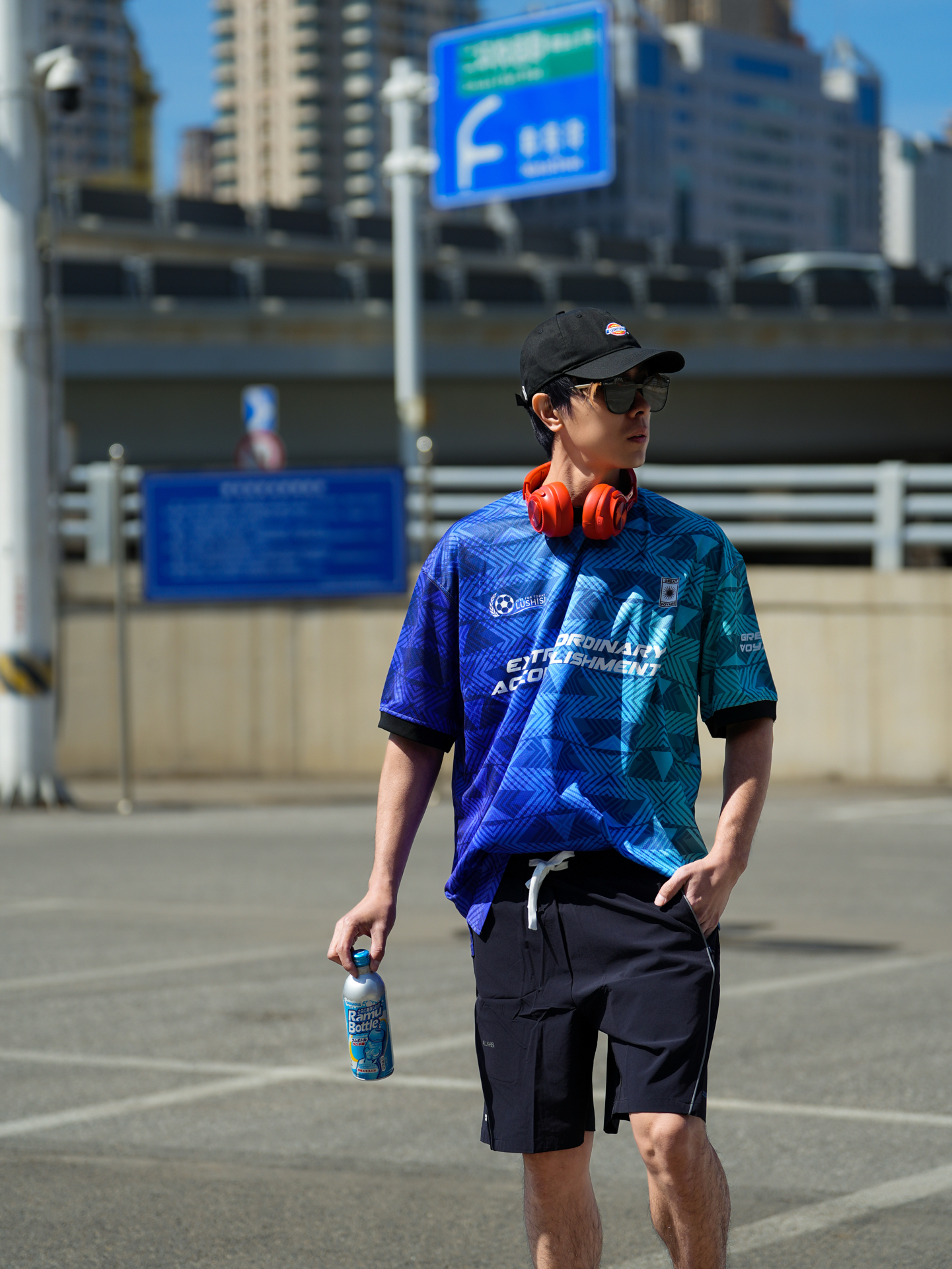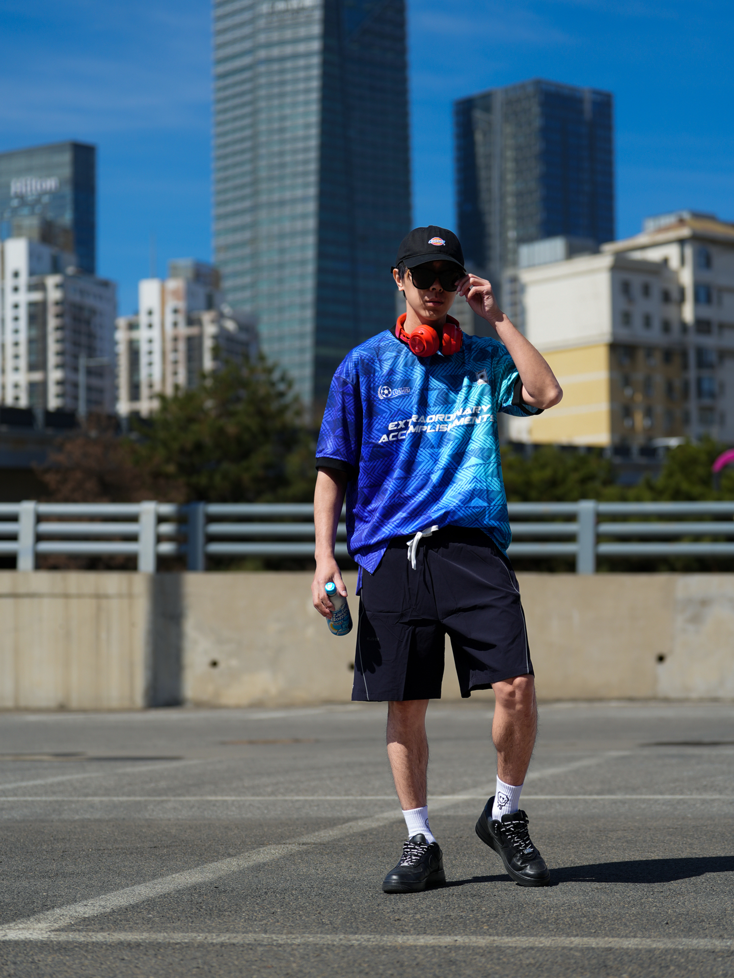 上衣 短袖 裤子 牛仔短裤🩳 搭配这款 LUSHISI 影录主题渐变几何图案蜂窝网孔轻盈舒适凉爽亲肤透气运动风日常短袖T恤 popping跳舞穿也不错 日常出街很好搭配 穿上去轻盈得劲😎 材质很有质感 版型微宽松 身高 179CM 体重 63kg 尺码 XL