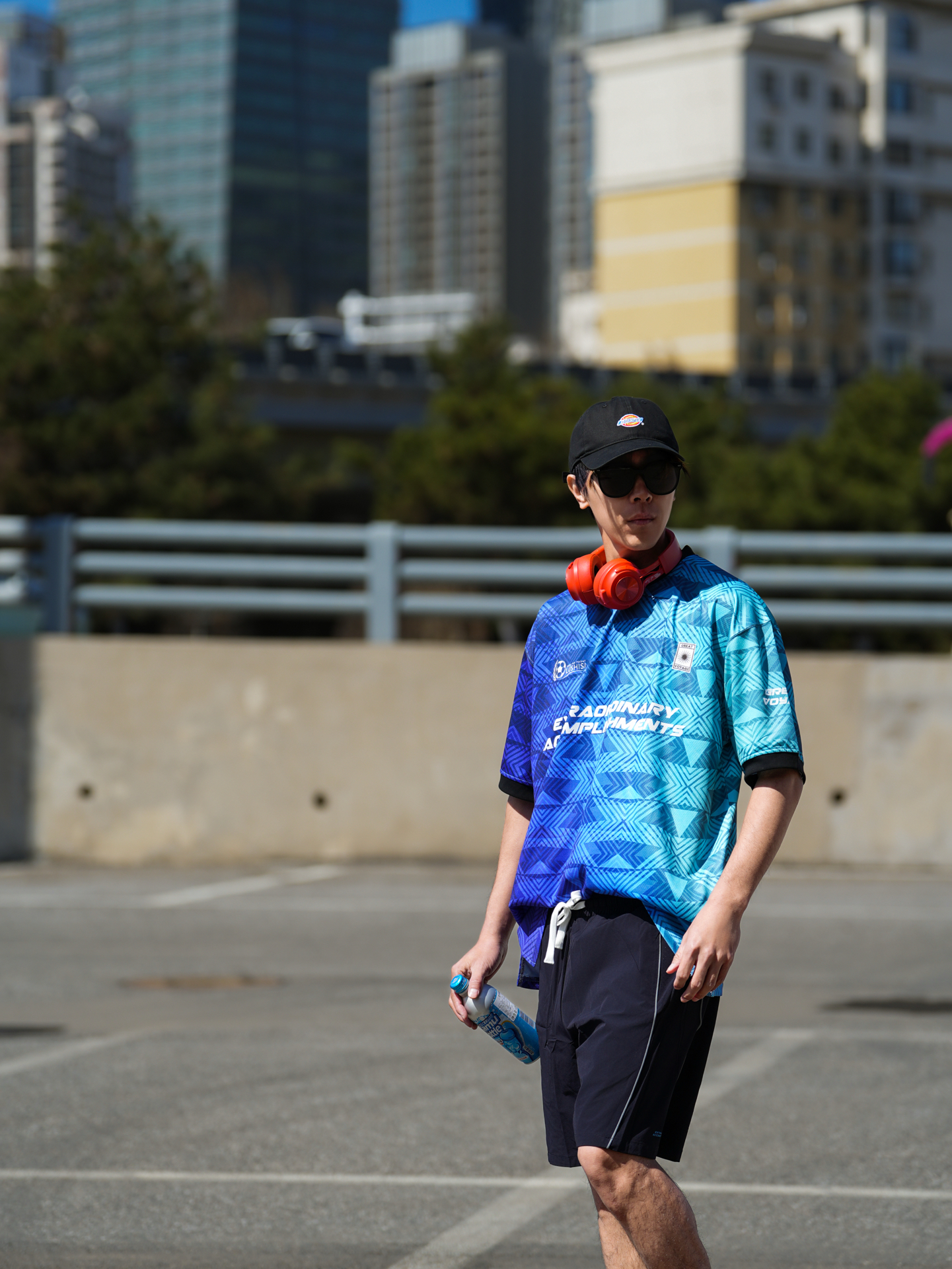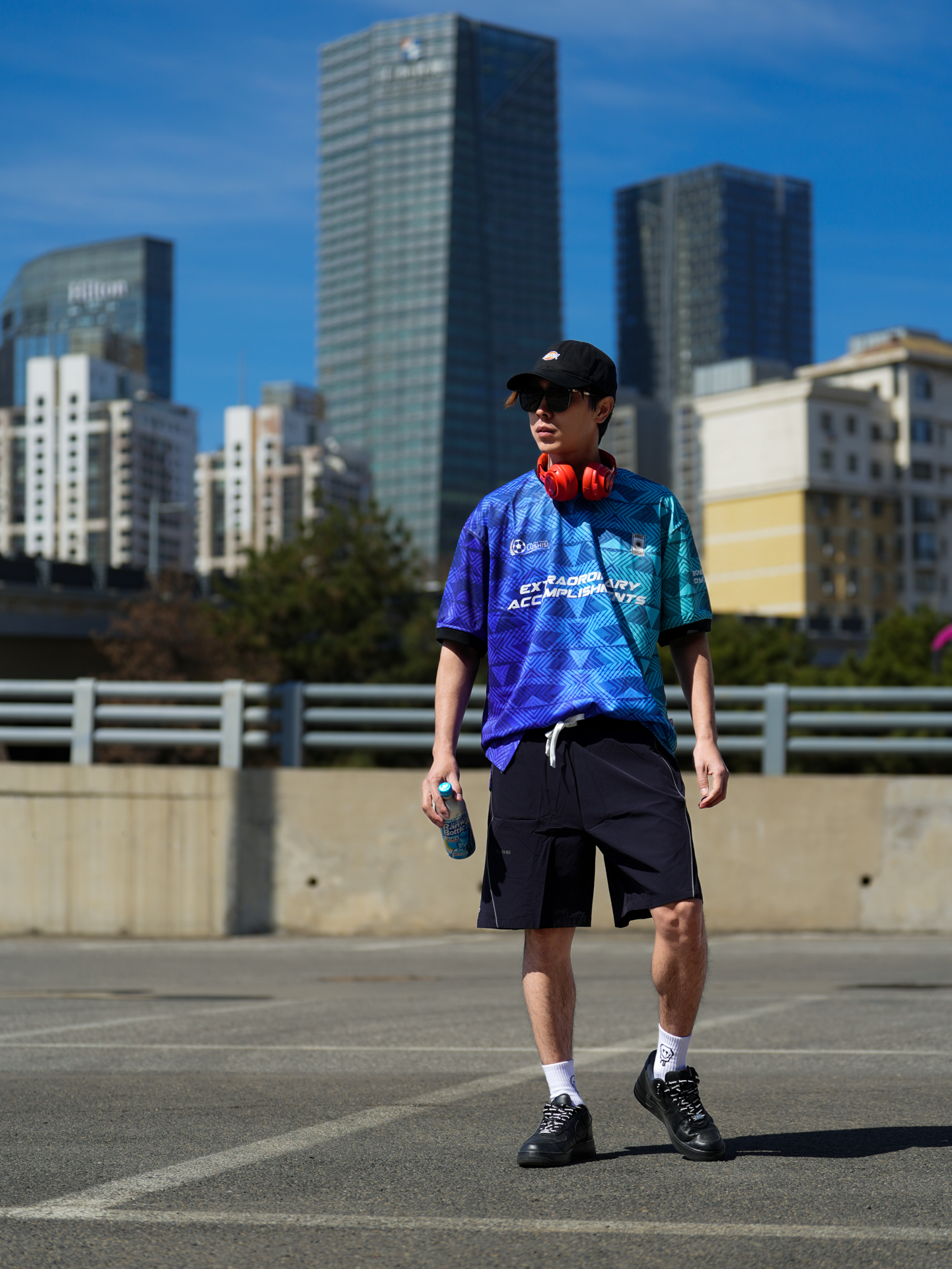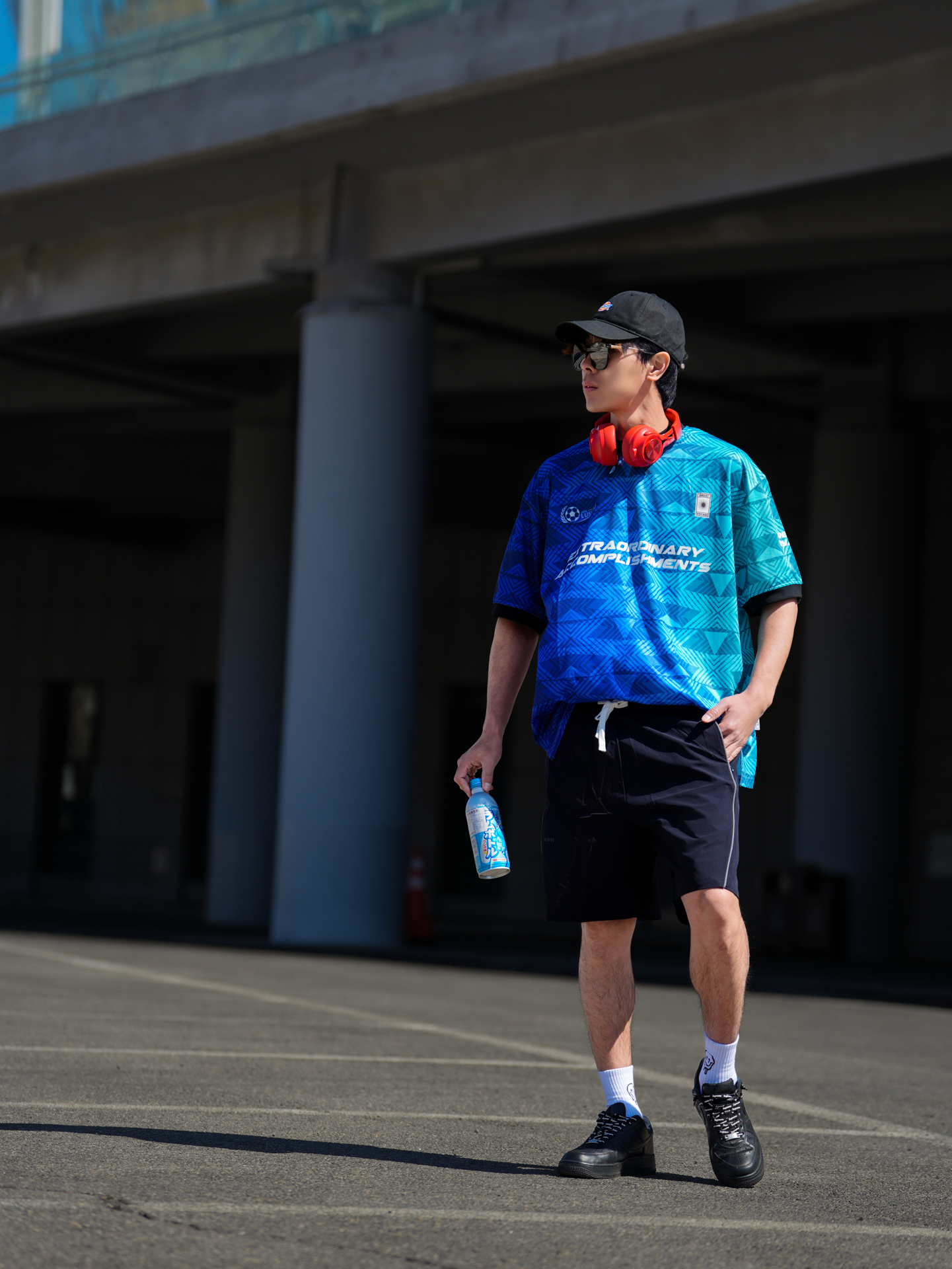 上衣 短袖 裤子 牛仔短裤🩳 搭配这款 LUSHISI 影录主题渐变几何图案蜂窝网孔轻盈舒适凉爽亲肤透气运动风日常短袖T恤 popping跳舞穿也不错 日常出街很好搭配 穿上去轻盈得劲😎 材质很有质感 版型微宽松 身高 179CM 体重 63kg 尺码 XL