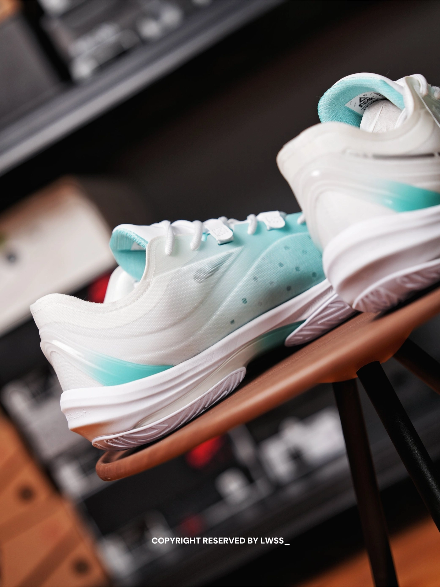 夏天快到了,又到了该穿小清新配色的球鞋,这双轻灵3水韵就非常合适,看着有种碧波荡漾的感觉。轻灵3的实战表现之前给大家也讲过很多次了,真的是一双非常适合小快灵的后卫好鞋,唯一需要注意的就是宽脚高脚背可能不太好适配。