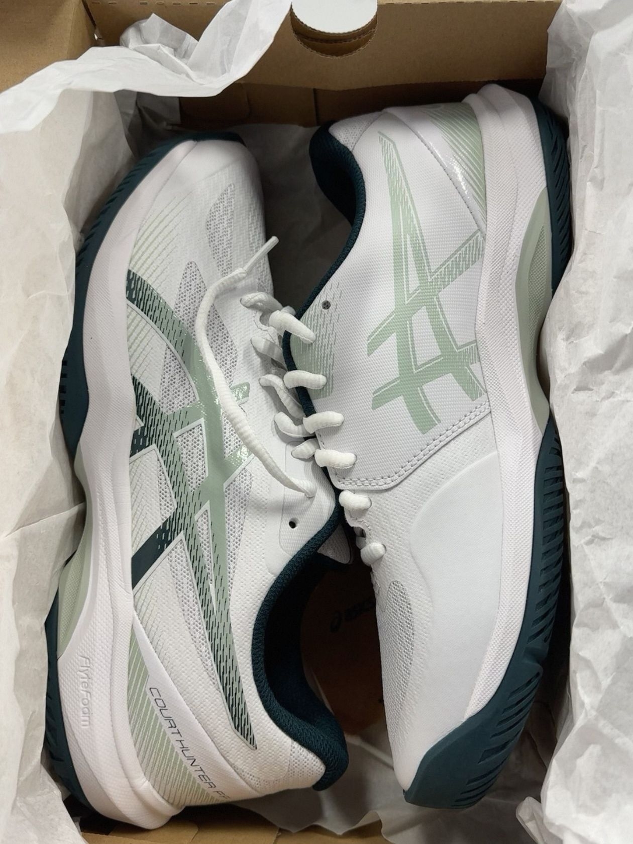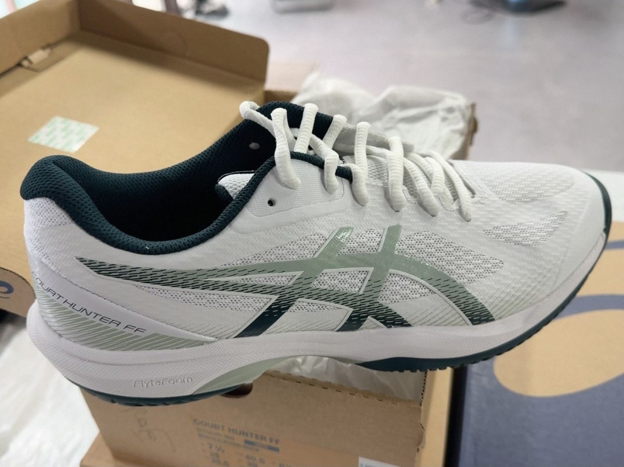 👟ASICS Court Hunter FF羽毛球鞋,专为速度型选手设计,轻量透气网面+合成革,穿着舒适又透气💨。鞋底耐磨橡胶,抓地力强,适合室内球场快速移动。低帮设计提升灵活性,支撑力满分,白色搭配绿色条纹,简约又有运动感✨