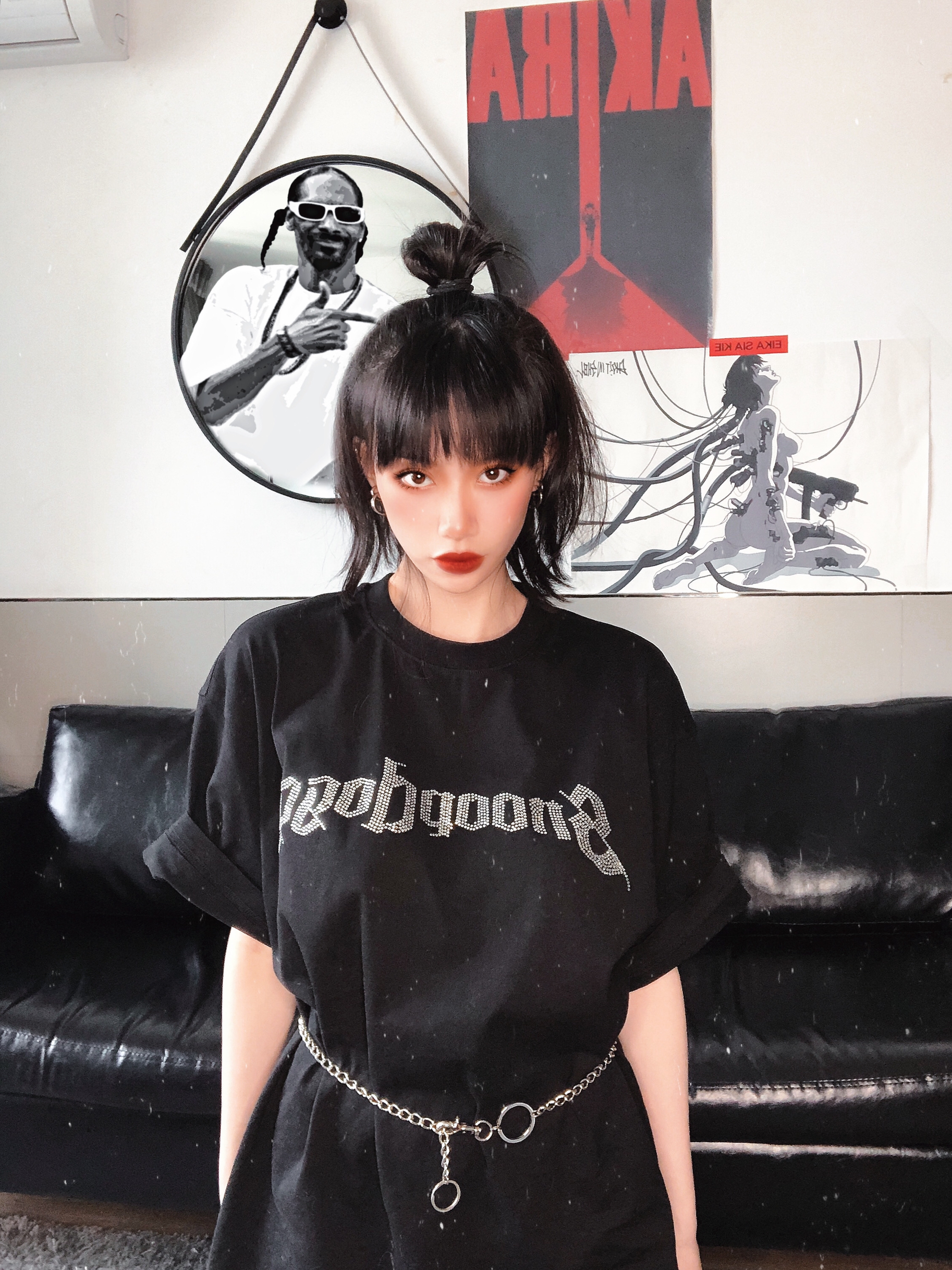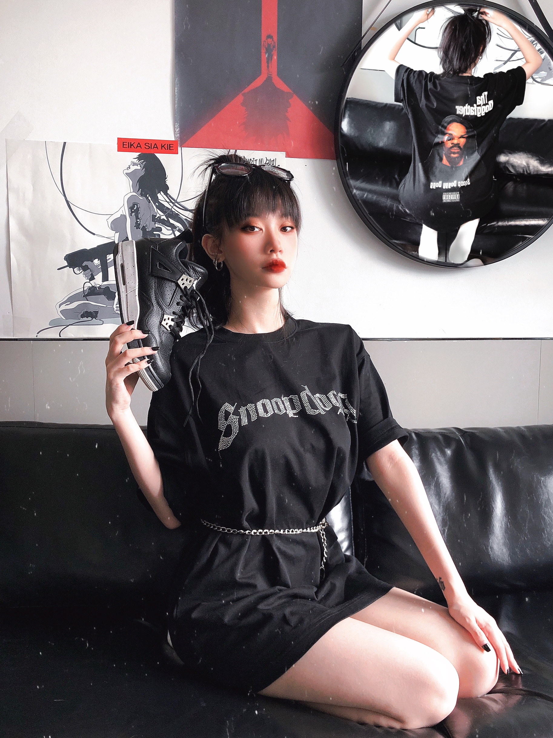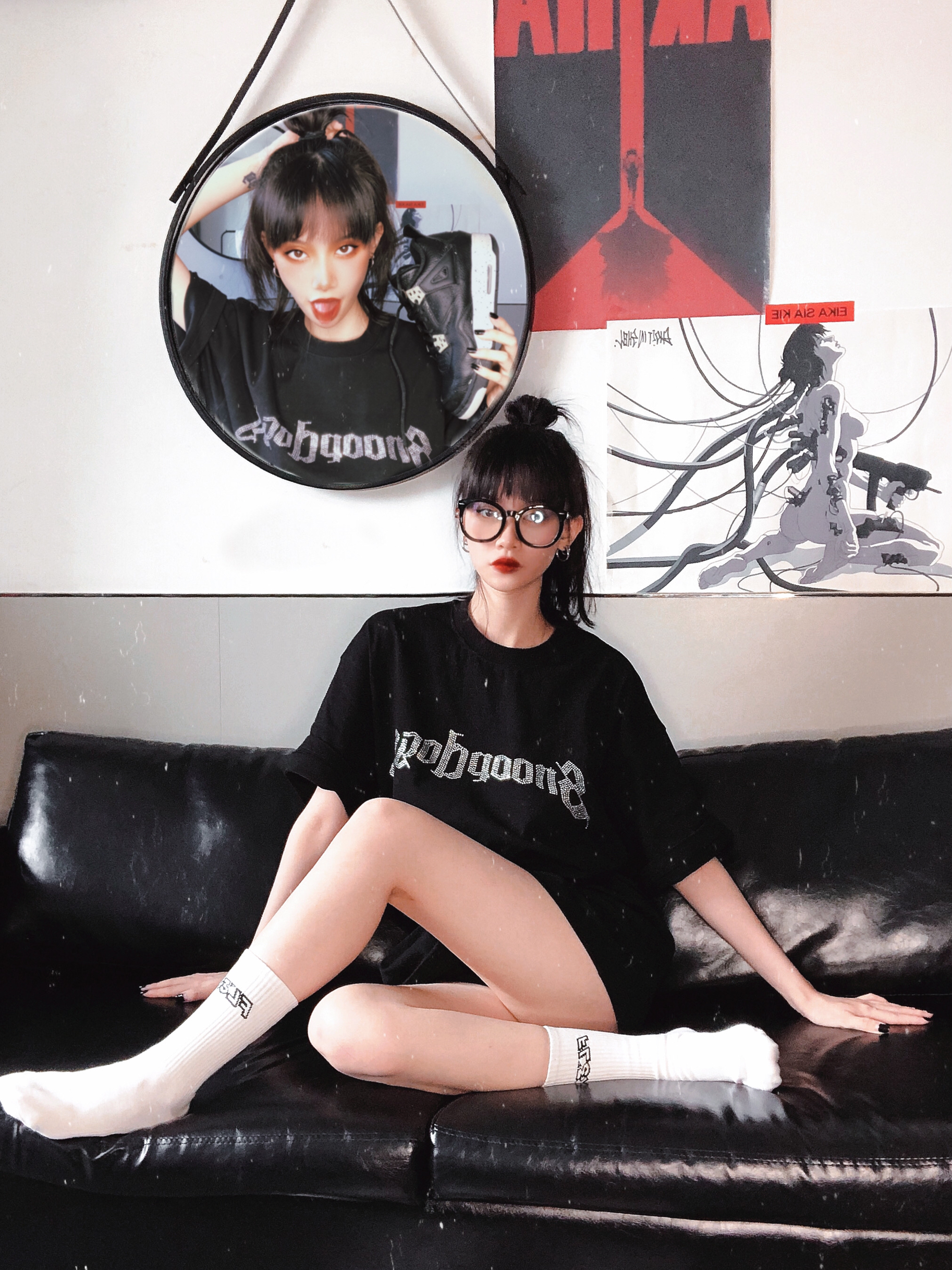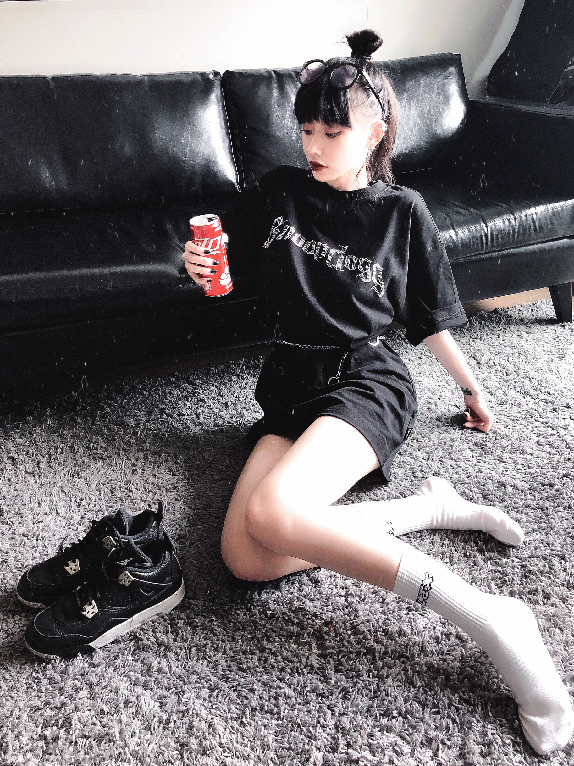 -TOTAL LOOK: 👕:FLEXHOOD 🧦:FLEXHOOD 👟:AJ4 Retro Oreo -关于穿搭: 水钻真的太帅了 我不准你们的衣柜里还没有一件水钻短袖 背后是美式印花 女孩子可以加一个腰链显腰细~AJ4奥利奥真的好配