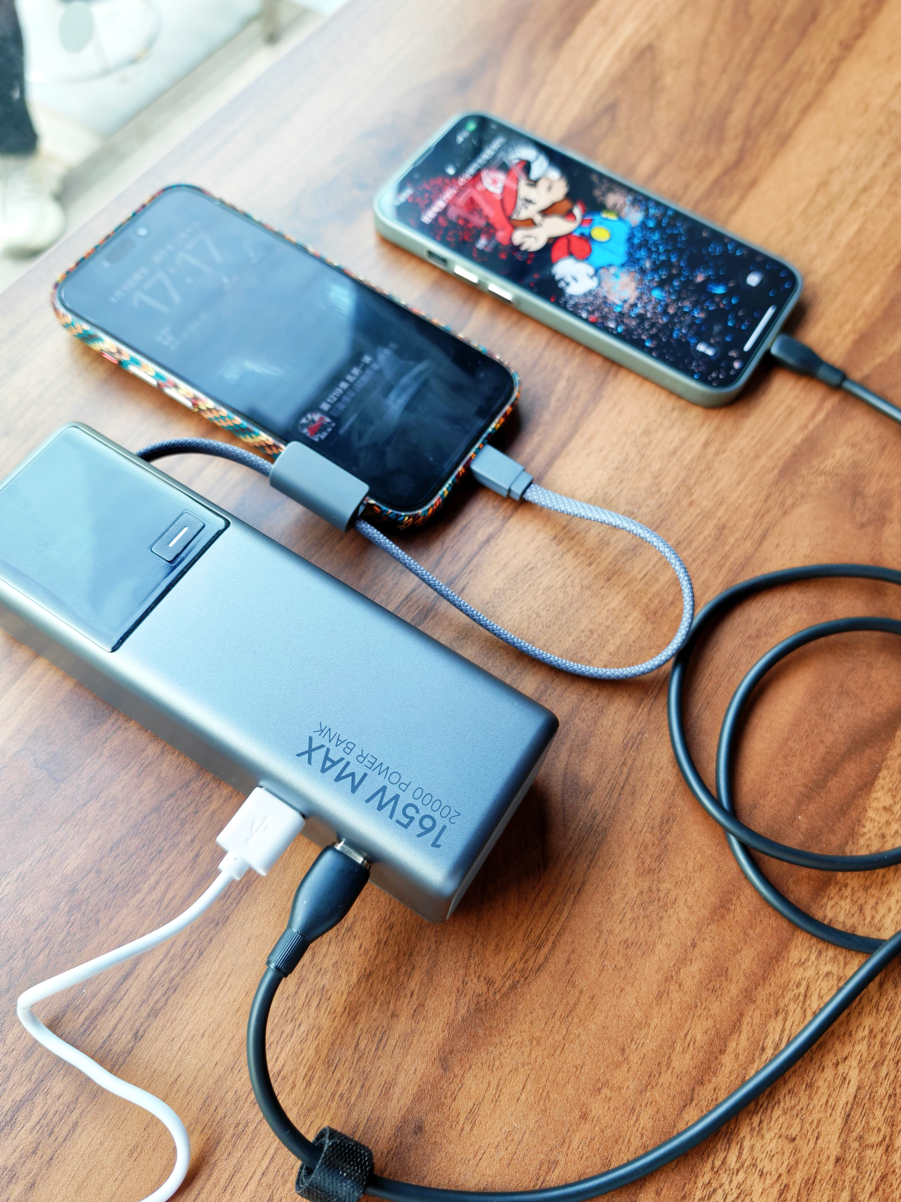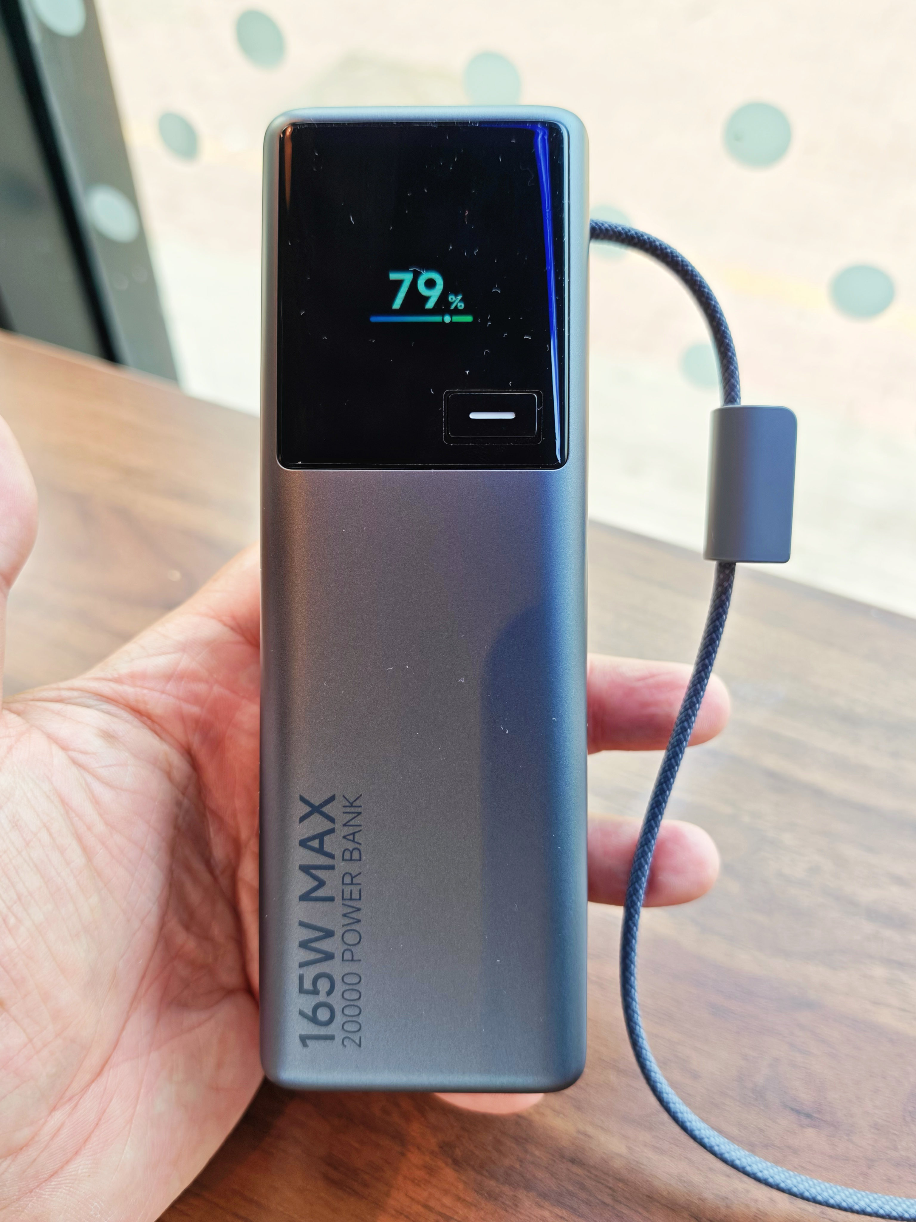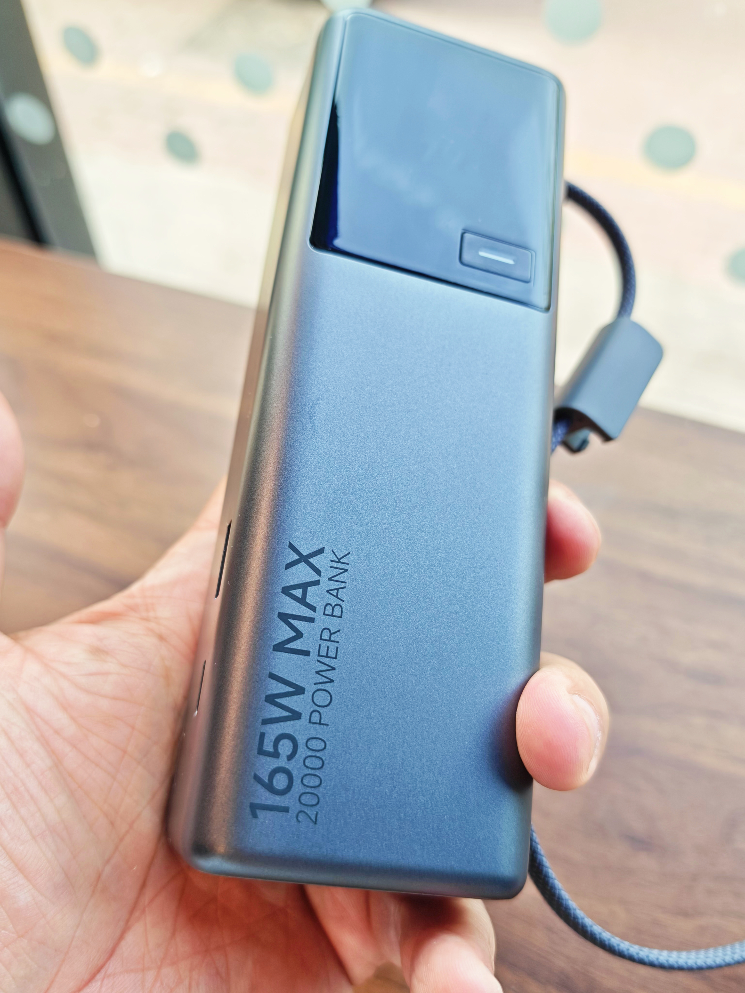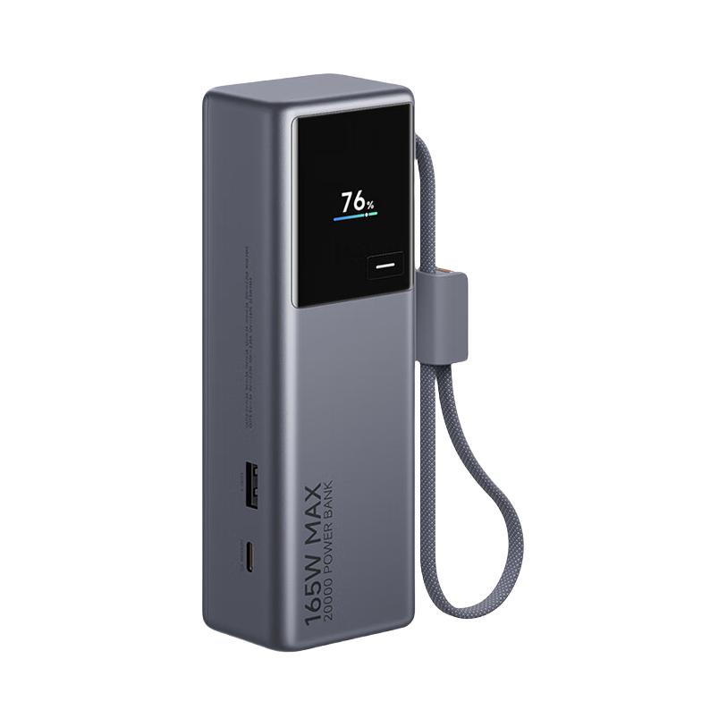 之前用过小米1万毫安时165W充电宝,整体很满意,唯一缺憾就是电量🔋不够,给笔记本充电会很快耗尽,外出一天稍显不足,于是升级到了2万毫安时版本。 它自带一根Type-C编织快充线,另配1C口+1A两口,可同时充三台设备,单口最高120W大功率快充,日常给MacBook、常规Windows本、平板、手机、耳机、手表都完全够用(🔔大功率电竞游戏本类稍欠)。 机身配有一块彩屏视窗🪟,屏幕下方有一颗按...
