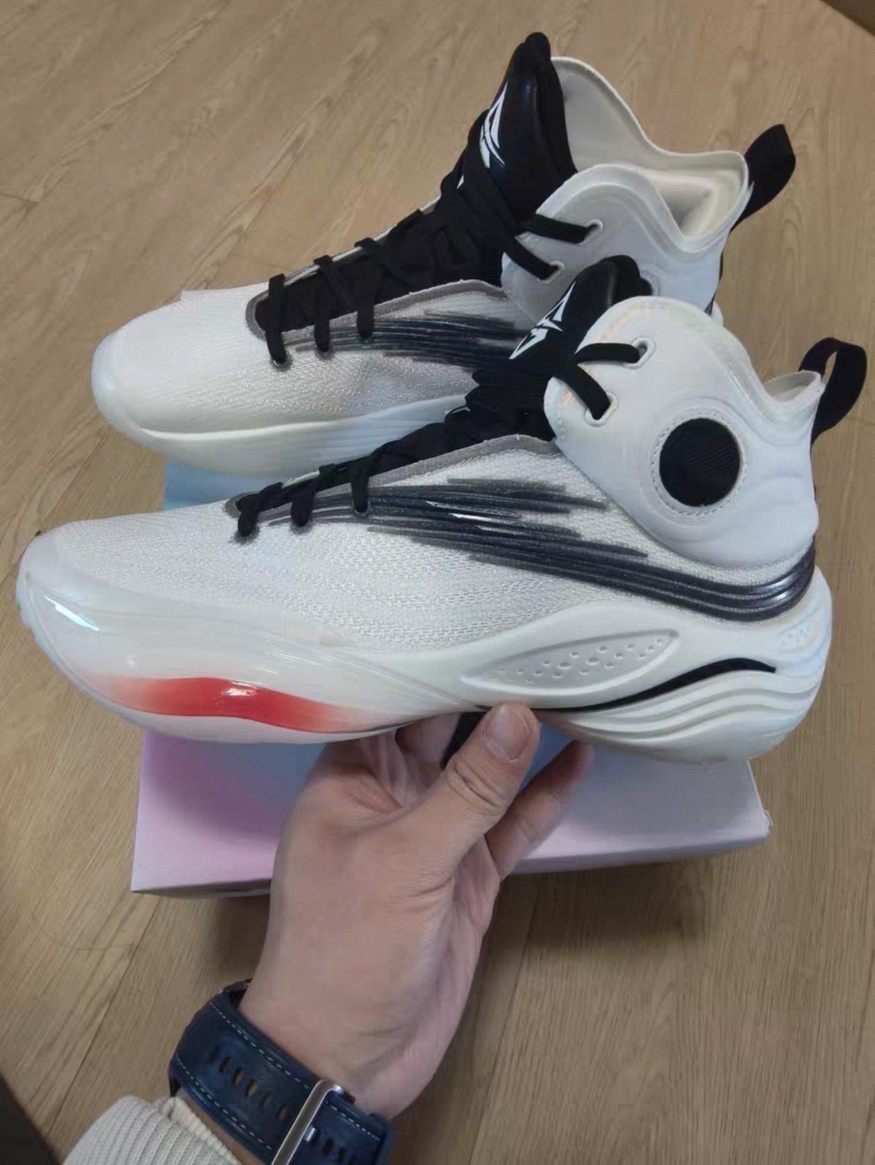 分享一双比较适合学生党的高帮球鞋👟 #安踏 的天际3Pro 首先说这个极昼配色很简洁好看 侧面的ANTA的LOGO设计还是挺细节的 高帮的设计很适合有一定力量的锋线球鞋 保护性很在线 两个点比较棒1️⃣是前掌的氮90的超临界材质感受还是挺明显的2️⃣中底位置的大碳板 让整双球鞋在你飞天遁地的时候 稳定性极佳 但是也要说明一个缺点 后跟位置确实硬 总体来说这个性价比还是很适合在校园球场打球的