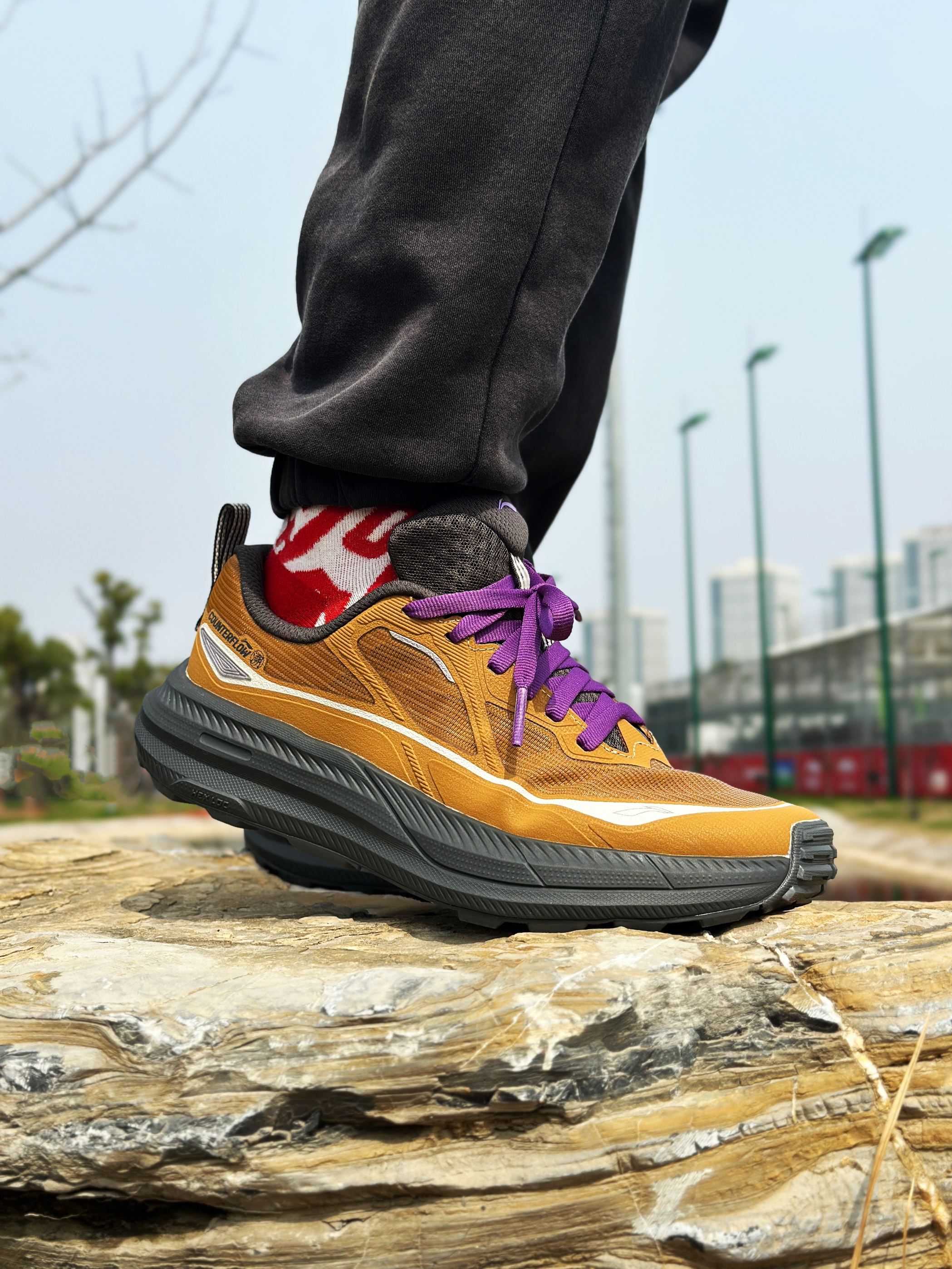 halo 阿迪来了,本期带来的是这双李宁的户外CF溯 行际! 不得不说,这颜值还是挺高的!自带一种Y3K 的风格! 而且这“褐紫”的配色很百搭耐看!上脚辨识度拉满! 流线型鞋身,厚底悄悄增高,走起来特别稳。轮胎纹理抓地力确实不错, 整双鞋上脚,软弹适中,像踩在海棉上,久走不累脚。 总的来说,这双鞋不仅颜值在线脚感也很不错!尺码方面正常选择就好!感兴趣的朋友可以参考!