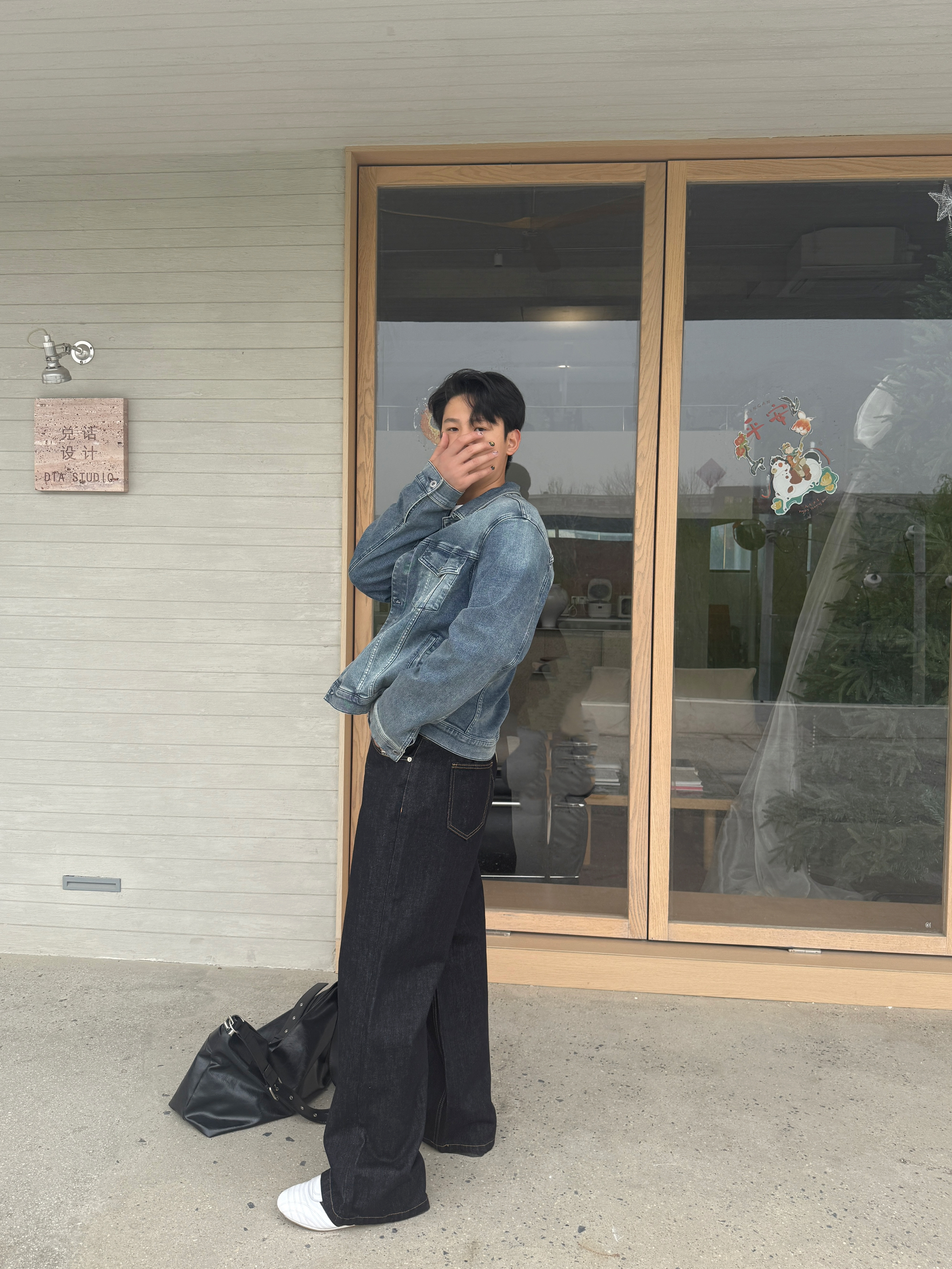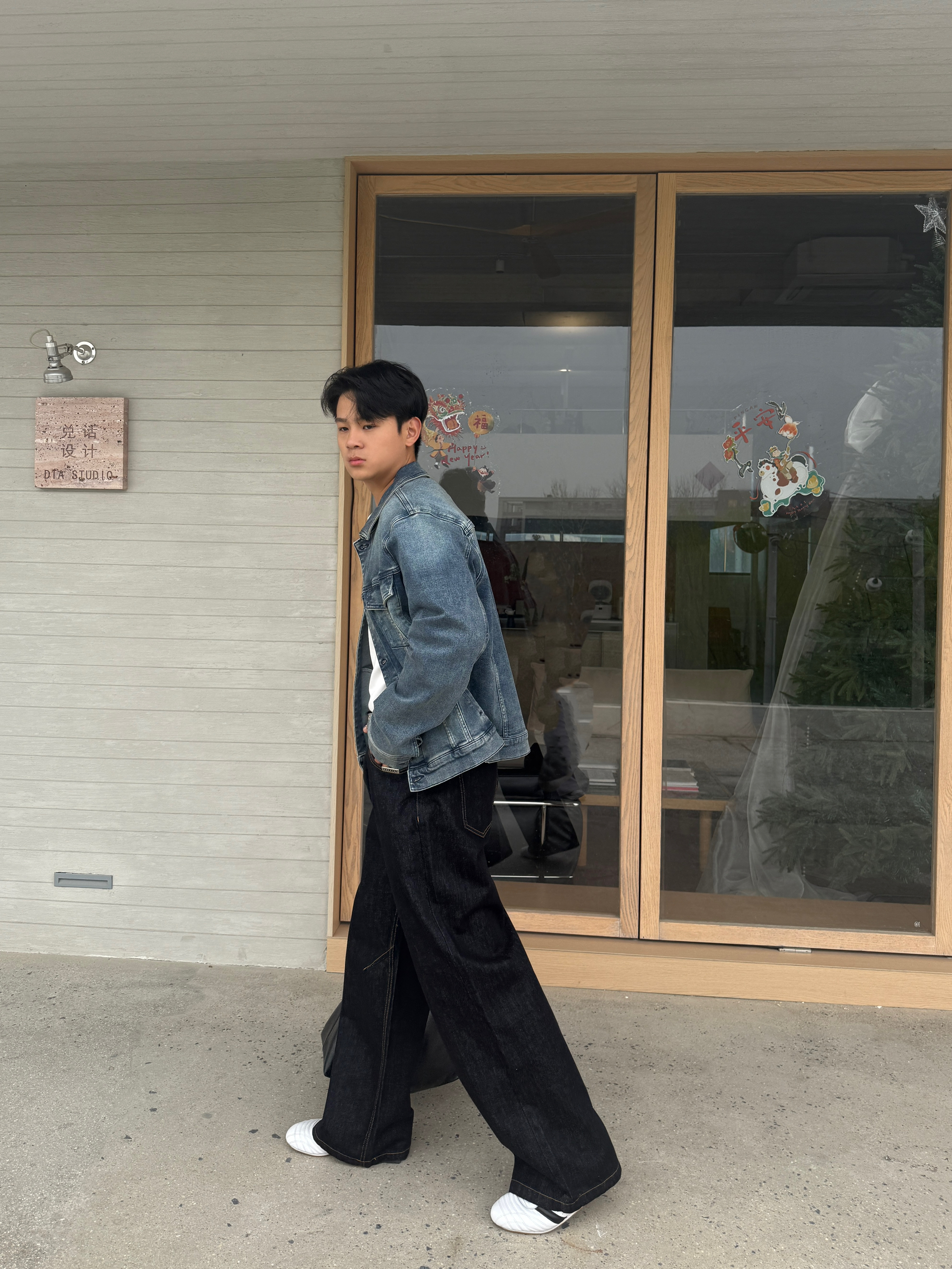 长的帅不如穿的帅 上衣我选择一件短款牛仔外套 白色卫衣作为内搭有层次感 裤子我选择一件原牛牛仔裤 直筒宽松的版型穿起来显高还显瘦 面料硬挺抗皱垂感十足~ 黑裤白鞋是我的搭配首选 这样的裤子日常搭配起来毫无压力 适合日常通勤,约会早八穿搭