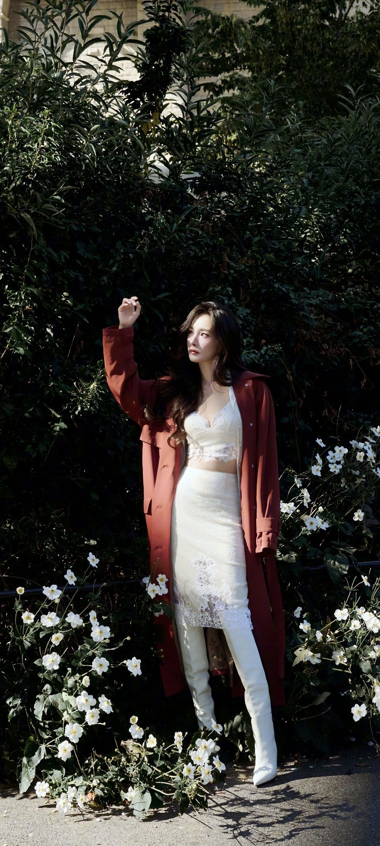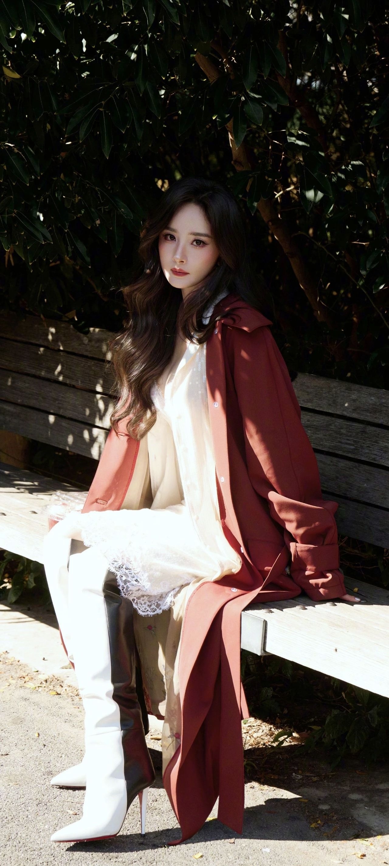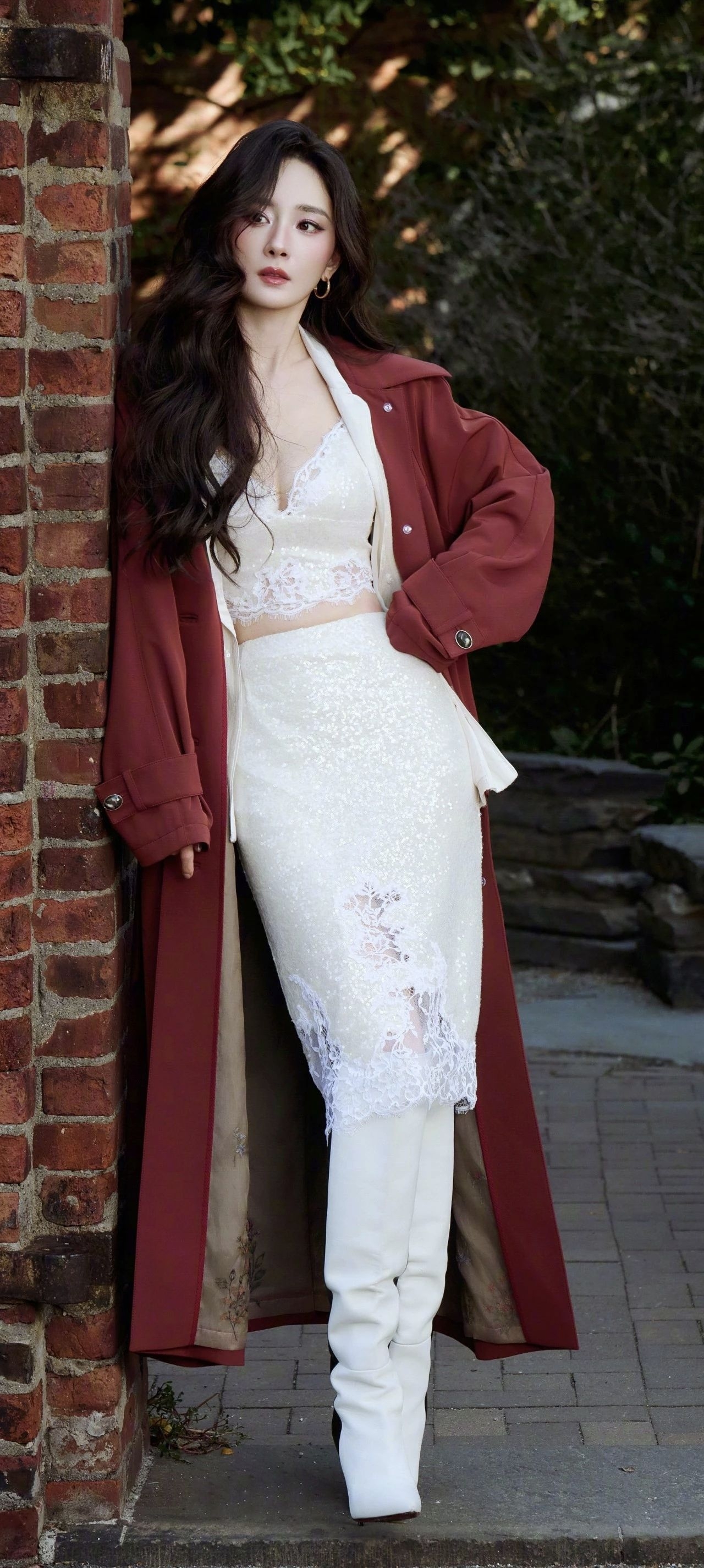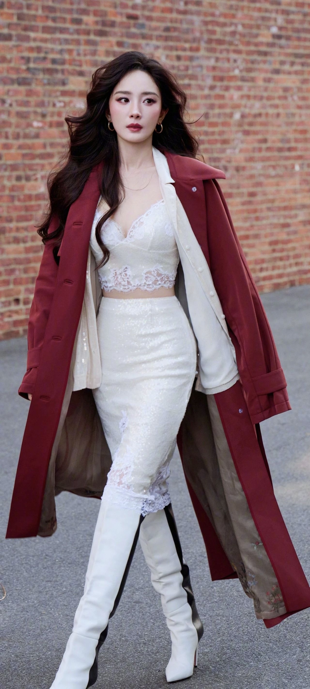 杨幂这套出圈造型,完美拿捏了“慵懒性感”的终极奥义! 🔴 一抹复古红大衣:宽松剪衬出漫不经心的时髦,行走间露出内衬暗纹,细节瞬间拉满。搭配米白蕾丝内搭,若隐若现的肌理与镂空裙边,碰撞出柔媚与飒爽的双重魅力。 👢 白色长靴点睛:挺括靴筒勾勒腿部线条,纯色设计平衡了蕾丝的繁复,整体“娘man平衡”恰到好处~ ✨ 穿搭tips: 配色公式:主色(红)+ 中性过渡色(白)= 高级感爆棚; 材质碰...