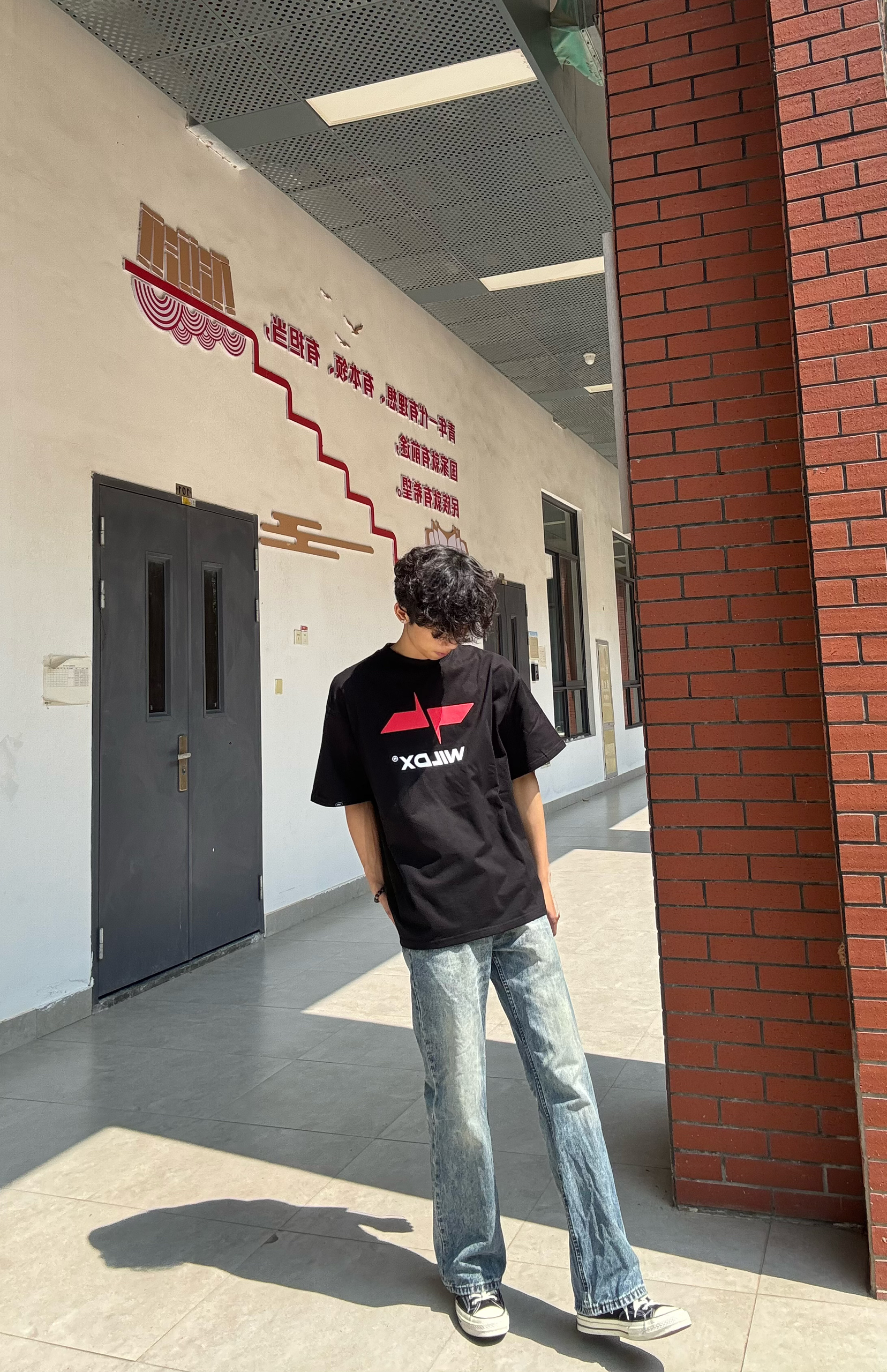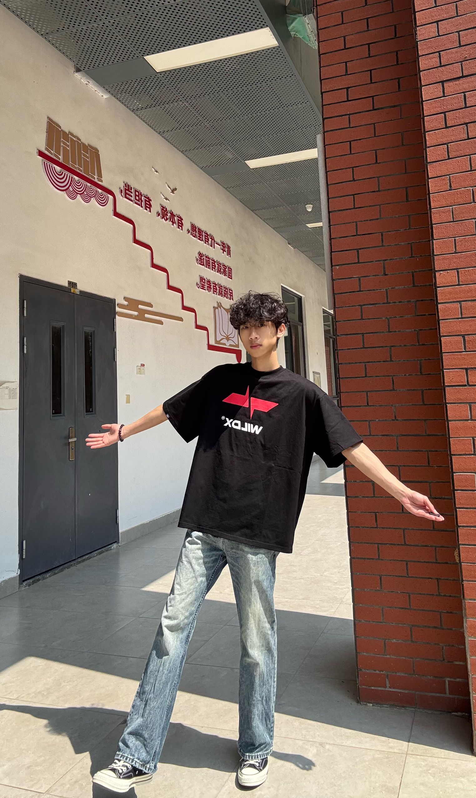 谁懂啊!这套真的把少年感和街头感焊在身上了😭 黑T选的WILDX的经典款,红标撞色设计直接把辨识度拉满,宽松落肩版型对各种身材都超友好,不管是单穿还是叠穿都很绝,纯棉面料上身软乎乎的,夏天穿完全不闷汗,校园里随便走两步都是氛围感大片📸 下装搭了做旧水洗直筒牛仔裤,复古做旧的色调自带松弛感,垂坠感直接拉满,微喇裤型完美修饰腿型,高个子穿显腿长,小个子也能轻松驾驭,日常通勤、上课、出街都适配度拉满 鞋...