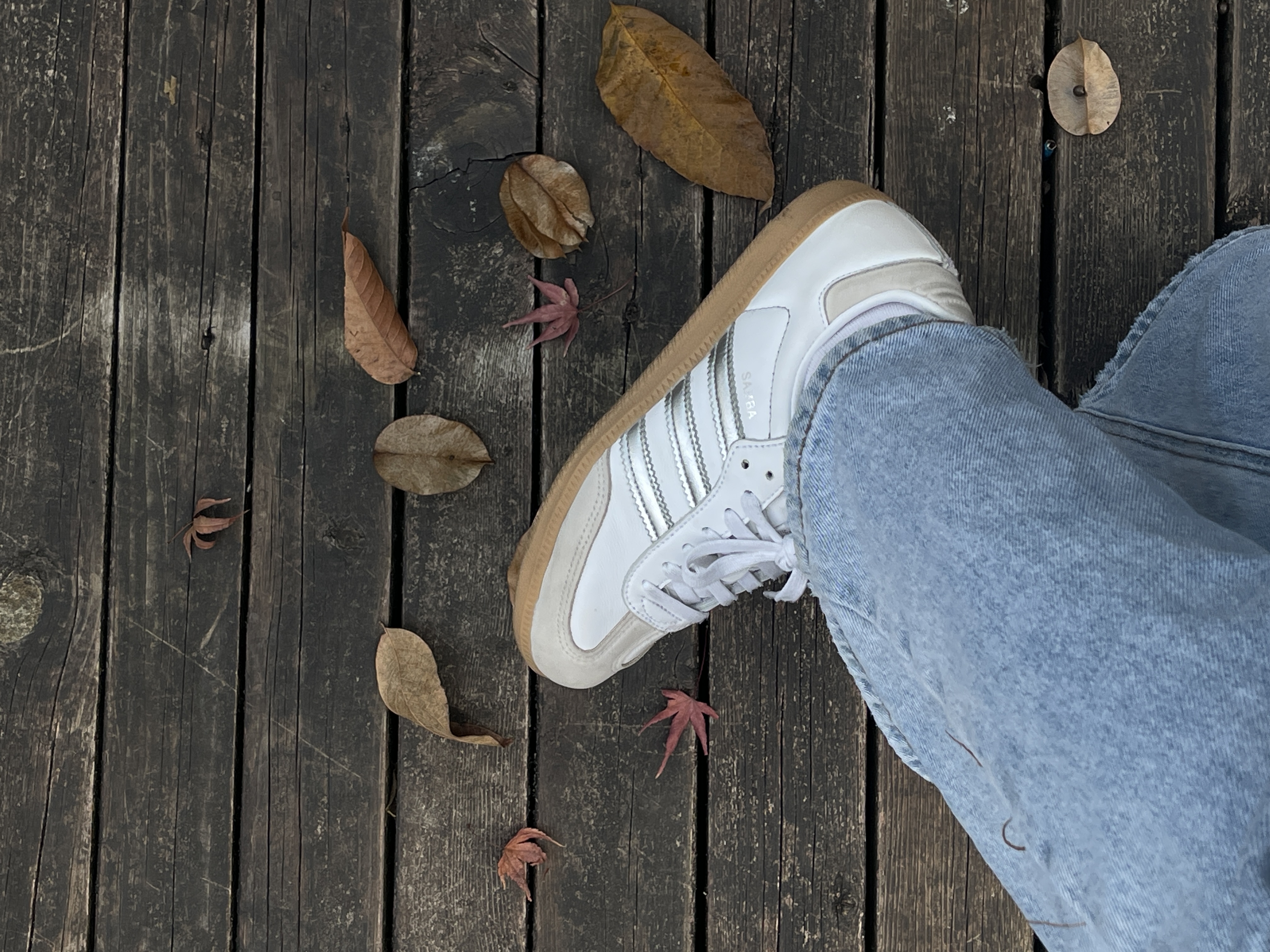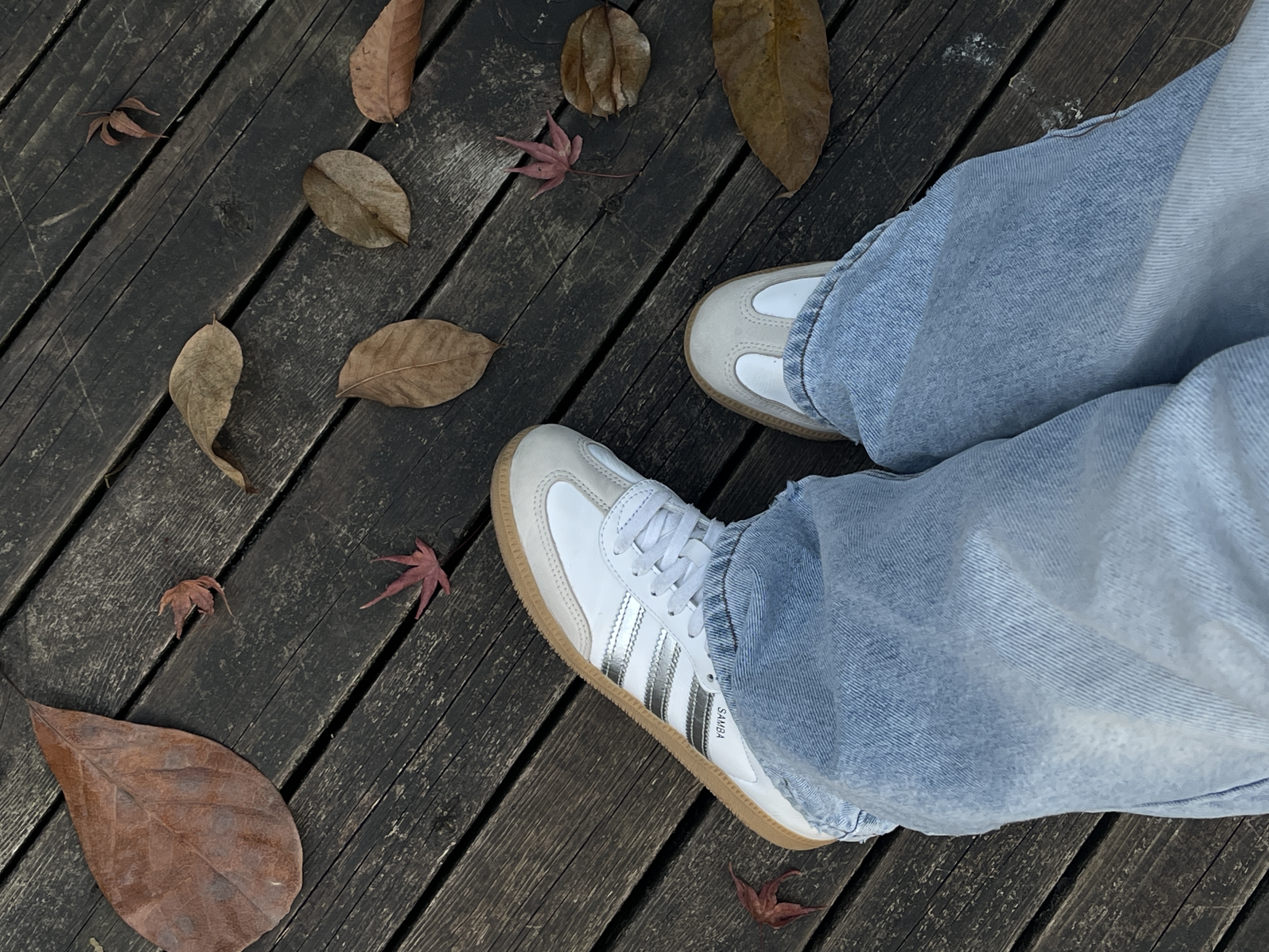 这个配色真的好百搭 好好看🥹 感觉没遇到什么不适合一起穿的衣服 搭配牛仔阔腿裤很休闲,怎么搭都很好看太喜欢了~ 上脚也很舒服没什么咬脚的问题 你们平时穿SAMBA最喜欢搭配什么风格的衣服呀?