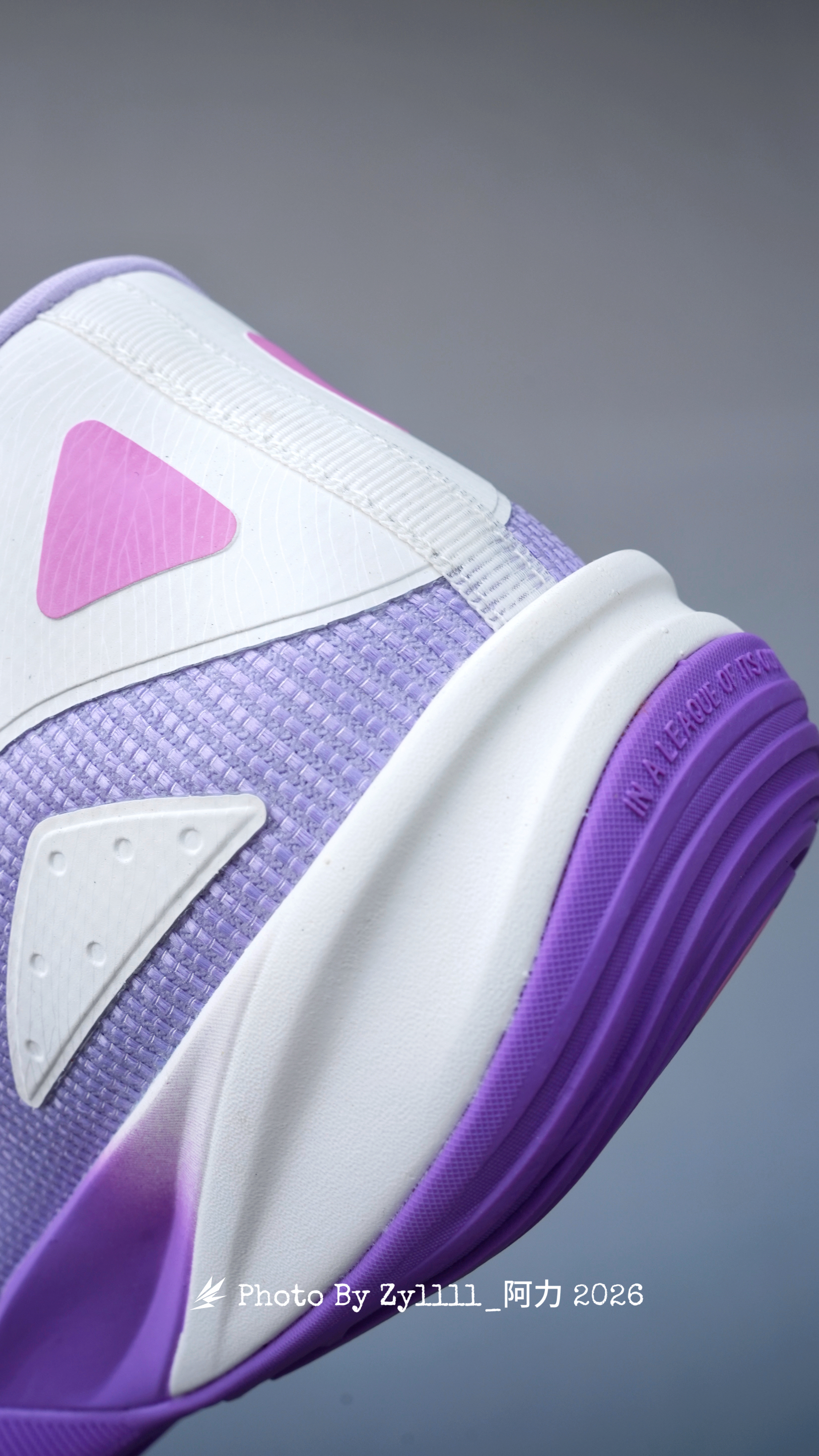 学生党外场又一实战好鞋 匹克 影刃 紫电幻影💜 这个紫色上脚真的很抓人眼球,颜值绝对是很过关的 SWR的外底,应对普通的外场耐磨也很不错 整体脚感偏韧弹,反馈很直给,而且整体鞋面包裹也OK 学生党实战选它错不了