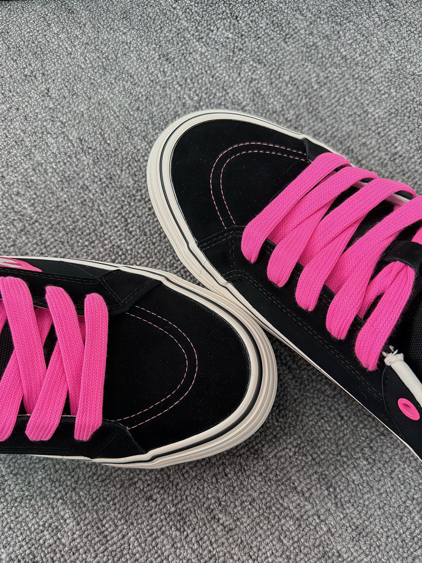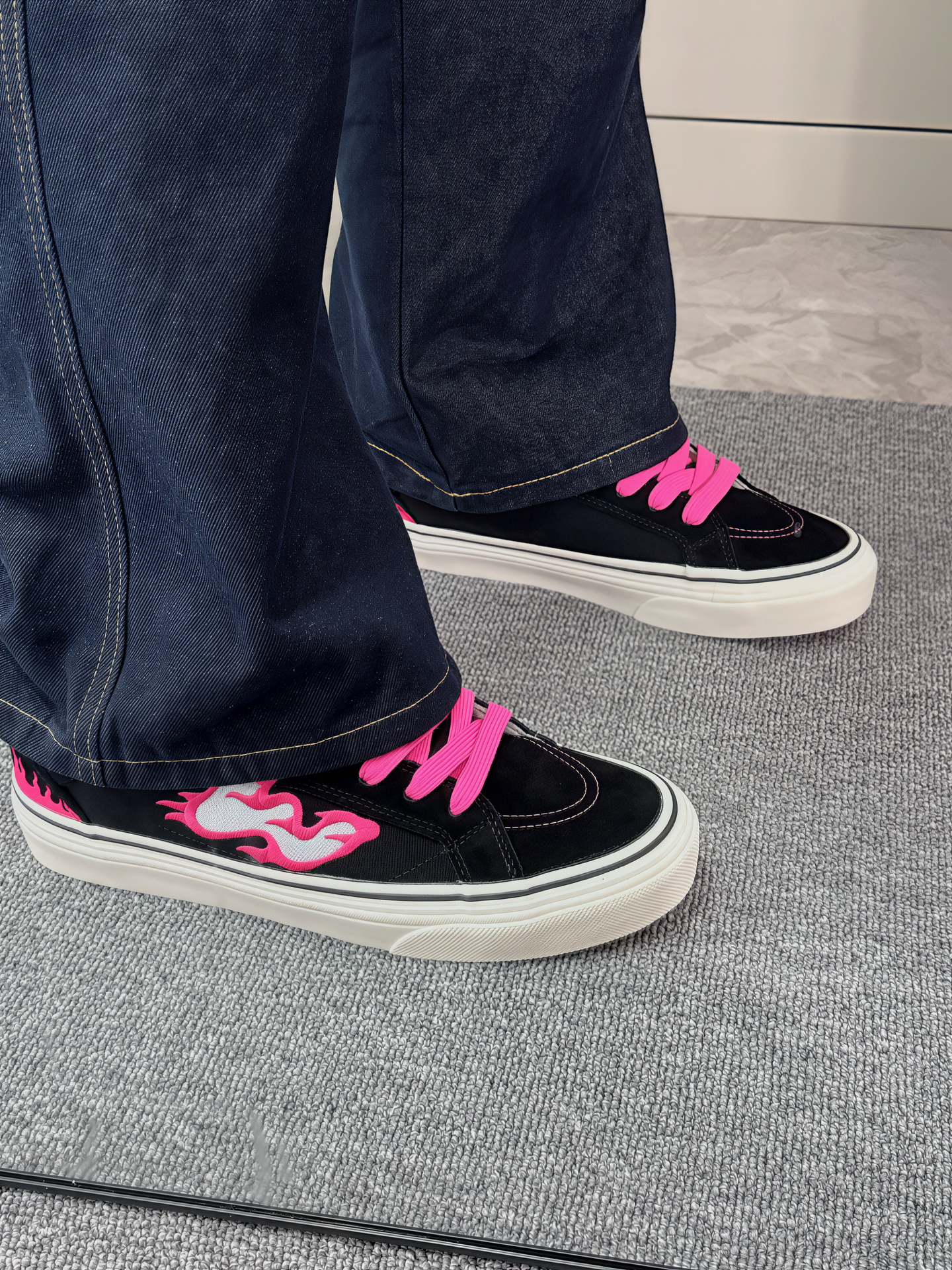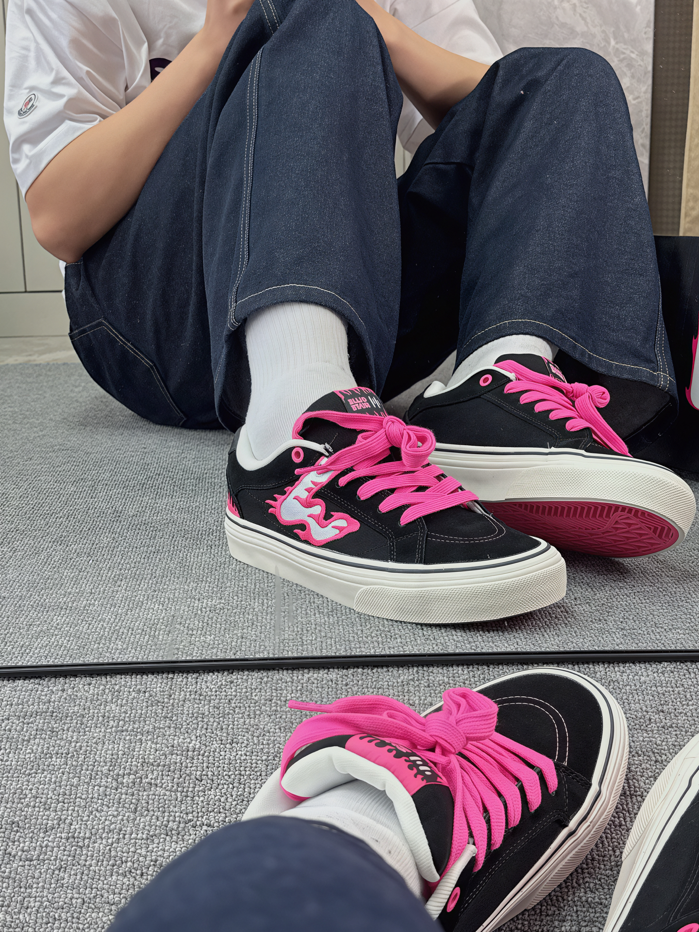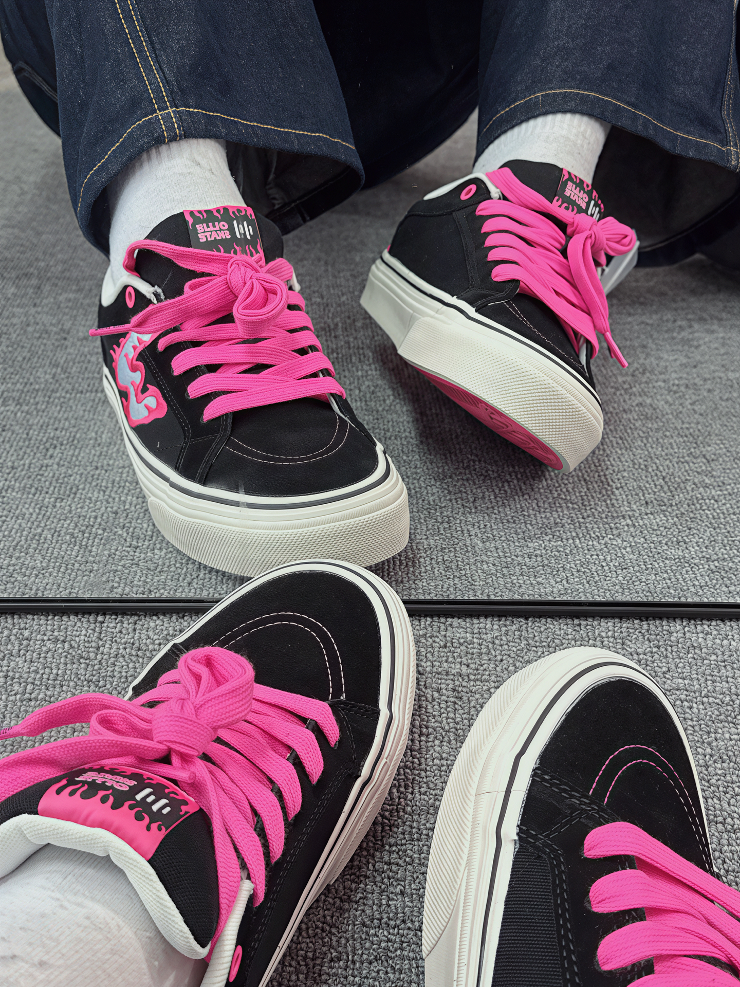 入手顽刻的第二双鞋啦 黑粉火焰真的很酷,莓粉与黑色的碰撞 上脚也很好看,搭配牛仔裤或者短裤都将潮流穿在脚上 💯 性价比满满,喜欢的可以冲了[祈祷_blue]