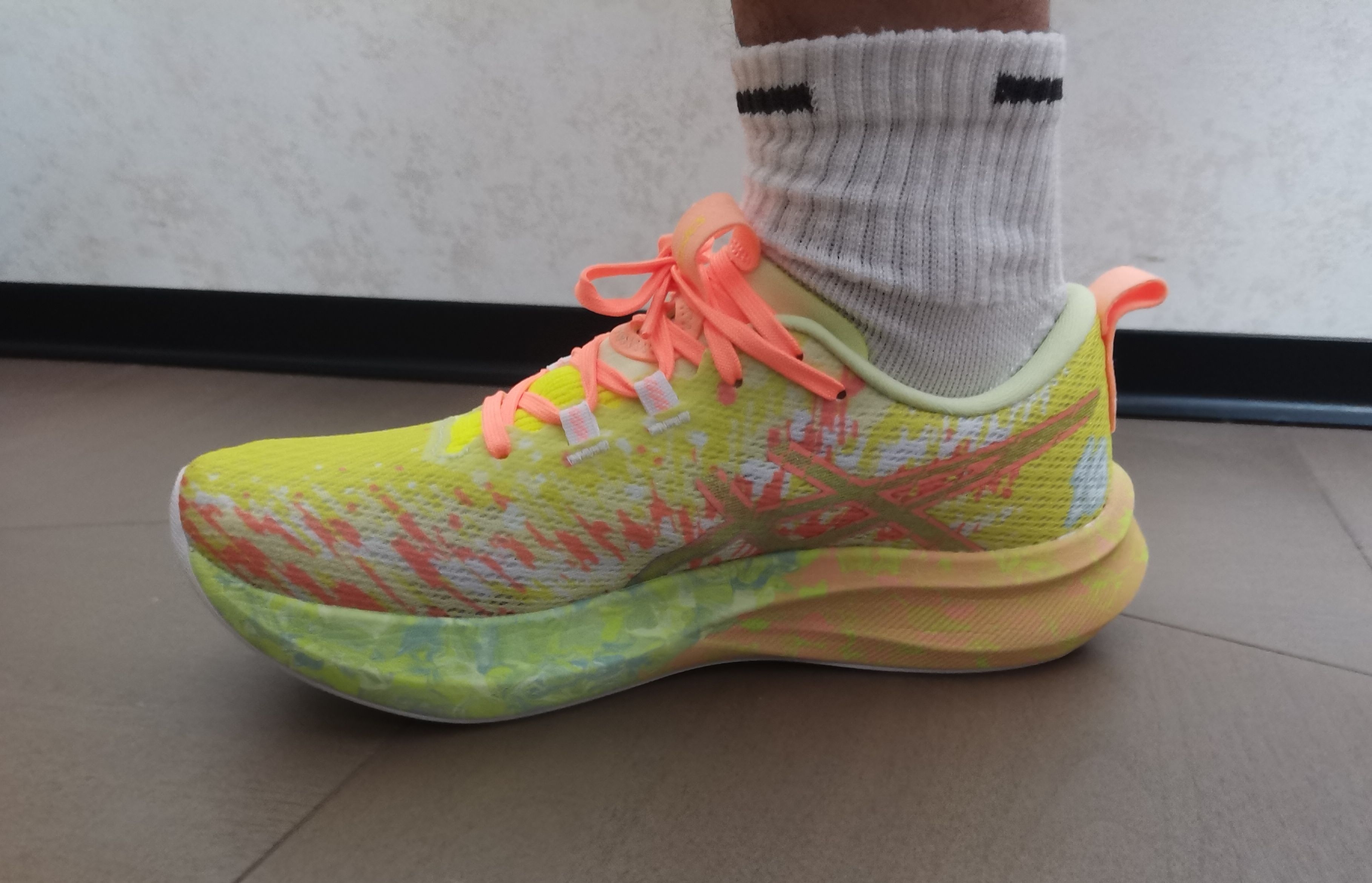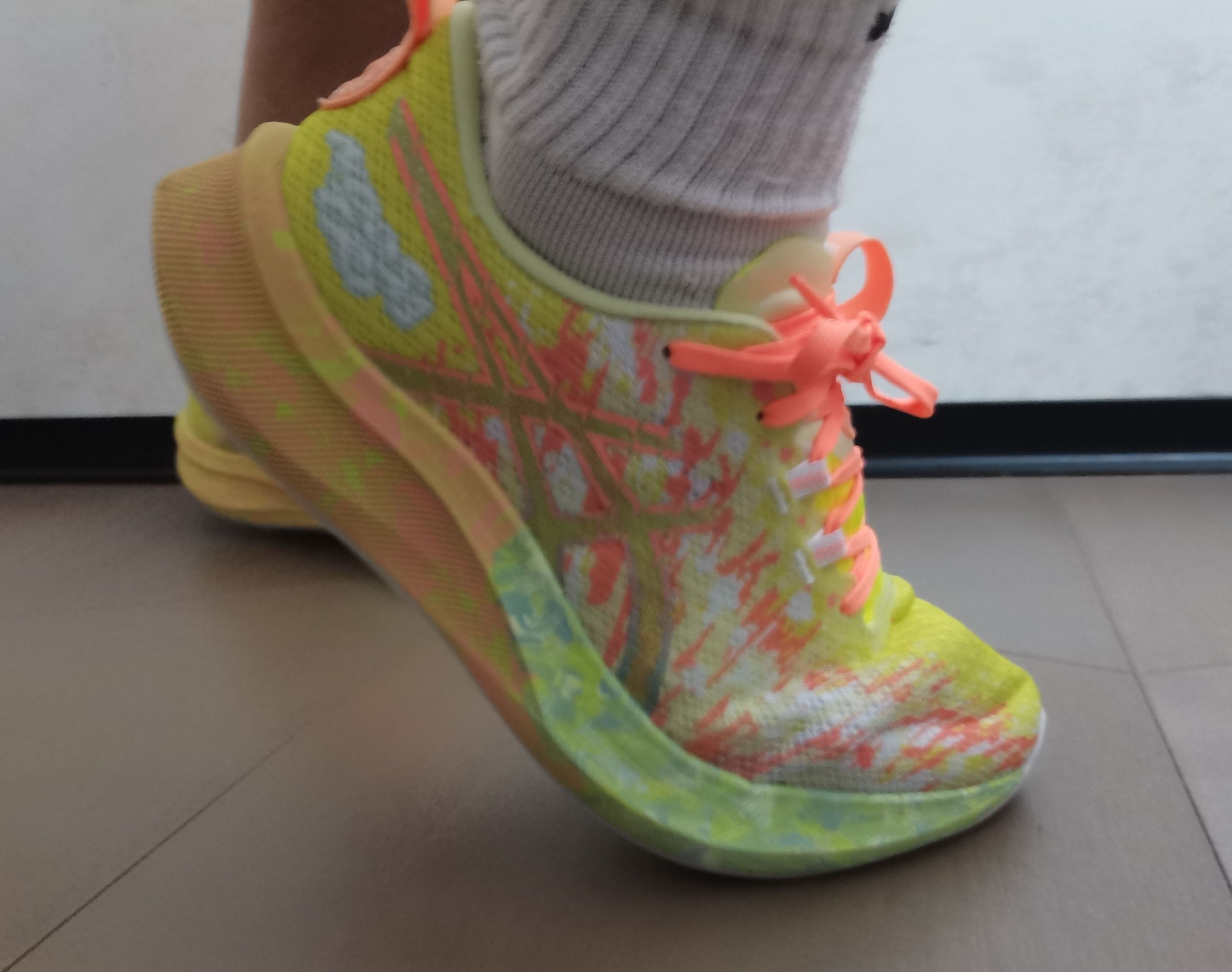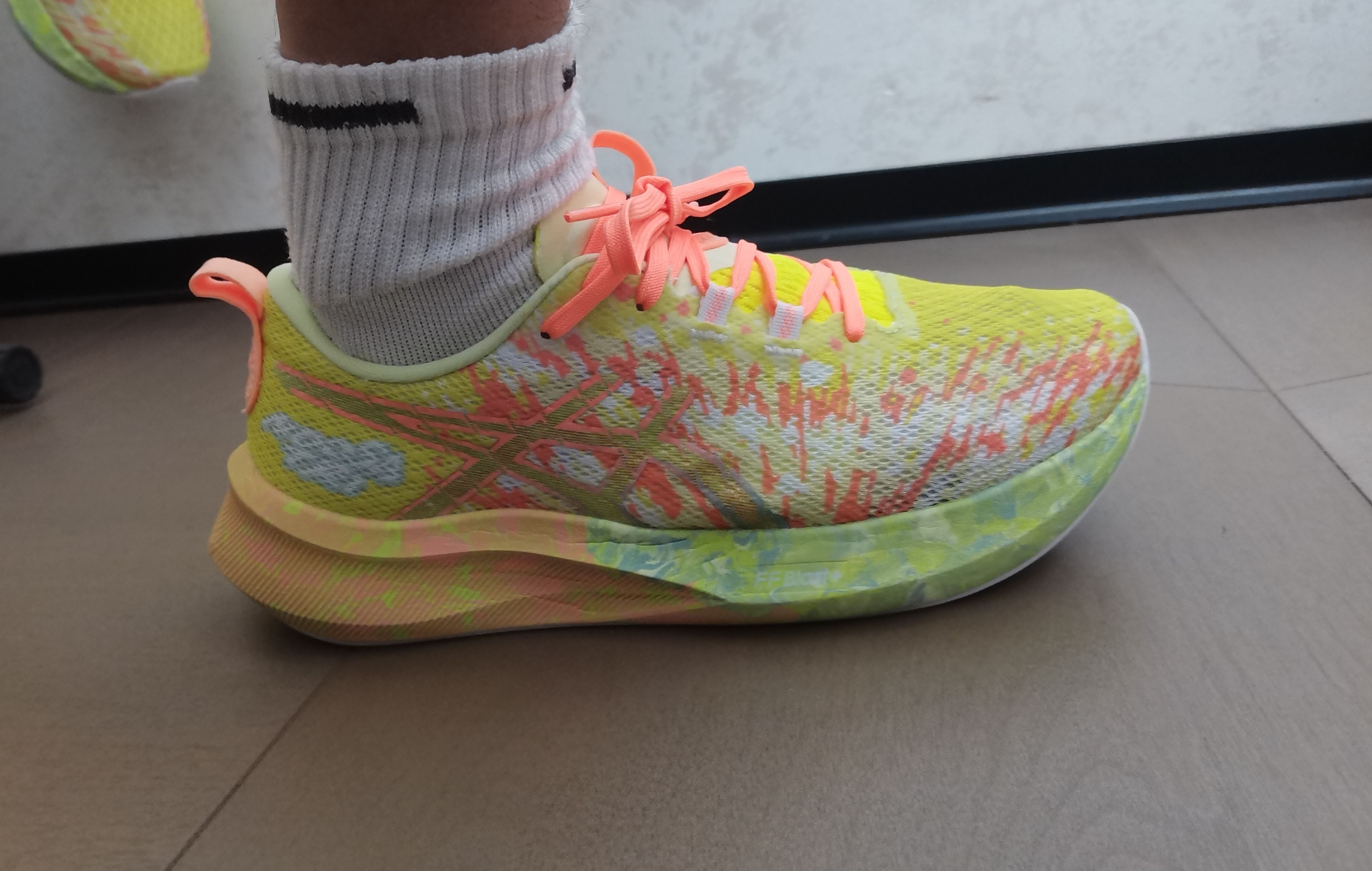 这双铁人三项的鞋脚感感觉还不错 中地采用亚瑟士FF Blast脚感软弹 鞋底防滑挺好! 透气也不错 鞋垫厚实 后跟港宝并且还有一圈填充 配色太好看了!而且穿去学校不会撞鞋 可以增高哦!!! 拿来通勤也挺好的呢!!!