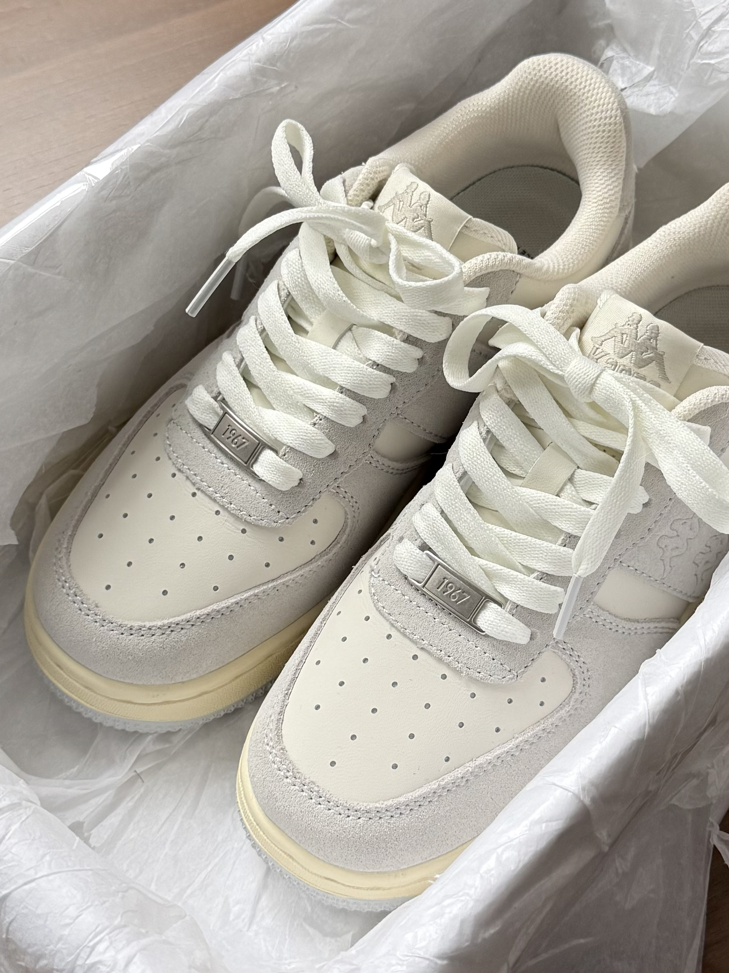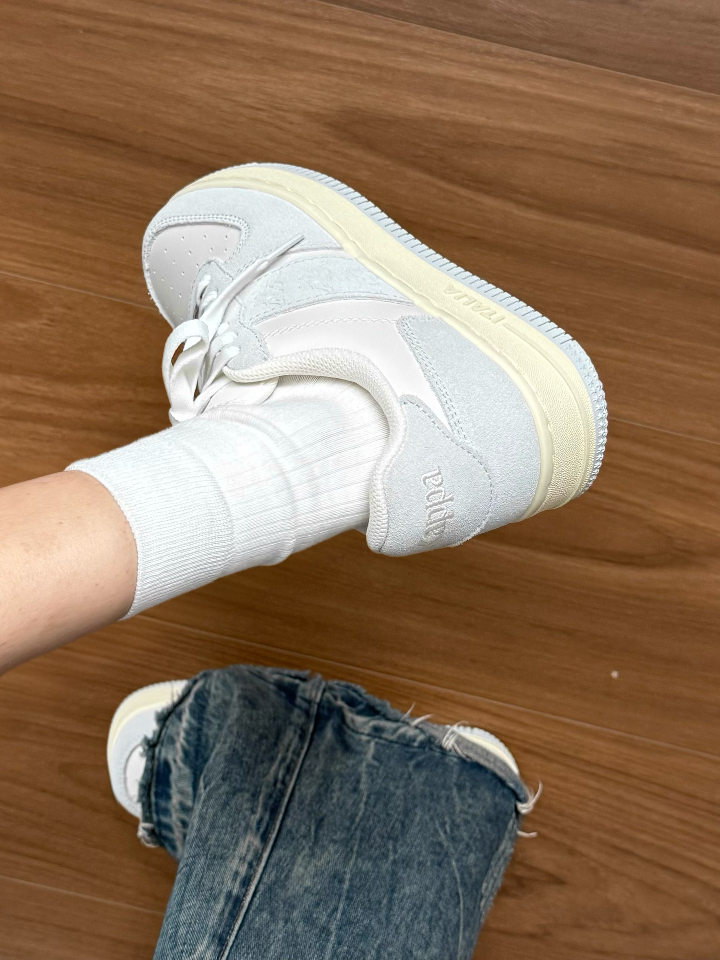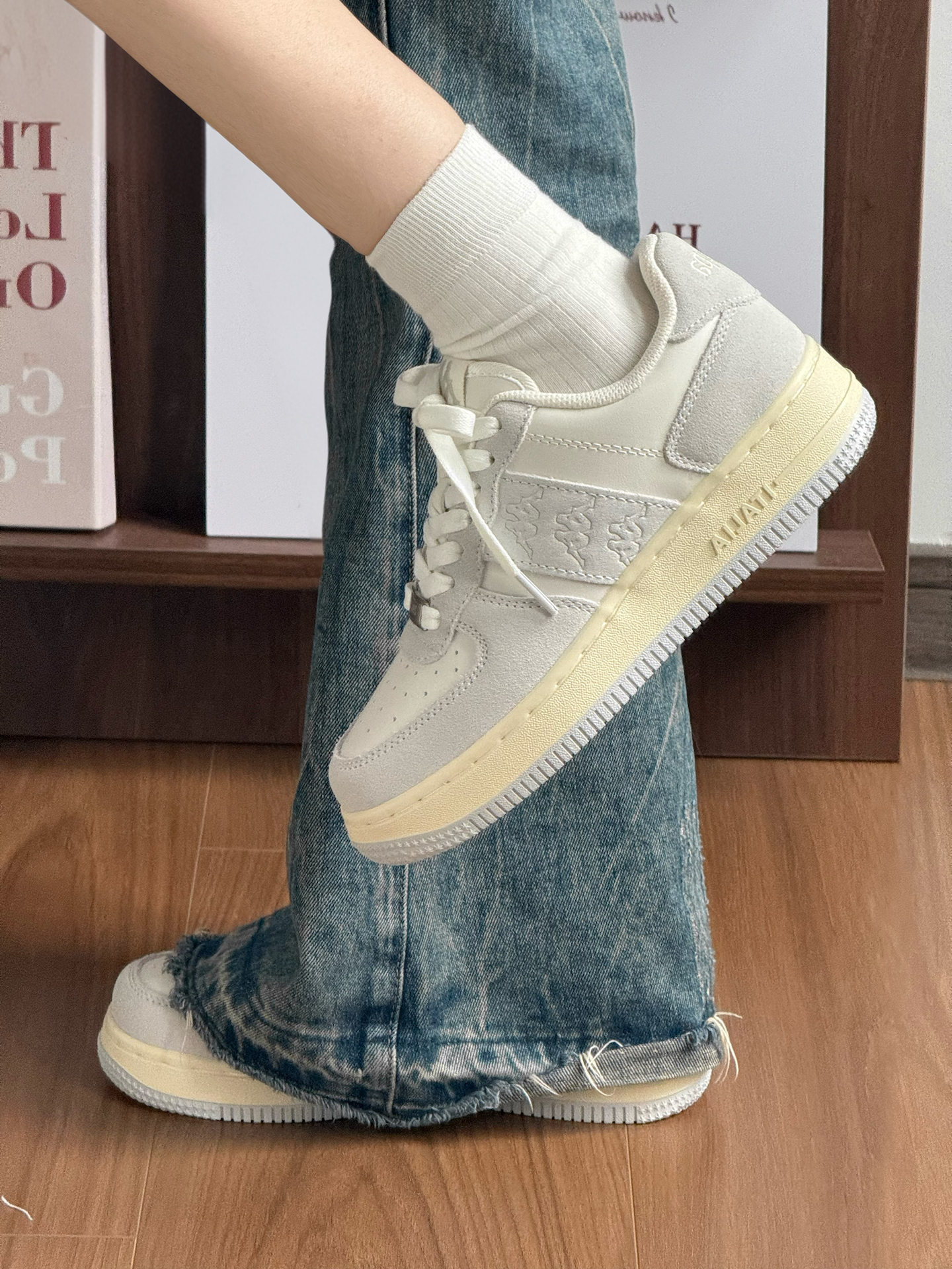 这双鞋我真的好喜欢bb们! kappa总是能让我放心 鞋型纤瘦蛮显脚小的 厚底有点增高大概2-3cm 还能悄悄拉长身材比例 这双奶油灰属于比较温柔的气质 日常通勤穿搭基本都挺好搭的