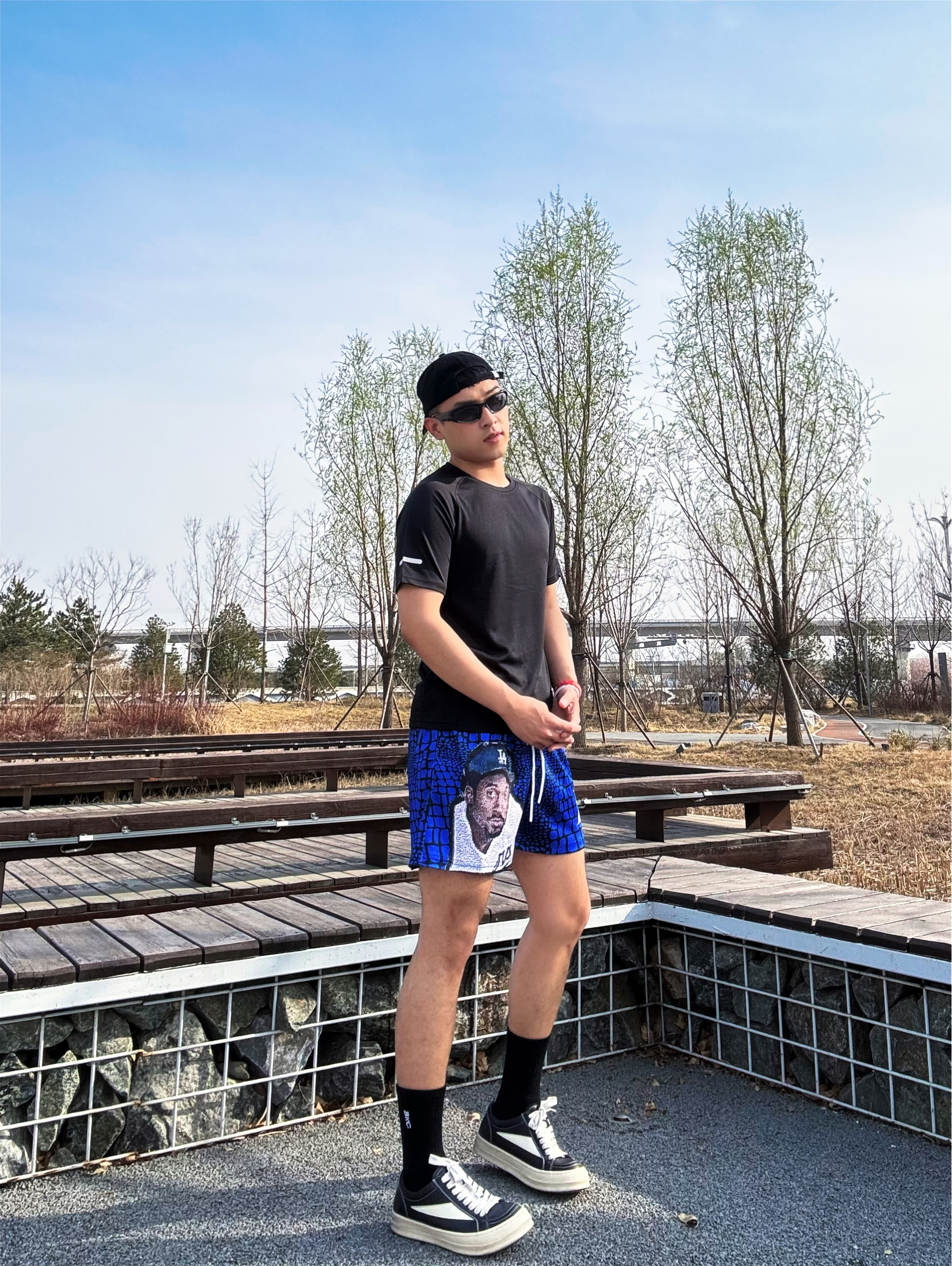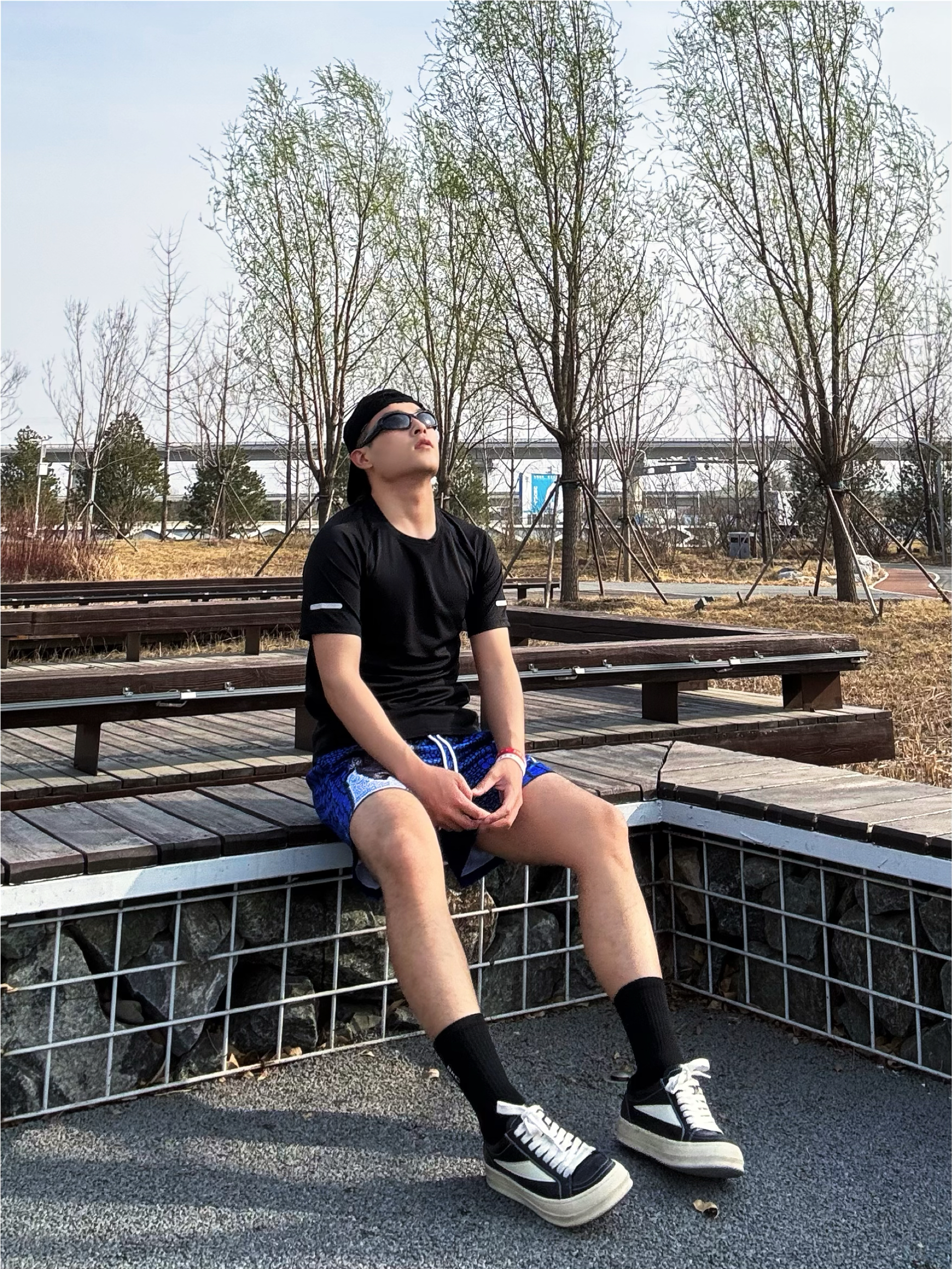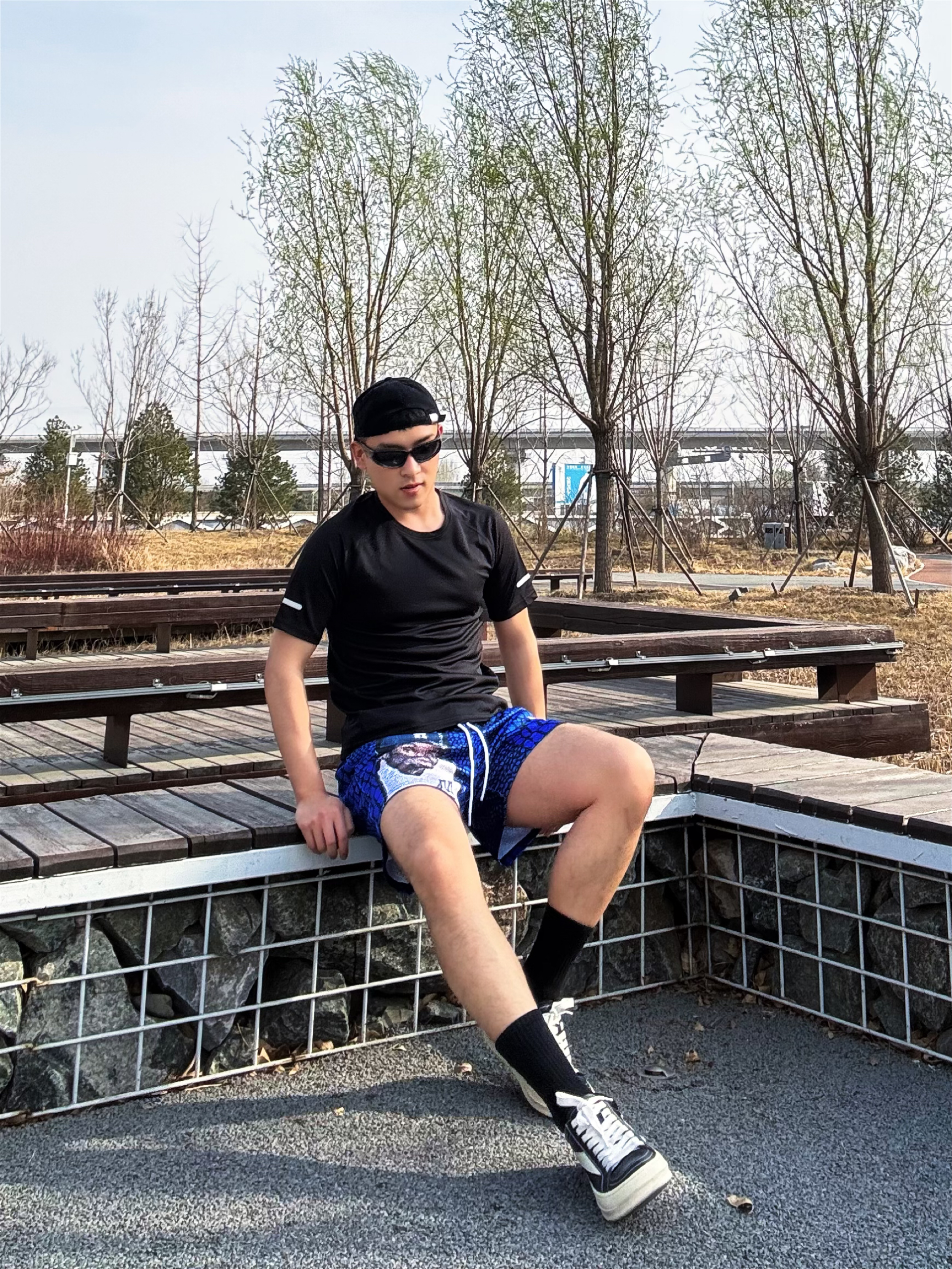 早春这身真的一眼爱住🌬️ 💨 冰丝凉感黑T搭四分篮球裤 纯色极简里藏着精致小印花,清爽不闷汗 材质柔软舒适,运动穿搭极佳✨ 出门跑步拿快递都舒服到不想换🎧 黑鞋黑袜加手环点缀,反戴棒球帽瞬间少年感拉满,整套黑灰干净利落,阳光一照整个人都在发光⚡️🔮 尺码:180/70 👕L 🩳XL
