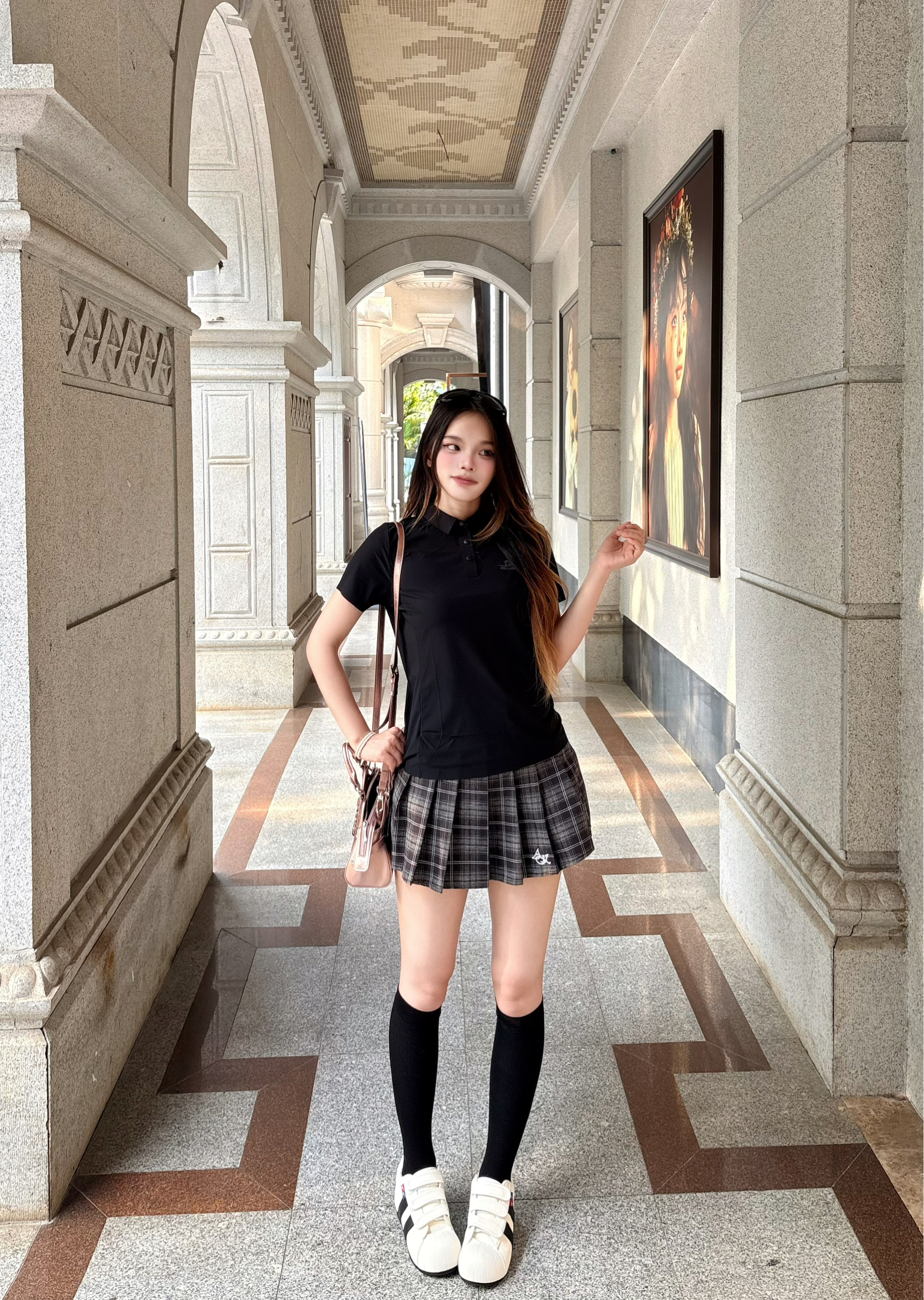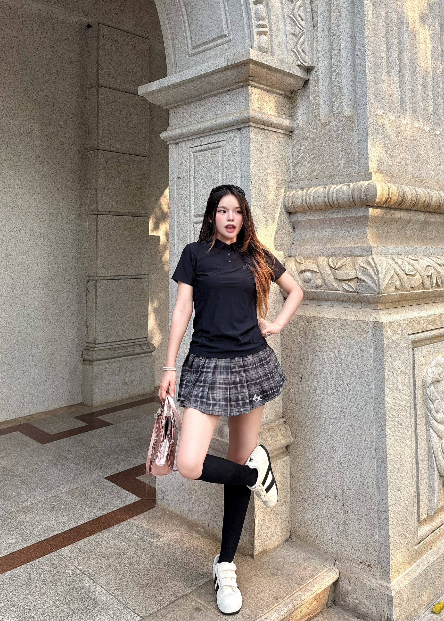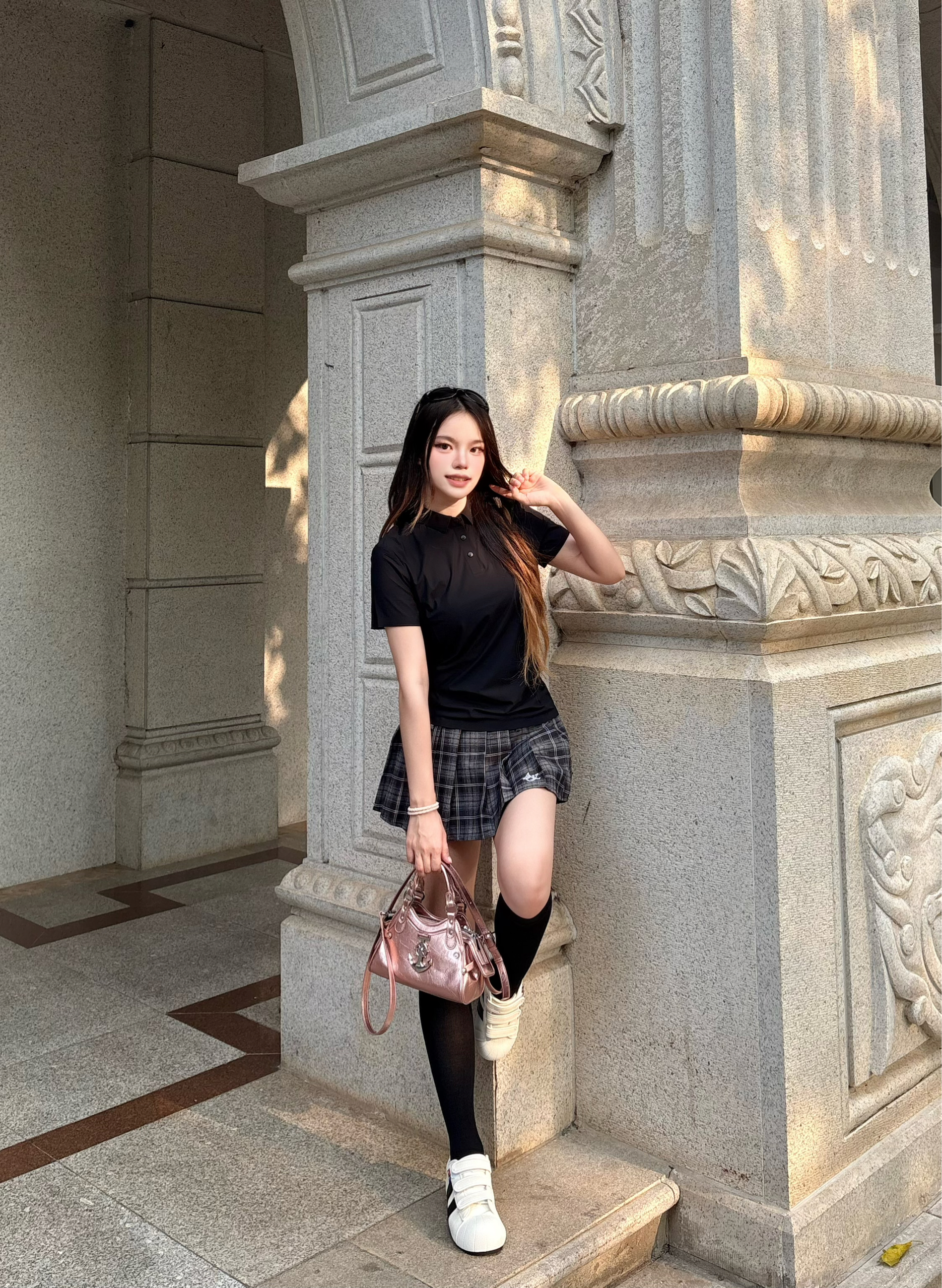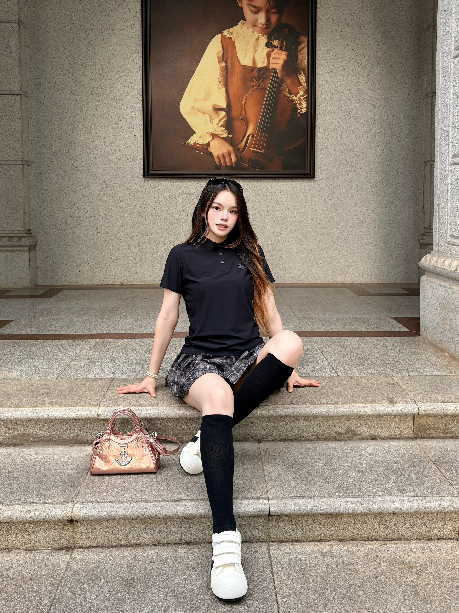 我的这套黑袜穿搭的核心思路,巨实用🥰 我的韩系小腿袜穿搭公式 ✨选款思路:一定要入这种高弹竖纹的 纵向纹理真的很显瘦,能把小腿肉肉都收得服服帖帖,袜长卡在小腿最细处,腿直比例拉满。✅ ✨搭配公式:小腿袜+短裙真的很显腿直 穿上感觉比例都变好了🌷