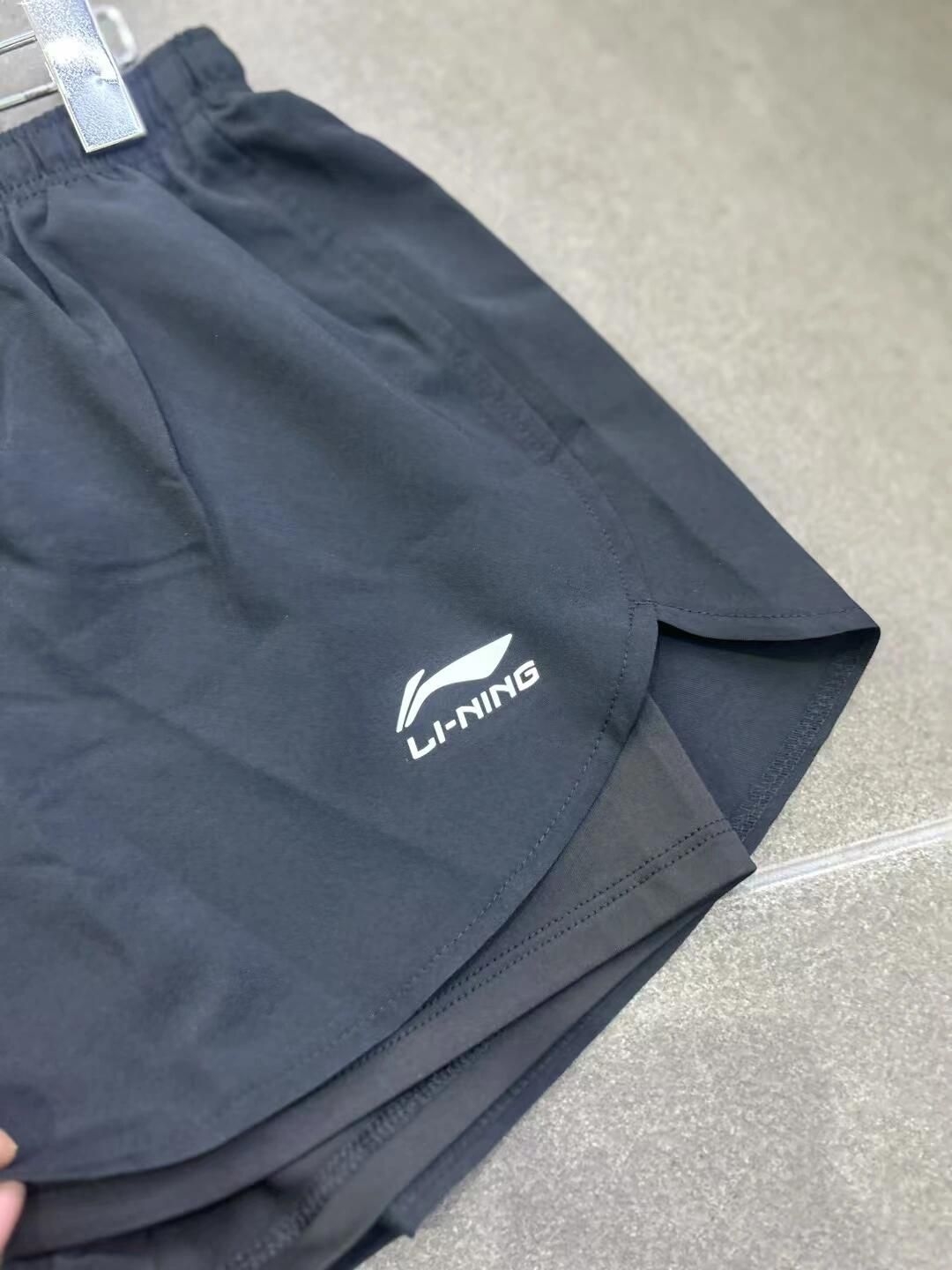🖤李宁假两件运动短裤,黑色速干面料,透气又吸汗,夏天运动超适合!外层宽松短裤+内衬防走光,跑步健身都OK,舒适又实用✨。抽绳松紧腰,适合各种体型,李宁标志超有辨识度。假两件设计兼具时尚与功能,日常休闲、运动场景都能轻松驾驭,是夏季运动穿搭热门选择!