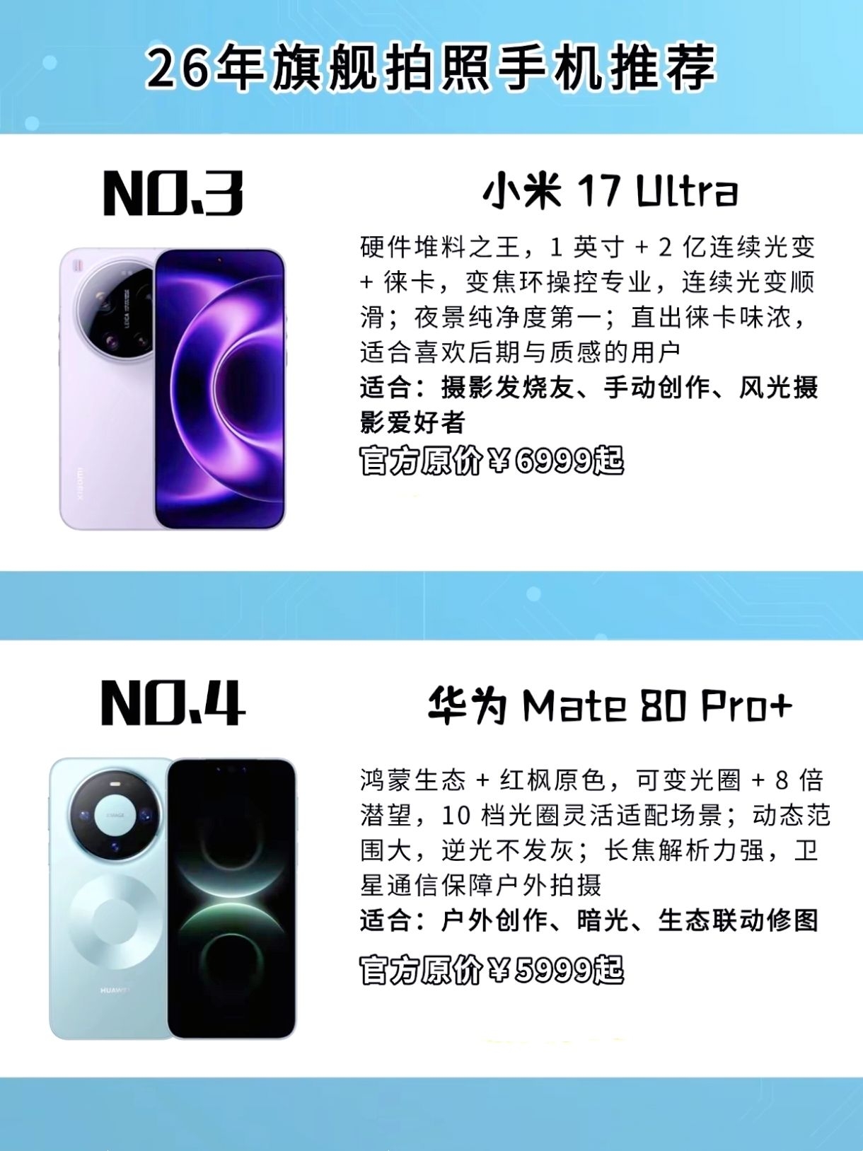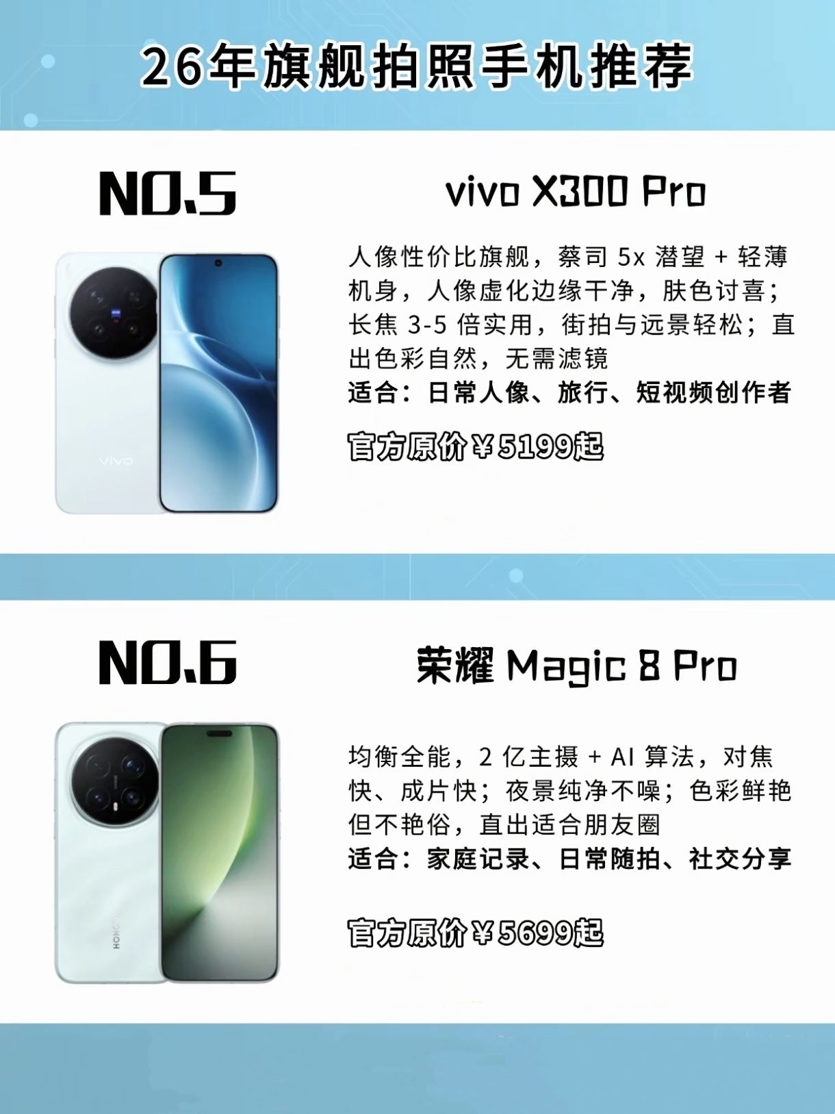 最近在看得物上的拍照手机推荐,2026年这几款旗舰机表现太强了!OPPO Find X9 Pro夜景和长焦很稳,iPhone视频防抖依旧能打,小米17 Ultra的徕卡质感绝了,华为Mate 80 Pro+户外拍摄给力,vivo X300 Pro人像性价比高,荣耀Magic 8 Pro适合日常记录。各有优势,你们觉得哪款最香?