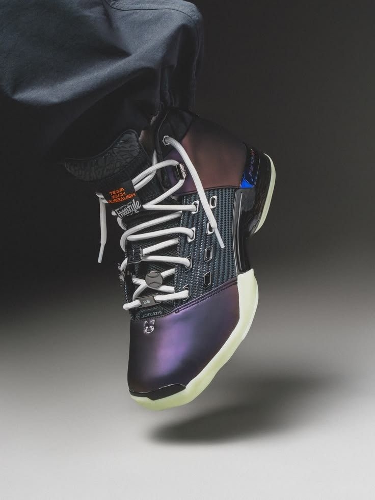 38天的生死竞速,藏在每一处细节里 夜光底+渐变紫,上脚直接帅炸 这才是球鞋该有的温度与重量