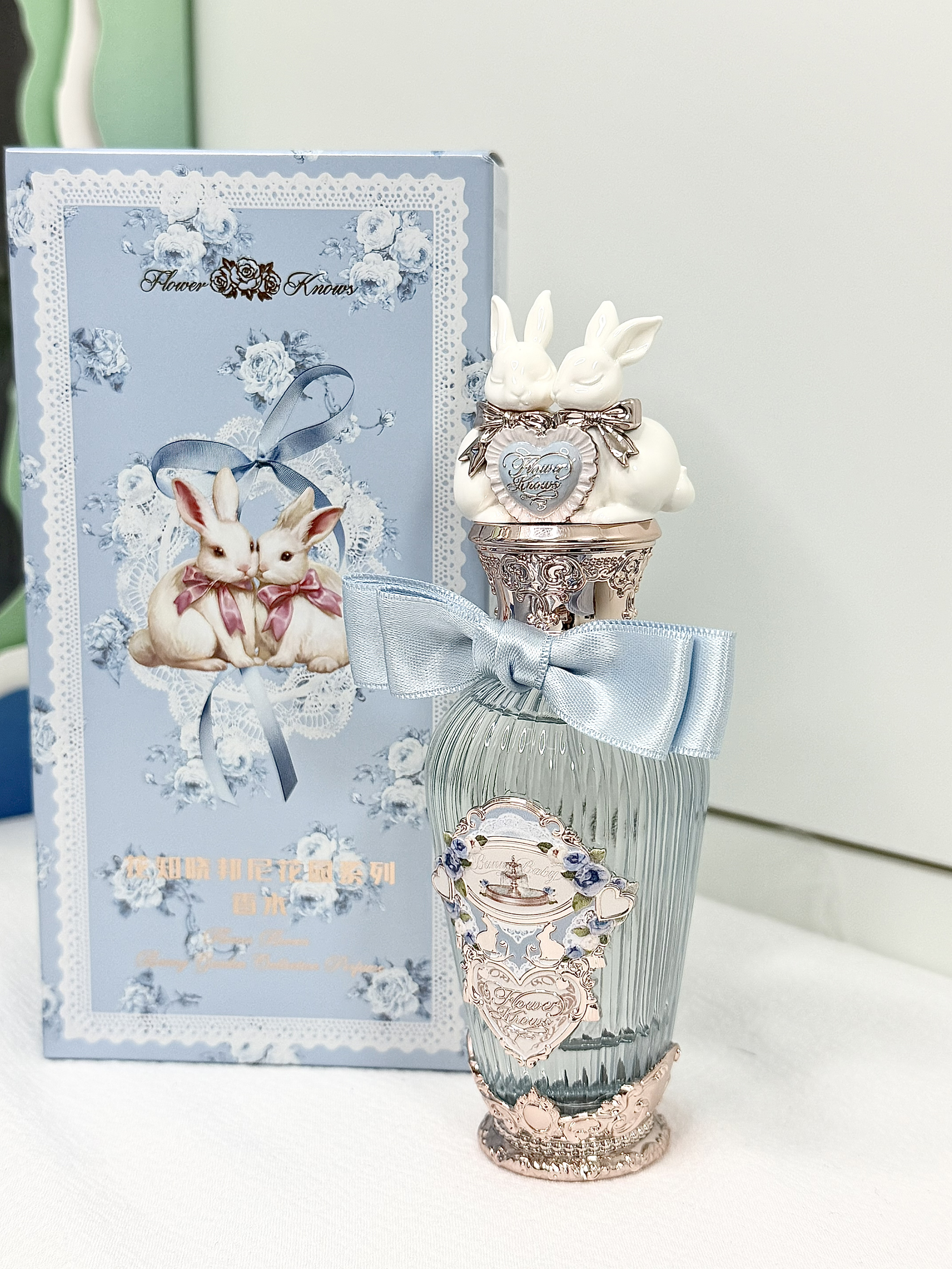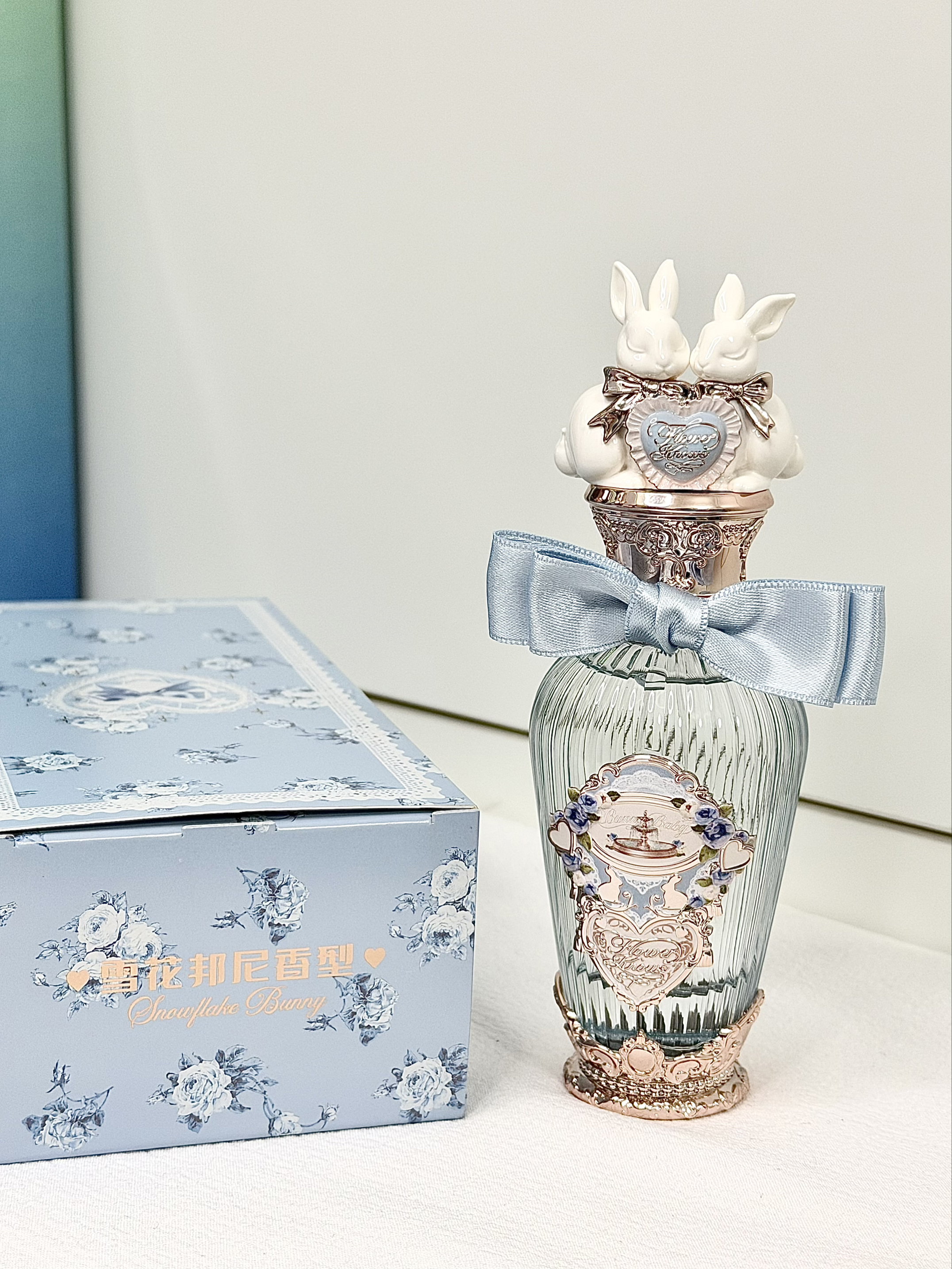 花知晓邦尼花园系列香水中的 雪花邦尼是那种洗完澡后身上自带的沐浴露香味~ 男生闻了都以为是你天生的体香! 真的闻着都舒服😌 奶油蓝魔法药水瓶 搭配双生白兔雕刻瓶盖 充满洛可可童话感 摆化妆台颜值爆表! 前调:柠檬、橙花; 中调:铃兰、茉莉; 后调:白麝香、雪松