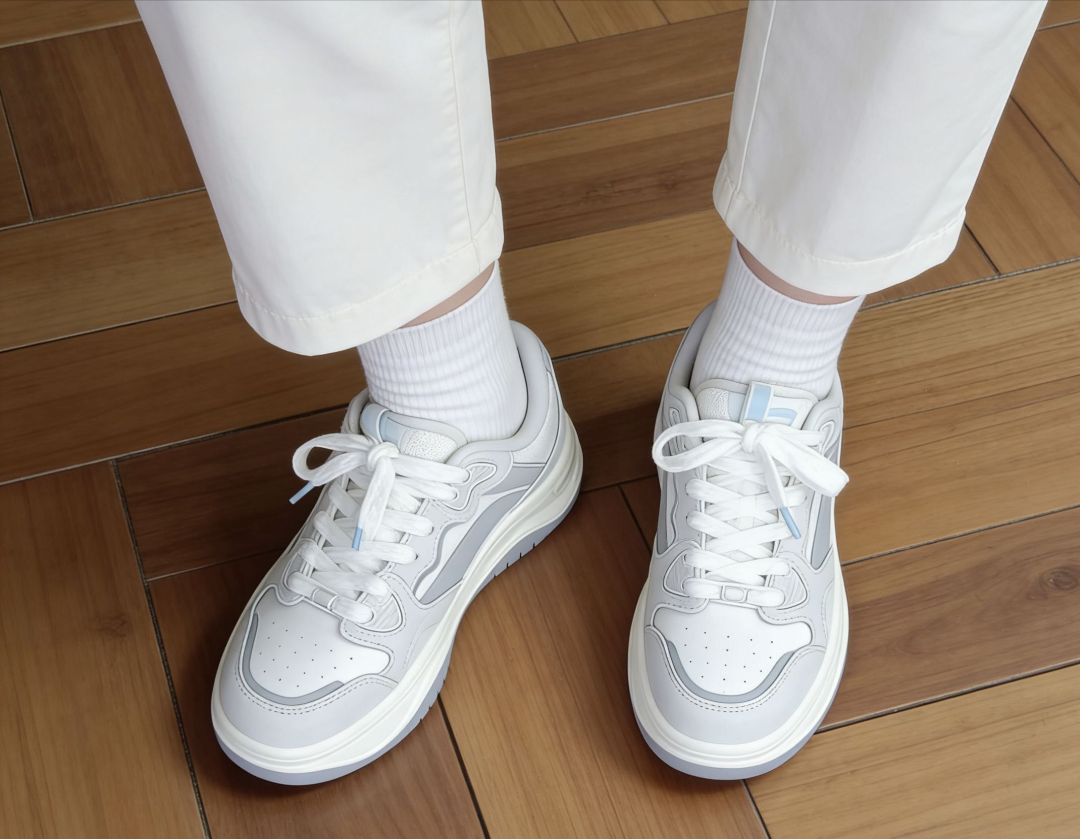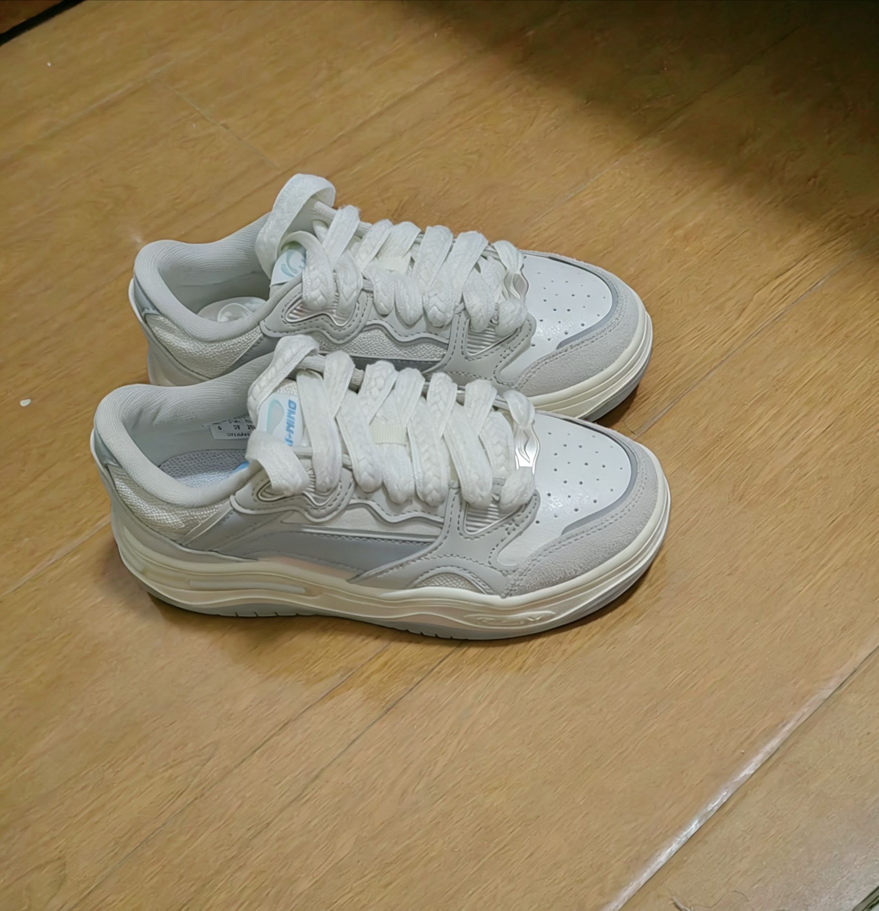 今年挖到的最满意的一双鞋,就是李宁这双奶灰面包鞋! 之前一直想买一双不挑衣服、上脚显脚小、还能增高的小白鞋,看了好多款不是太贵就是太硬,直到刷到这双直接一眼沦陷!