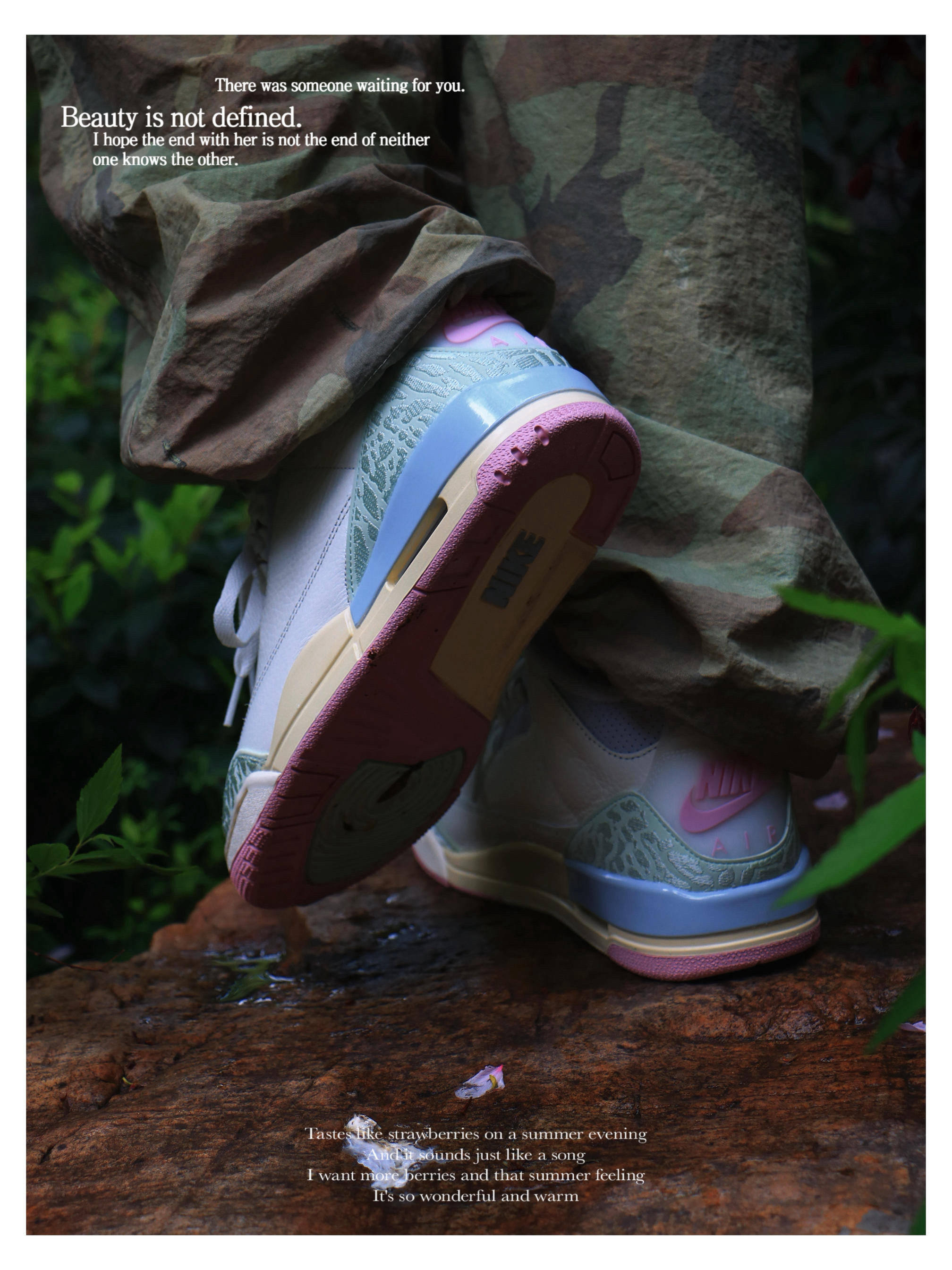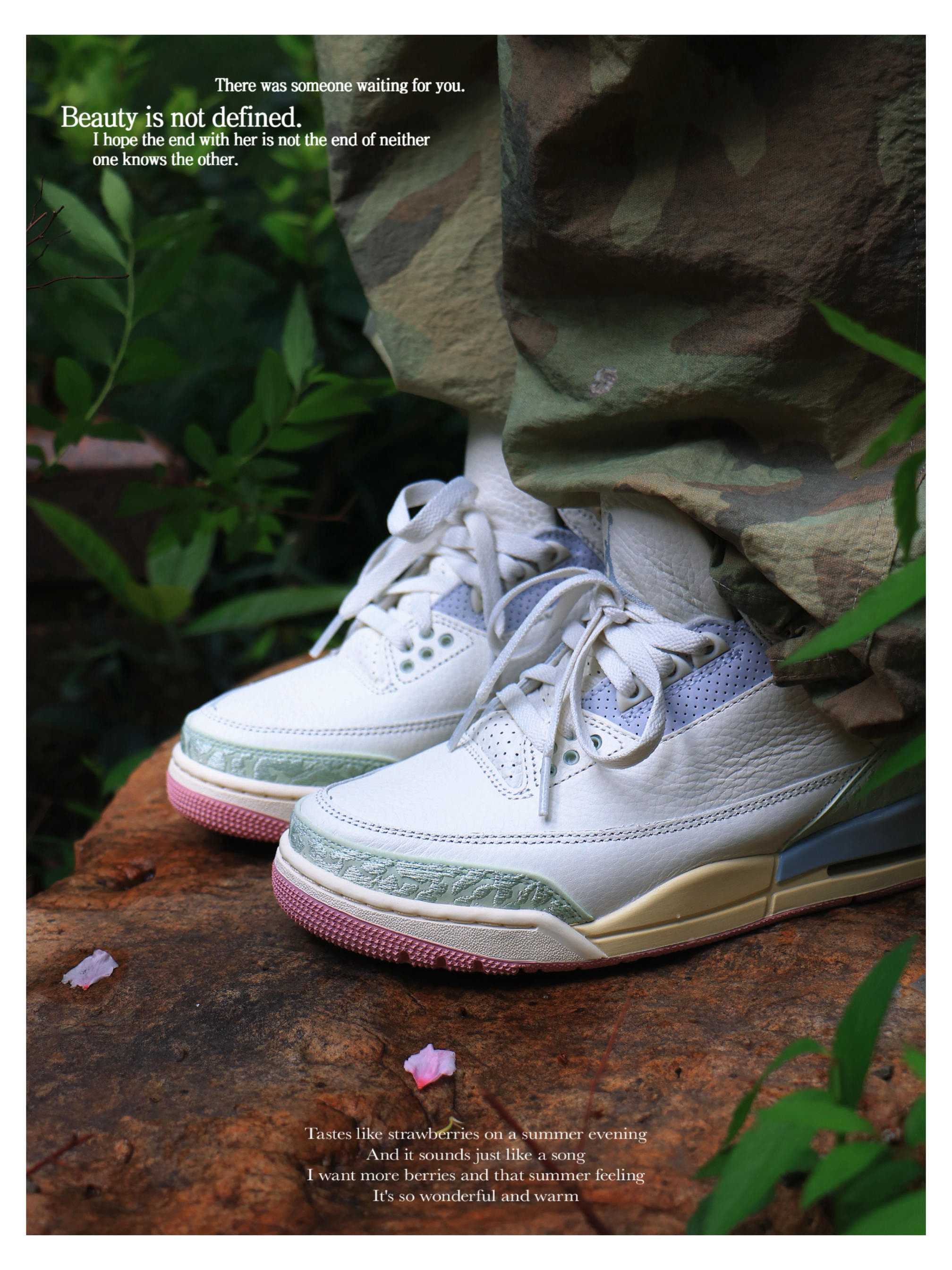 这双Air Jordan 3 「象牙白/冰粉」款,是把春日温柔焊在脚上的颜值神鞋! 经典米白荔枝皮鞋身,鞋头与后跟点缀薄荷绿爆裂纹,淡紫冲孔鞋舌+冰粉色生胶外底,马卡龙撞色完美适配春日氛围;鞋侧Jumpman飞人标、后跟NIKE AIR标识,完美还原AJ3的复古篮球基因。 头层荔枝皮质感高级,上脚软弹不磨脚;内置Air气垫缓震,日常通勤、出街暴走都舒适,厚底设计悄悄增高,轻松拉长腿型,对各种脚型包...