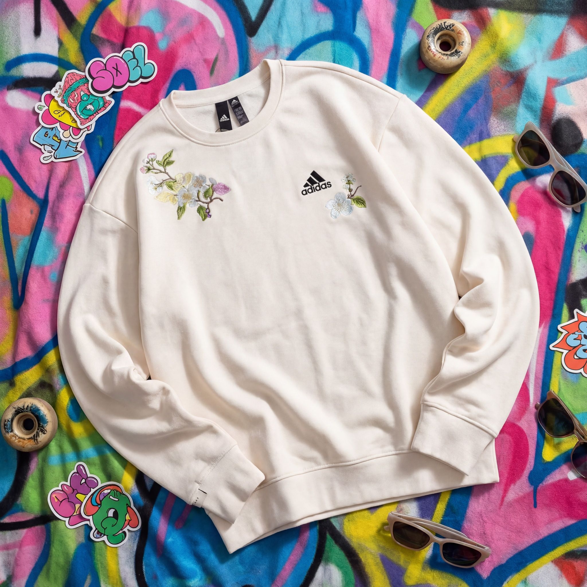 我这件米白色的阿迪达斯卫衣真的太适合日常穿了! 基础的圆领版型不挑身材,宽松的上身效果舒服又自在,不管是搭牛仔裤、运动裤都很合适。最戳人的就是这个精致的花卉刺绣,不是那种夸张的大图案,小小的点缀在胸口和袖子上,给简约的运动款加了不少温柔感,甜酷平衡得刚刚好。 我觉得面料软乎乎的,春秋单穿、冬天内搭都合适,不管是出门逛街、通勤还是日常遛弯,穿它都不违和,属于那种衣柜里常备、穿不腻的百搭款,实用性和颜...