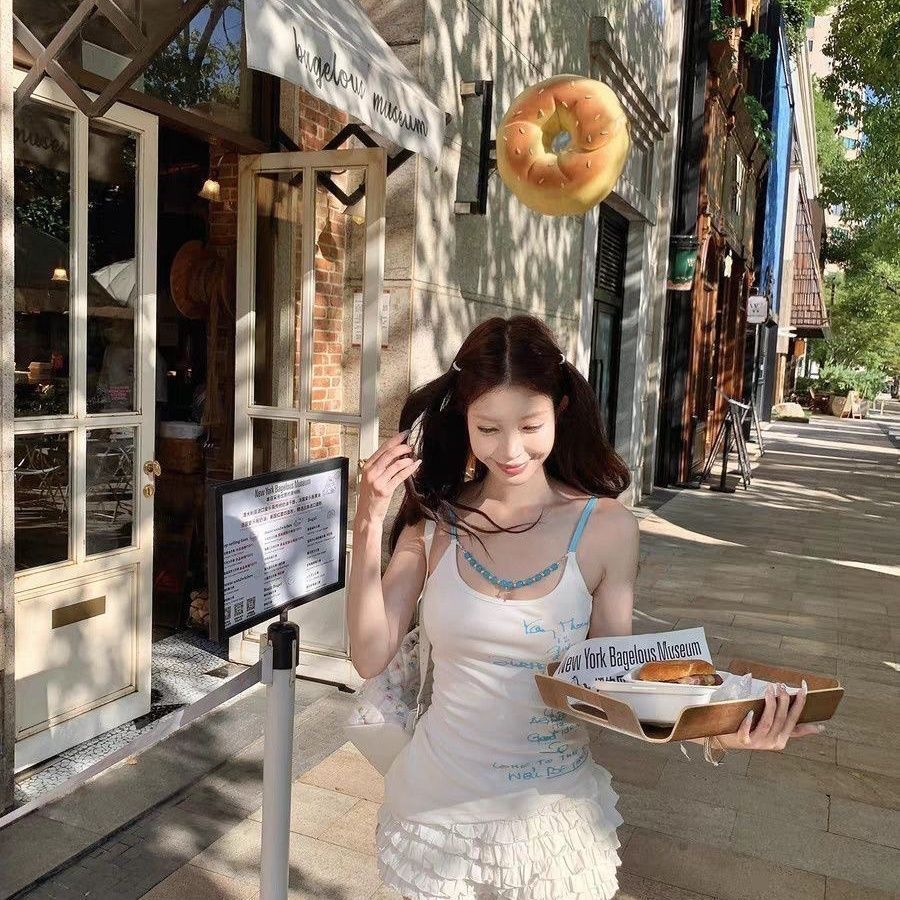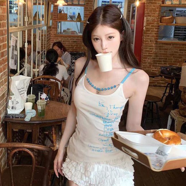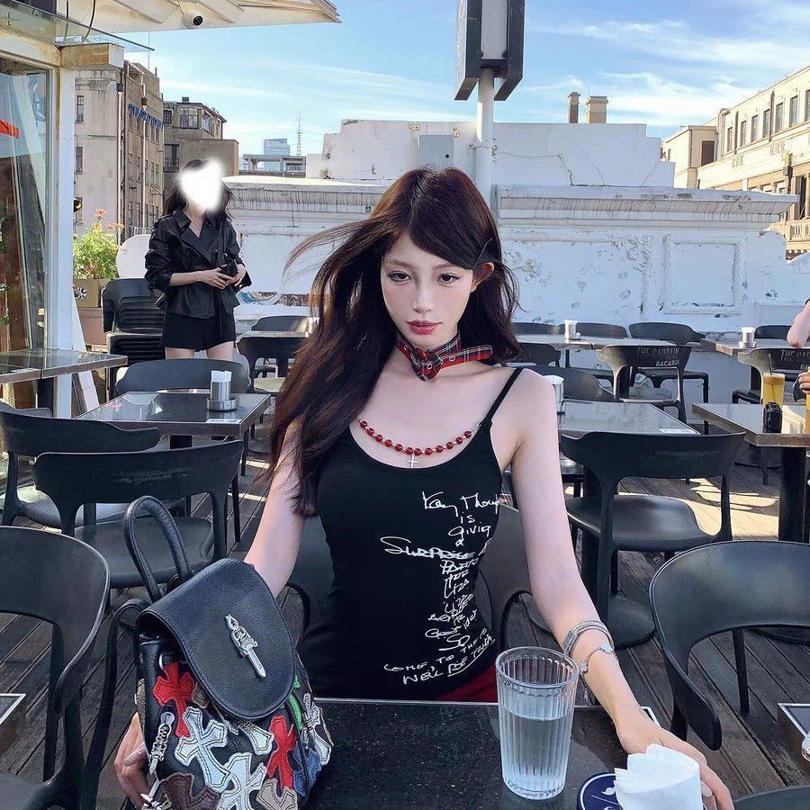 带胸垫夏季新款美式辣妹吊带字母印花背心修身显瘦内衣外穿上衣