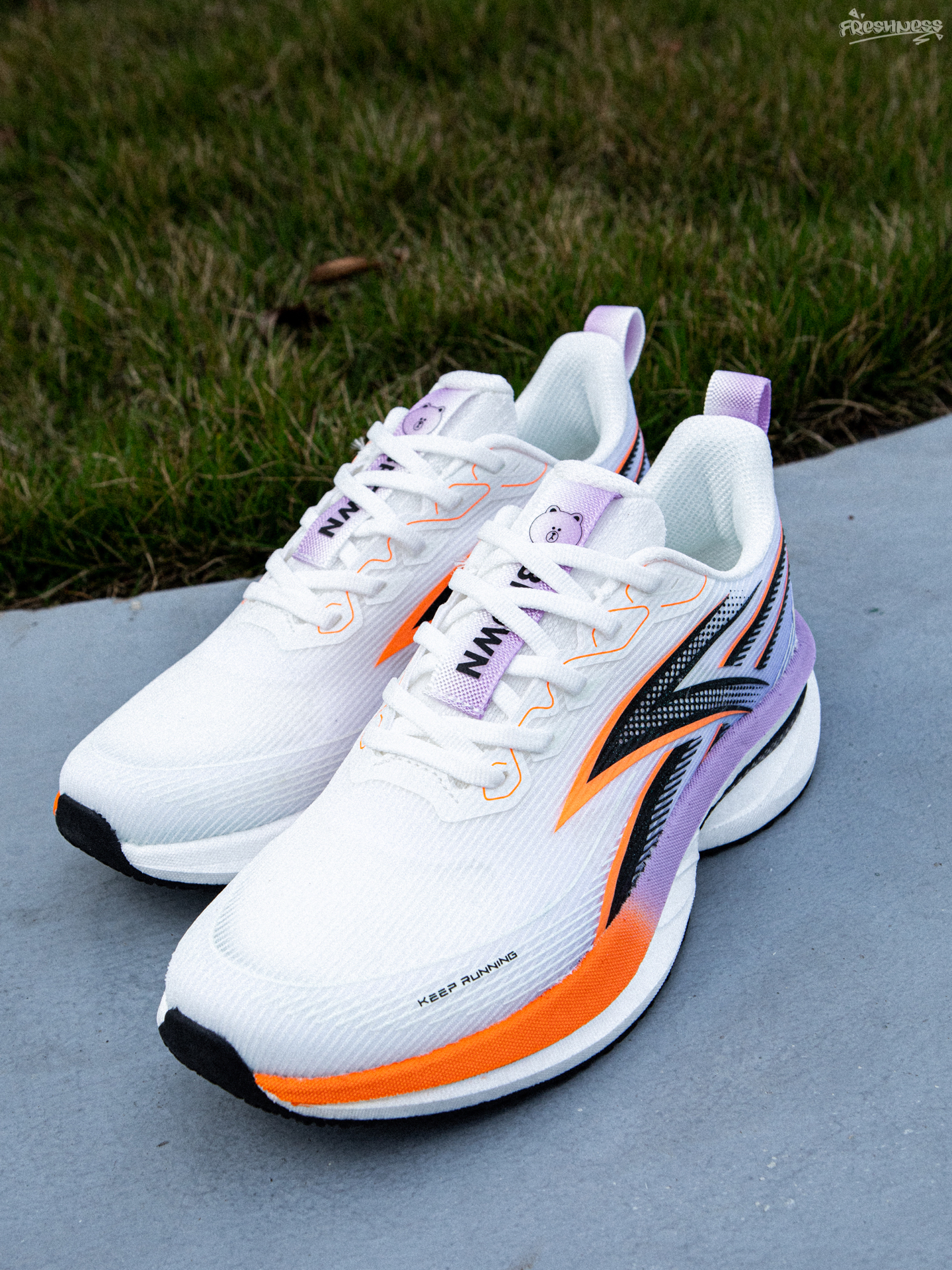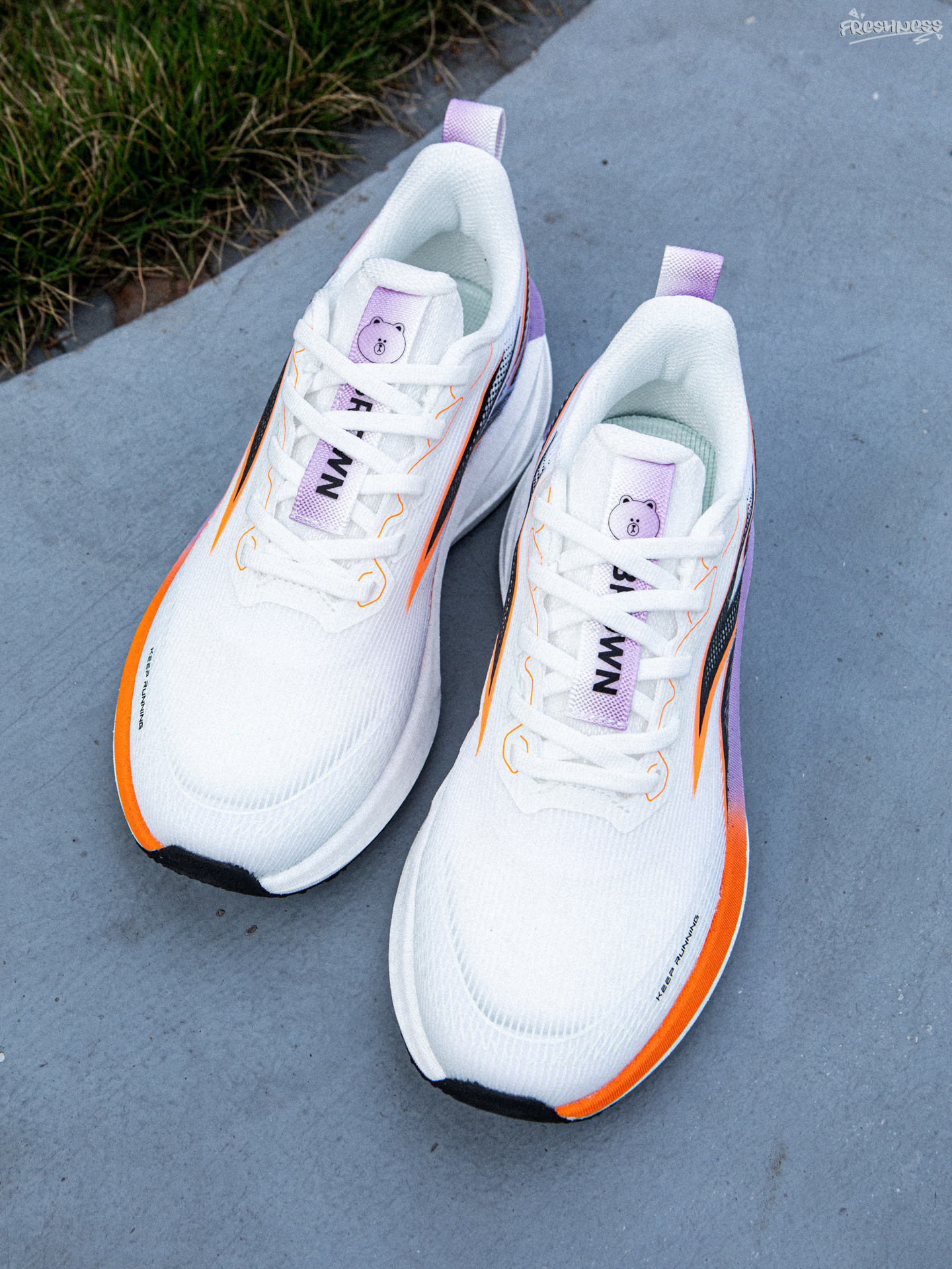 如果日常通勤想穿运动风的话,其实跑鞋是很不错的选择,轻便好穿才是硬道理。今天要分享的这双是来自于LINE FRIENDS布朗熊推出的,鞋子整体是低帮的。白色的主色加上橙色与紫色的搭配,很有活力感。搭配卫裤或者运动裤,都是不错的选择! FRIENDS