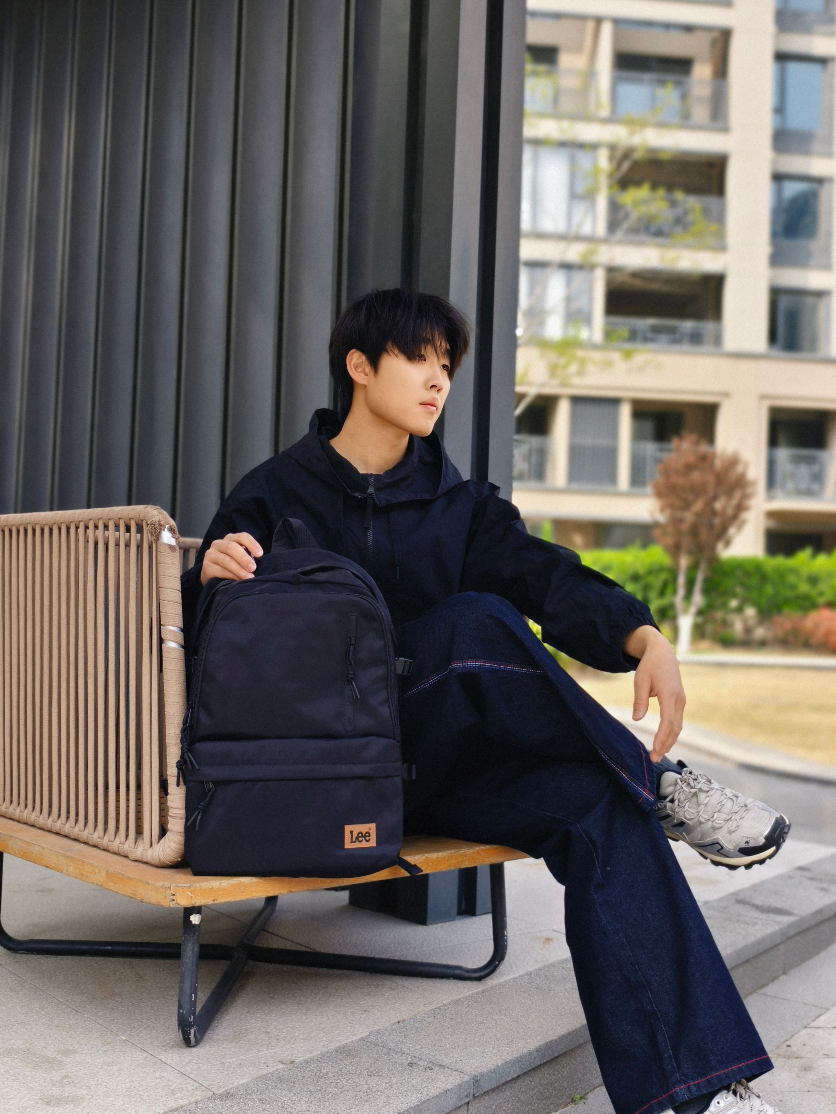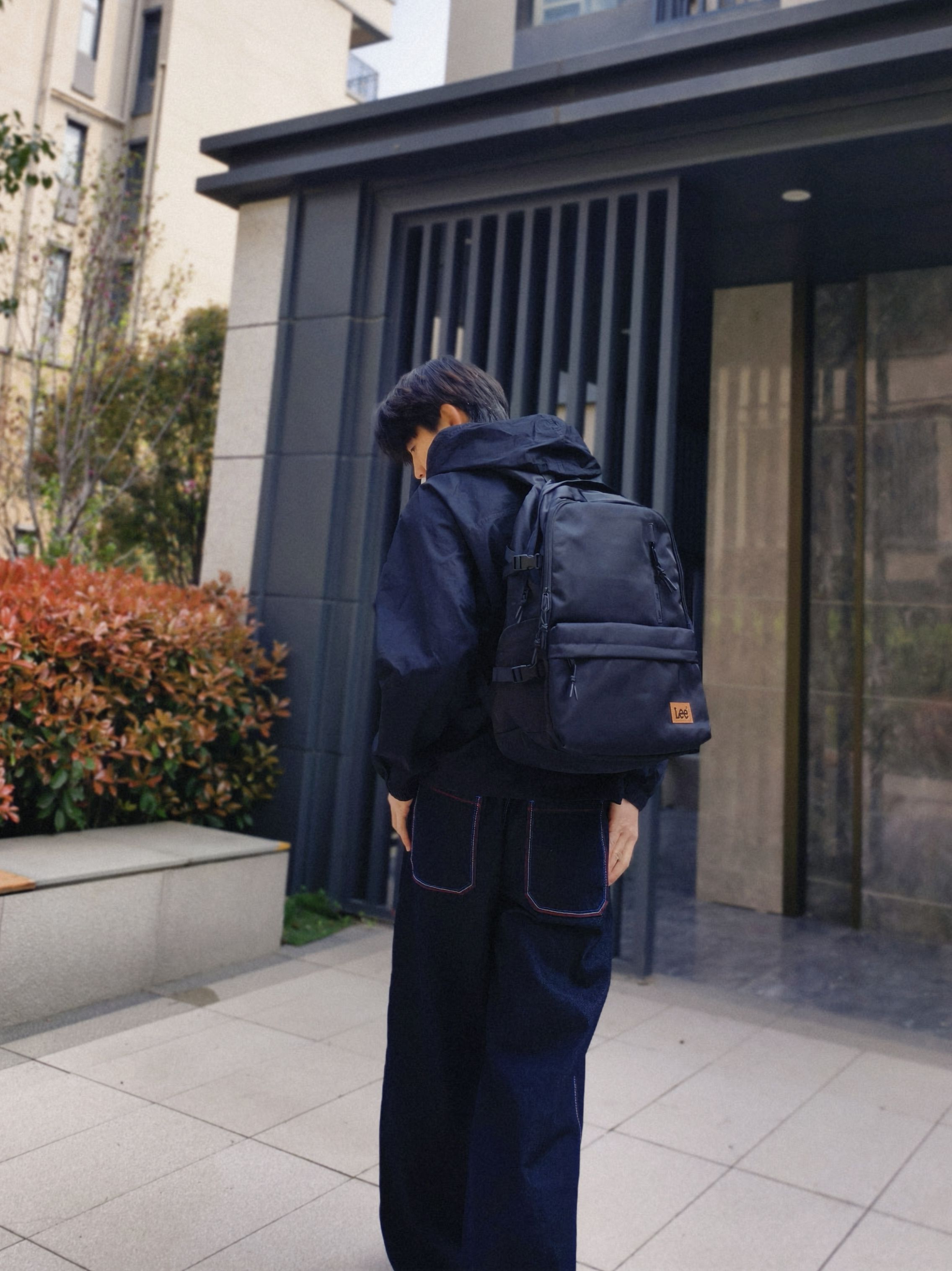 想拿捏日常松弛感?穿搭就得简约不费力🤙 ⬆️ 黑色连帽外套+Lee双肩包 休闲又自带少年感 ⬇️ 深蓝色直筒牛仔裤 用同色系深浅过渡,视觉上拉长身形 最后再背上这只Lee双肩包🎒 这个通勤氛围感是你想要的么?