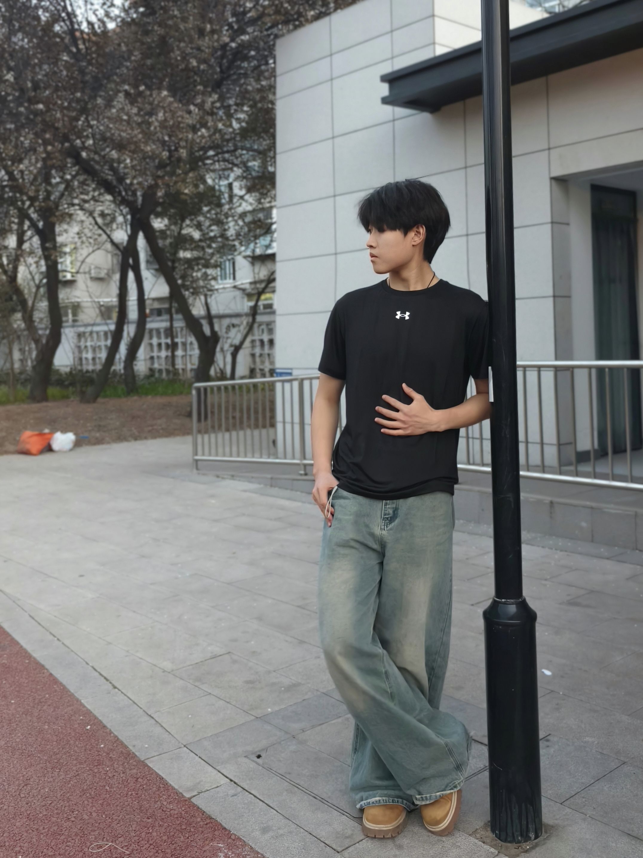 黑T+牛仔=永远不出错的少年感。 简单利落,自带元气滤镜。 不管是Citywalk还是轻运动,这身都好穿又有型。 保持热爱,奔赴山海,下一站是川西的雪山吗?🏔️
