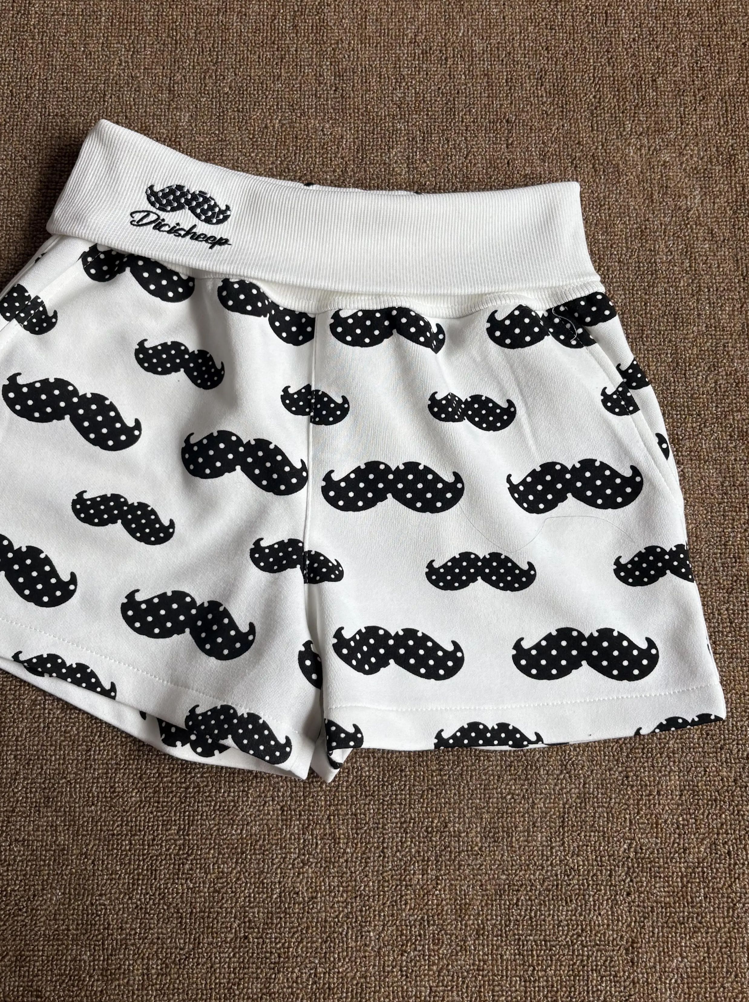 - 图案设计:满印黑白波点小胡子元素,腰头配有同系列胡子刺绣装饰,搭配英文品牌标识,辨识度拉满;:夏季居家穿着舒适亲肤,也可外搭T恤出门,适配休闲、甜酷等多种穿搭风格。