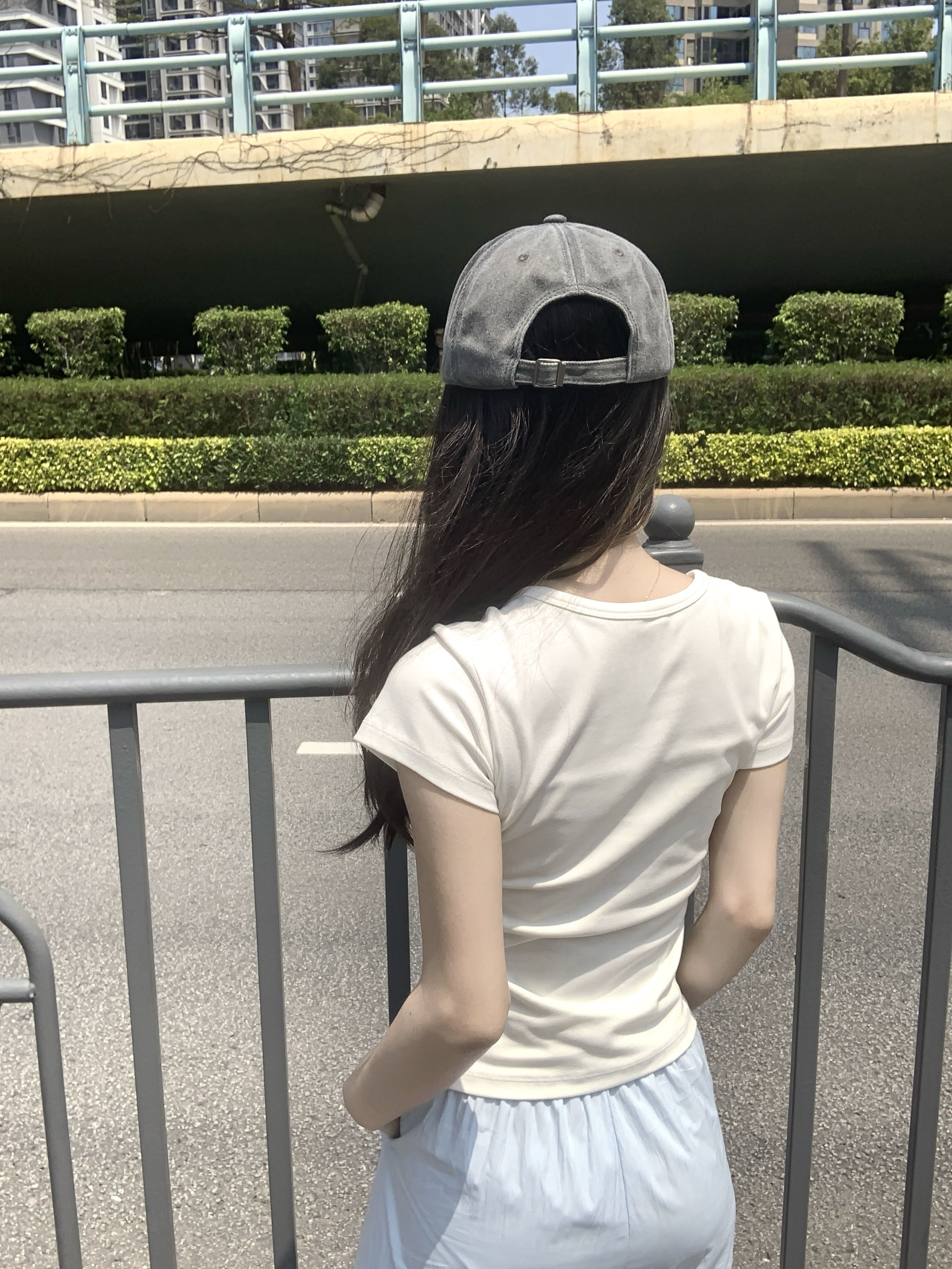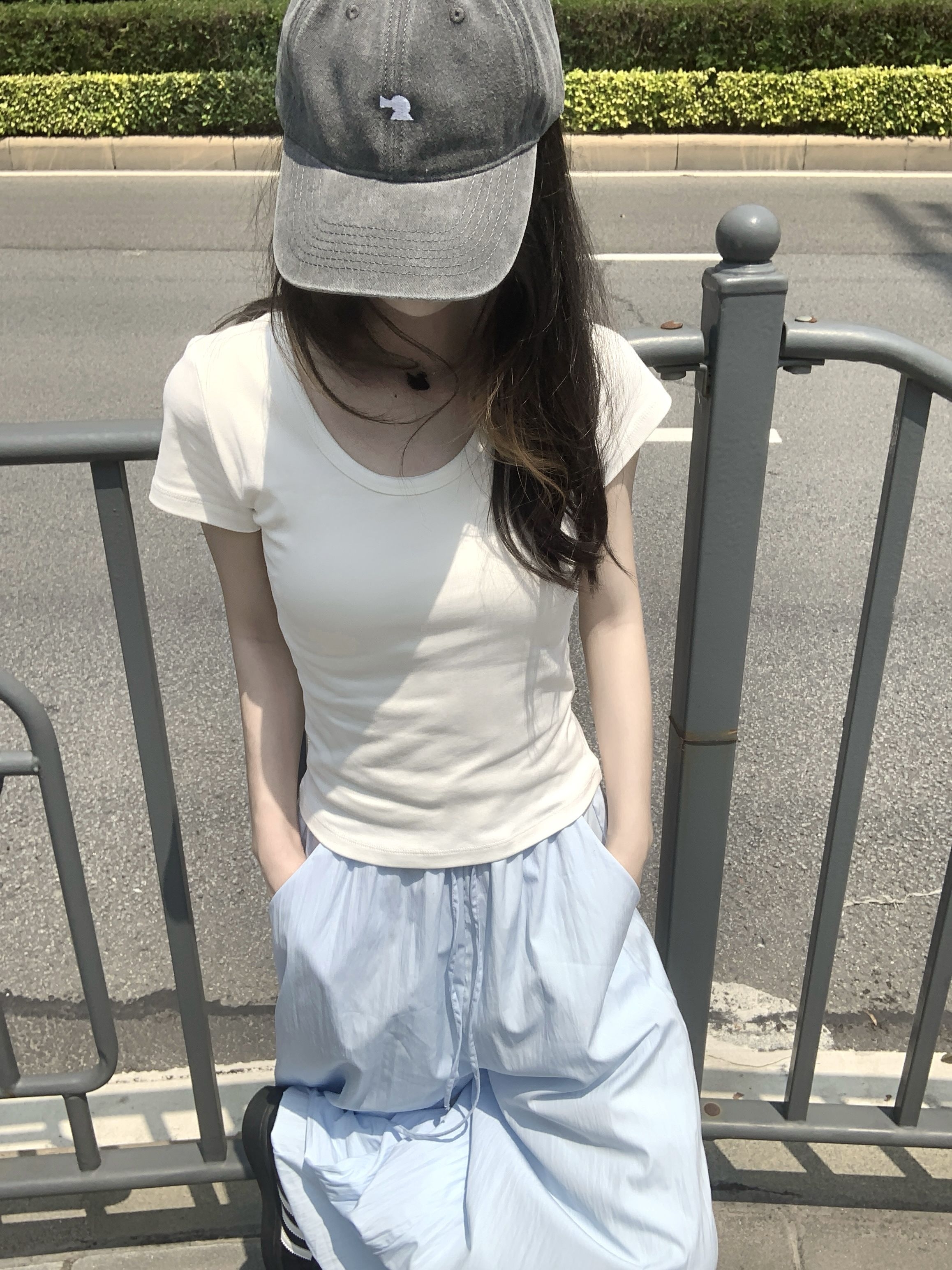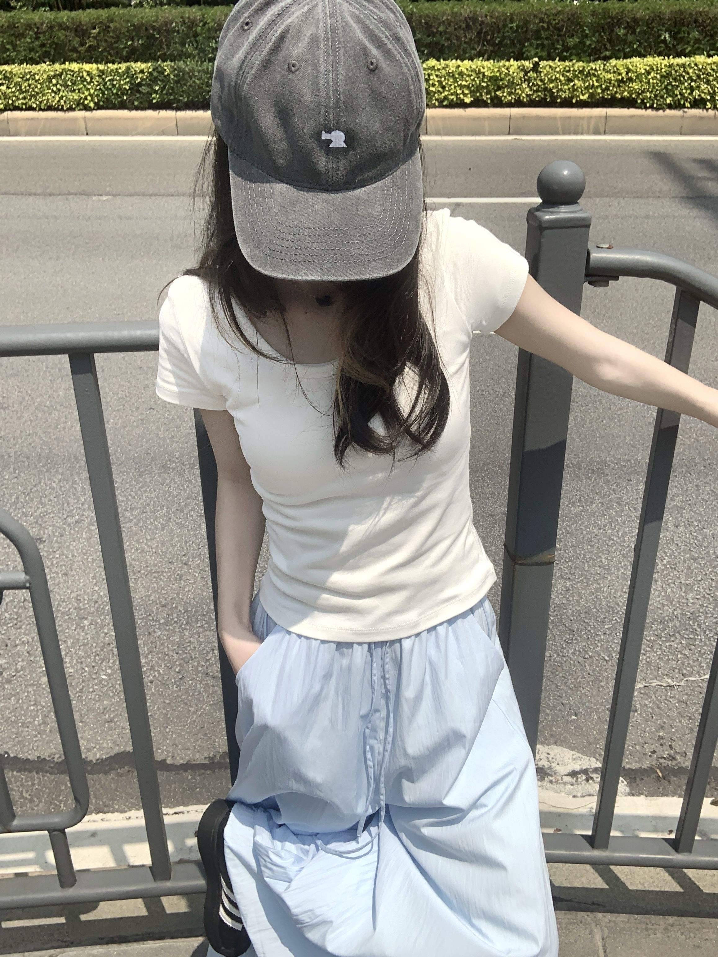 今天是温柔的海盐汽水味的穿搭! 上身一件修身的棉质白T,简约又好看,可以修饰身形,穿着舒适又百搭~ 下身一条浅蓝色花苞裤,随性又慵懒 戴上灰色棒球帽,多了一丝酷飒的小心机☑️ 这种清爽的蓝白配色,尊的适合春日明媚的阳光,日常逛街或者去约会都可以穿这身👌👌