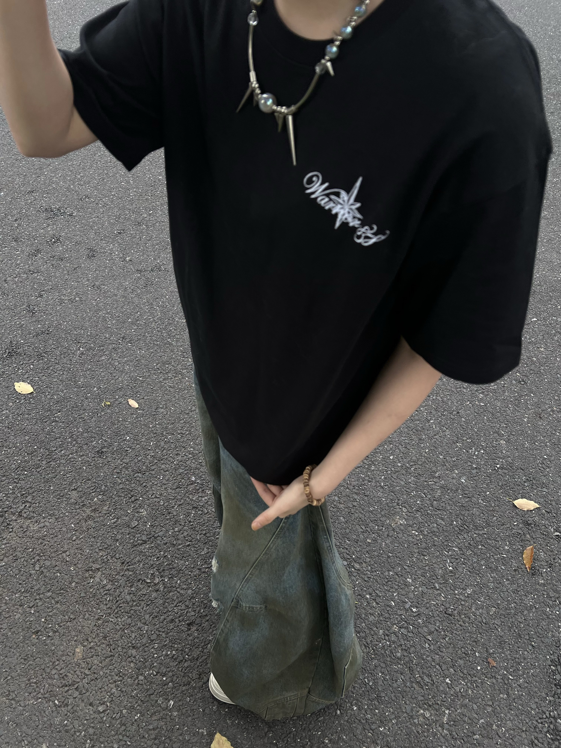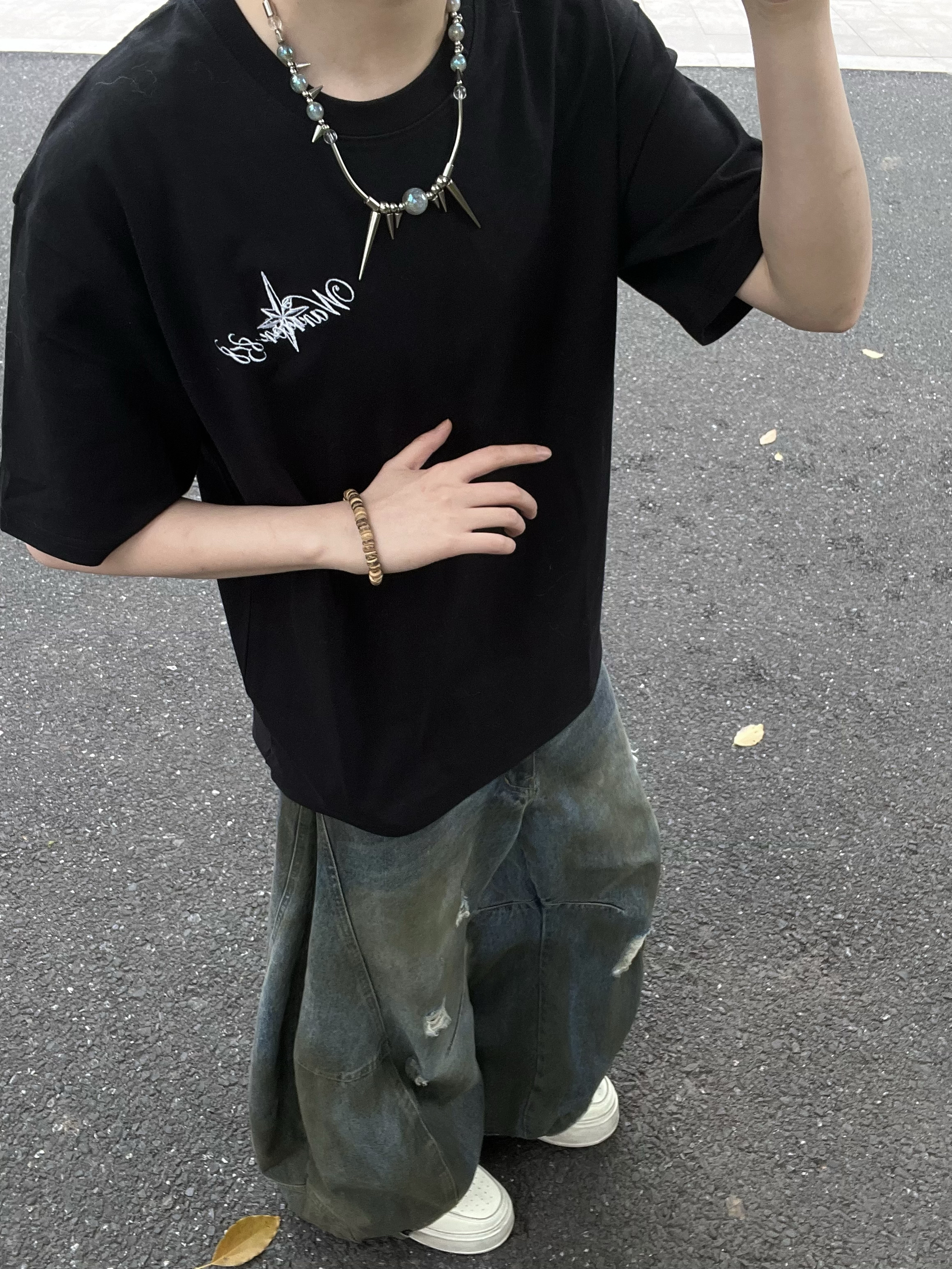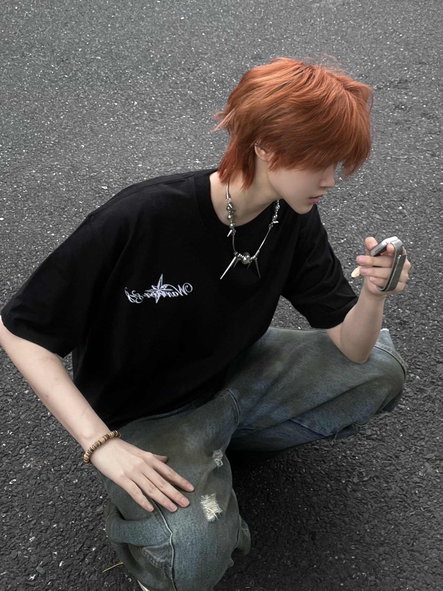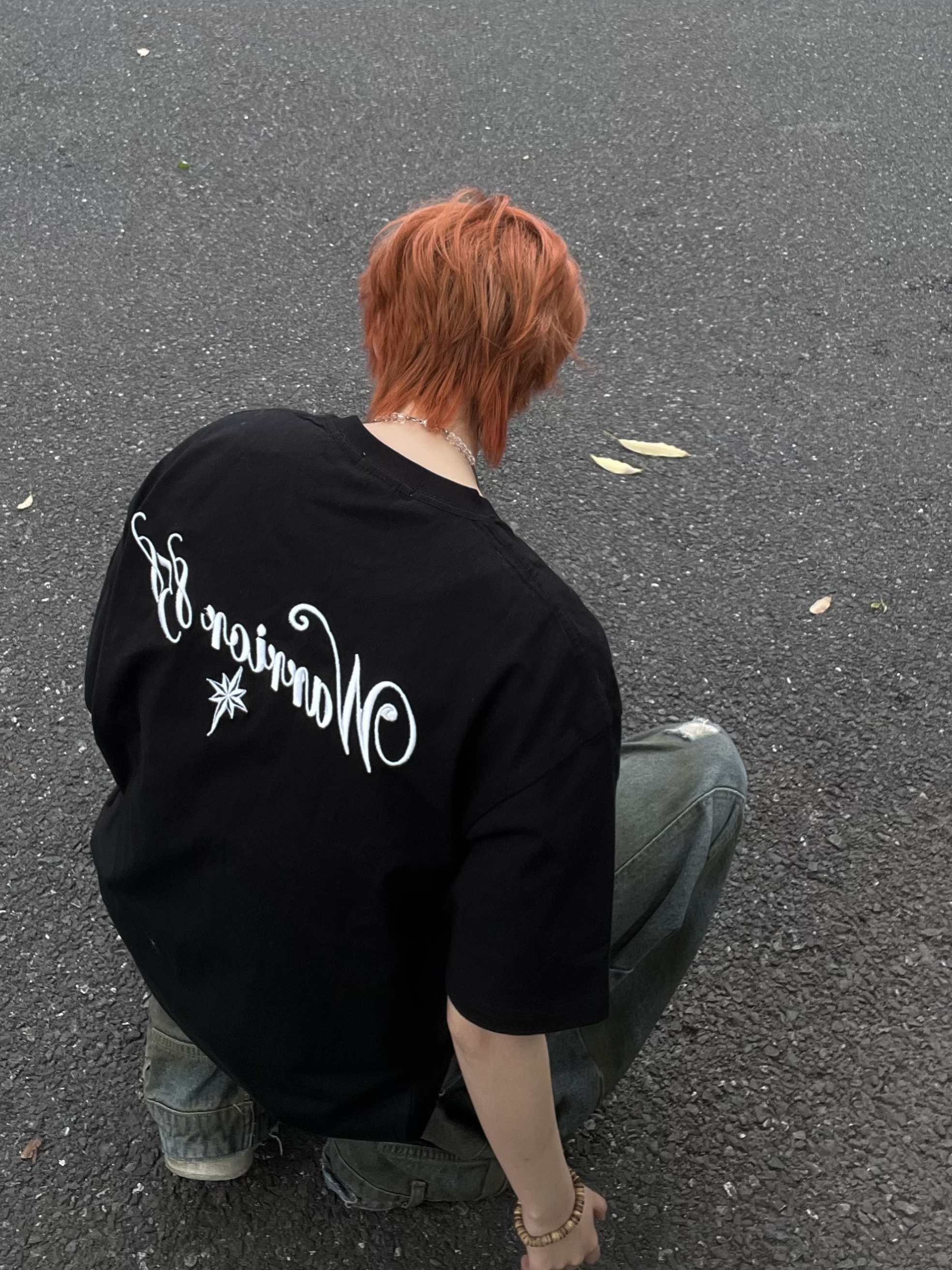 夏天的衣柜里,永远缺一件耐看的黑T 这件真的超出预期! 前后呼应的手写体刺绣+星星元素 不是那种烂大街的印花,质感很在线 宽松落肩版型,对身材包容度很高 搭水洗做旧牛仔裤,街头少年感直接拉满 日常出门随便一套,不用费脑也很有型