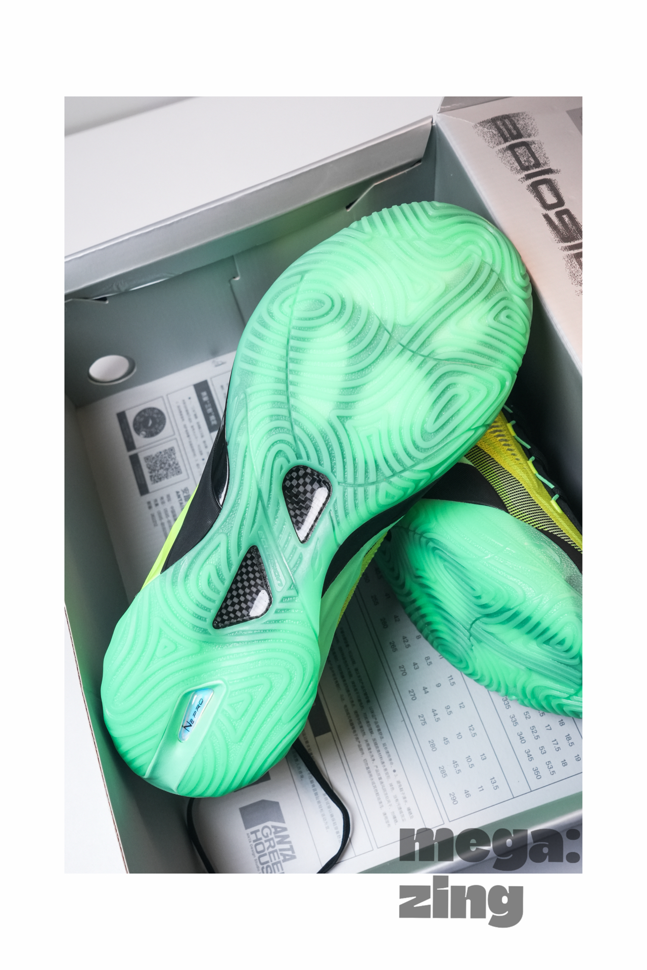 最近这双ANTA Sneakerverse eclosion Type 2的风头大有盖过Type 1的势头,只因为那个男人的上脚,当然另一个原因是也有不少备受大家喜欢的新配色推出。眼前这双绿鸟翼凤蝶就很讨喜,黑绿色的搭配在编织鞋面上呈现出了不同质感的效果,后跟电镀绿色的TPU是我最喜欢的细节。前后掌填覆氮Pro,碳板支撑,外底LTR橡胶告诉我们它还是一双为实战准备的鞋款。