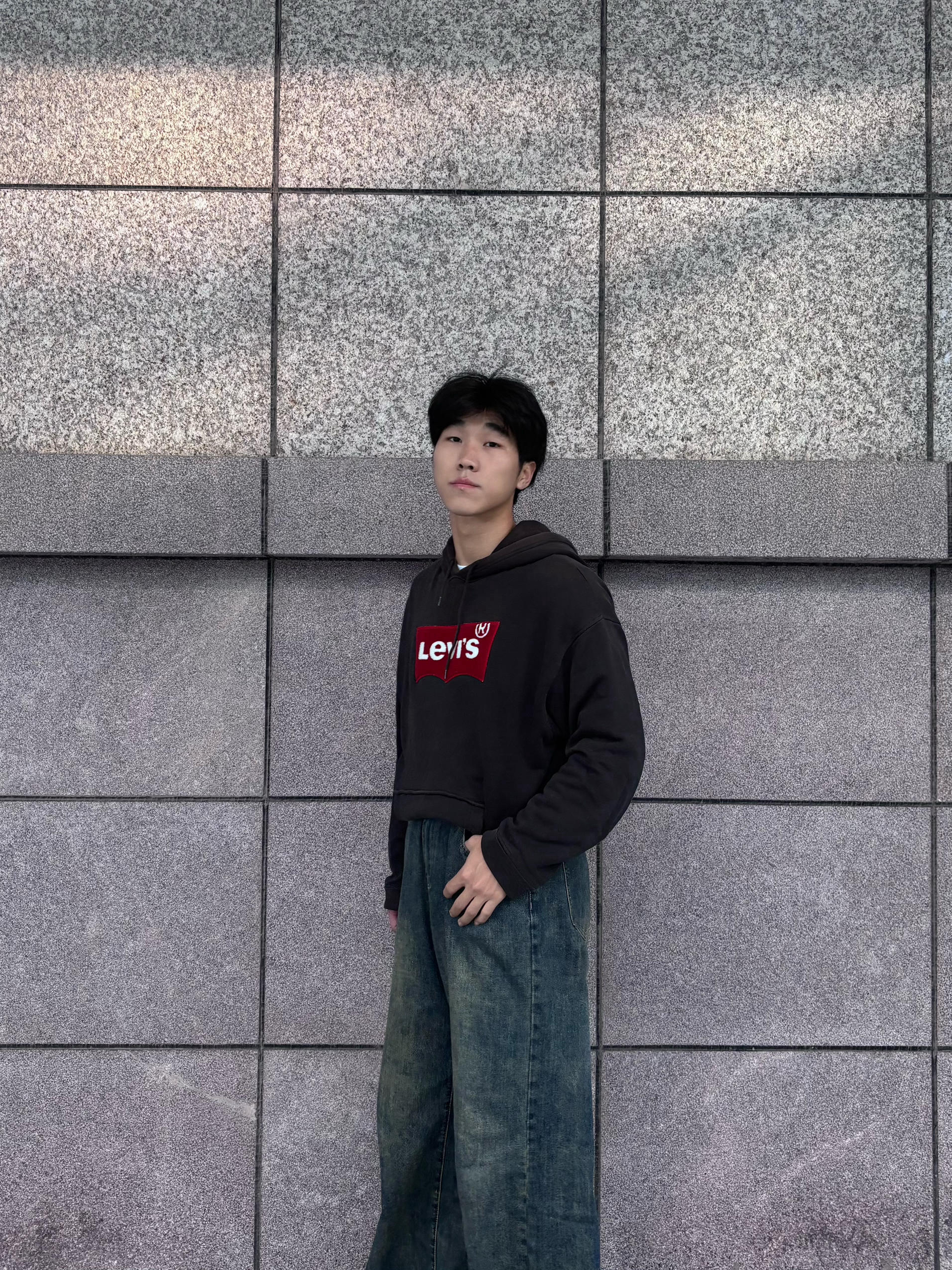 真的很爱这种把春天踩在脚下的野系穿搭,黑色Levi's卫衣自带复古质感,内搭小露一层白边,细节感拉满 做旧水洗的阔腿牛垂感绝了,搭配复古德训鞋,走路带风的松弛感直接拿捏。春天就是要这种不被定义的随性,一套出门,自在又有范儿
