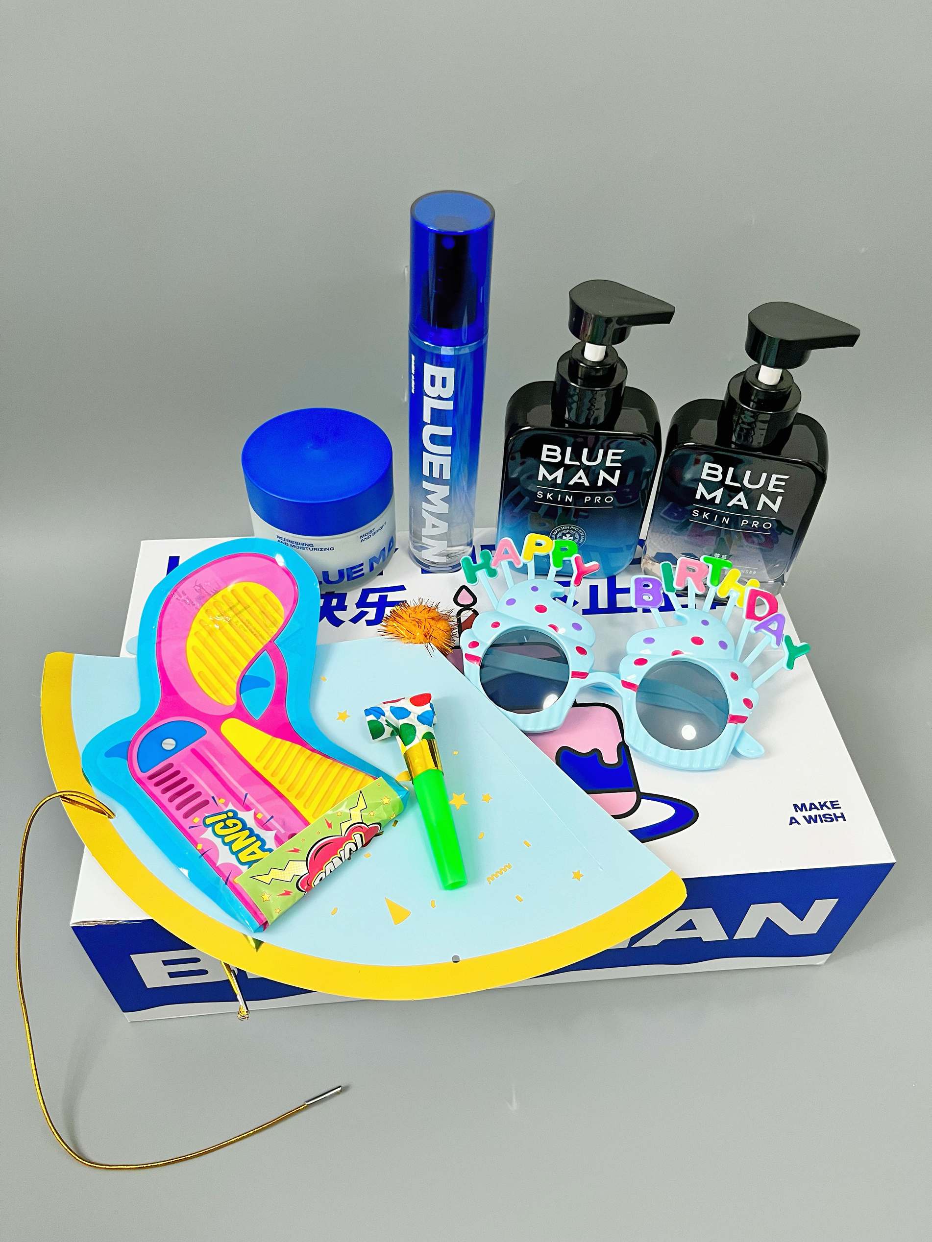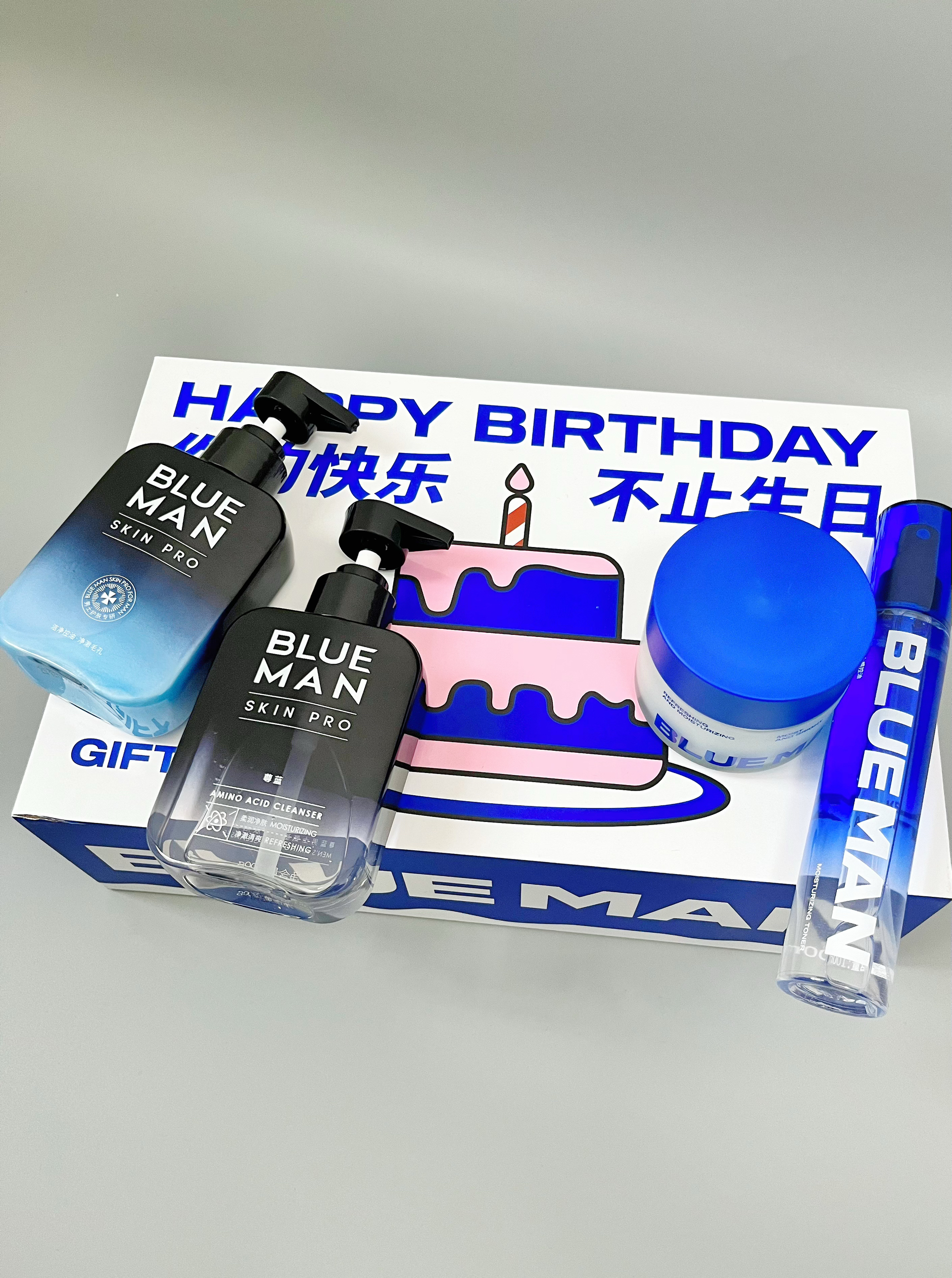男朋友生日要到啦 今年打算给安排尊蓝的护肤套盒 还蛮应景的 整个包装加周边都是生日系列的主题 敲有仪式感呢 里面有两瓶早晚洗面奶+水喷雾+保湿面霜 男士护肤一套就搞定了 补水的同时有能控油 实用又兼具仪式的礼物哪个男生能拒绝~