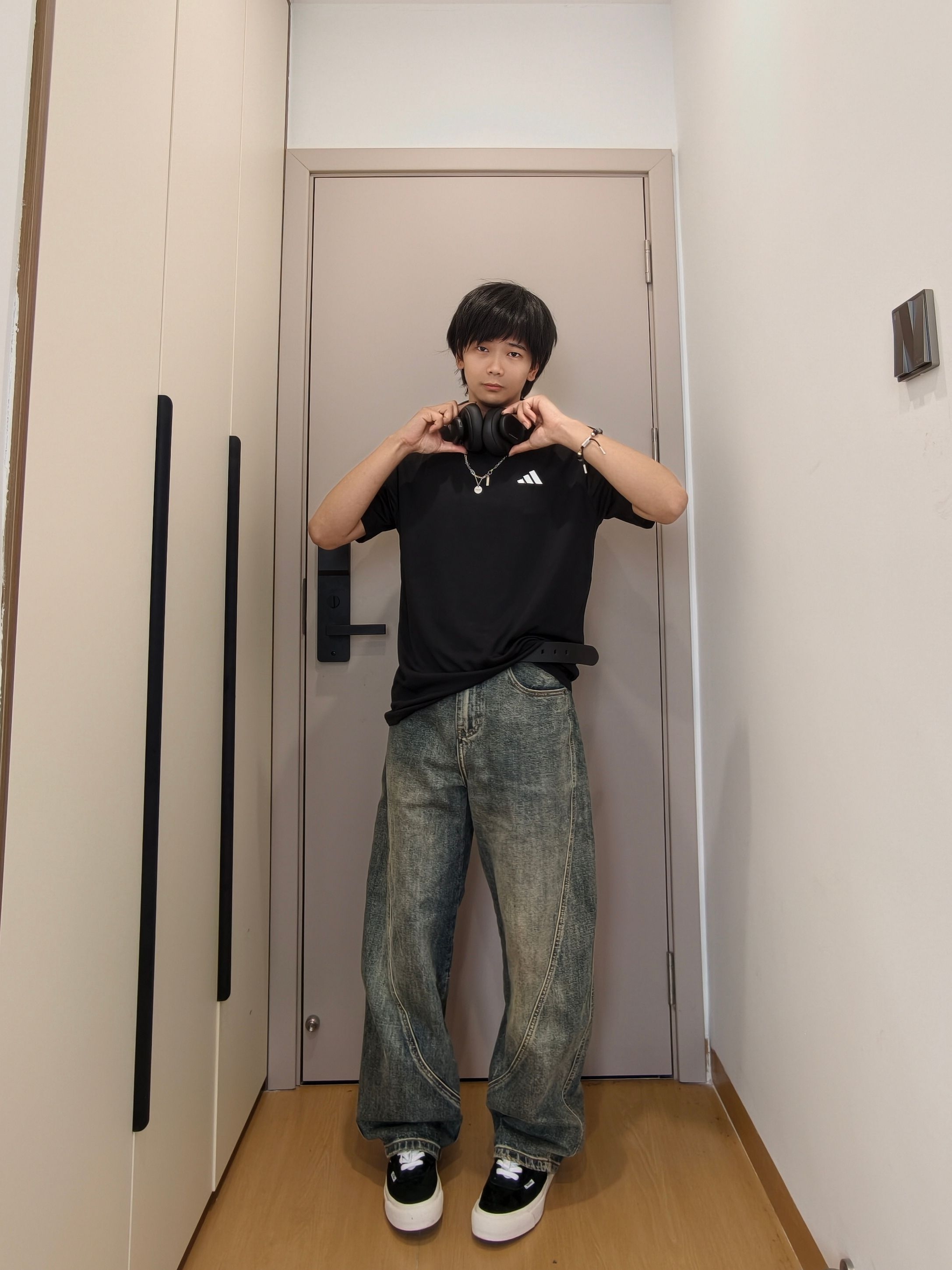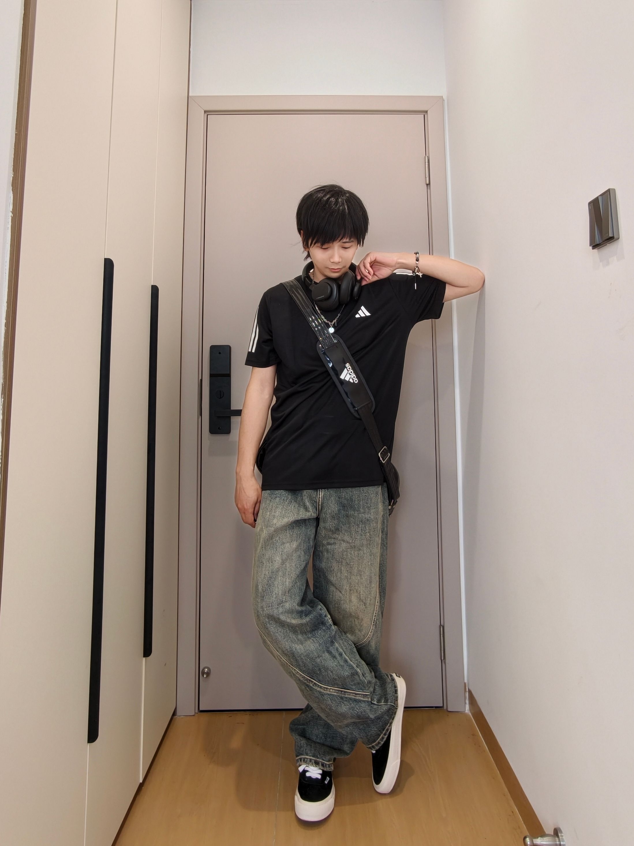 黑色阿迪短袖+廓形弯刀牛仔裤 舒适又简单,懒人通勤包舒服的 不用太复杂就好