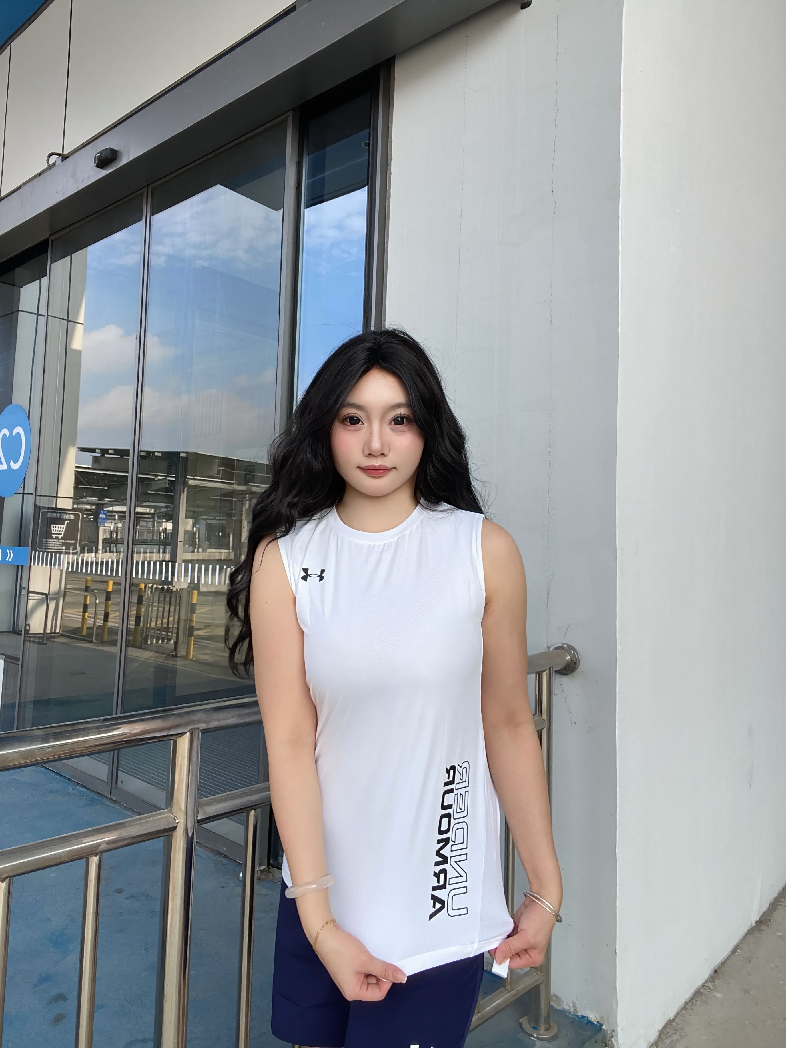 安德玛这套无袖运动套装太绝了 白背心+藏蓝短裤 清爽又显活力 速干面料透气不闷汗 打球、日常穿都超合适 微胖姐妹也能轻松驾驭 很显瘦也耐热 运动感拉满,运动打球穿搭不二选择