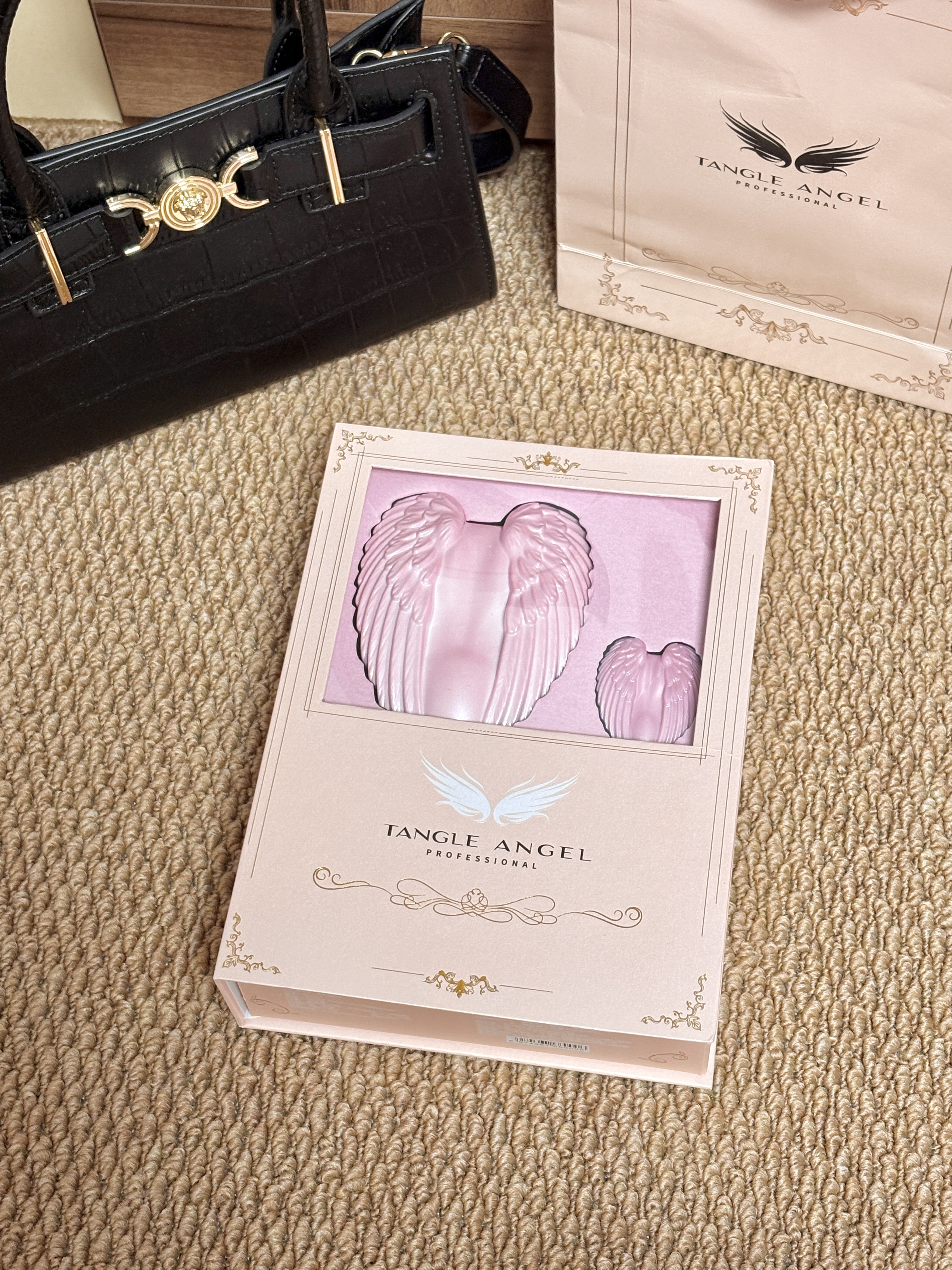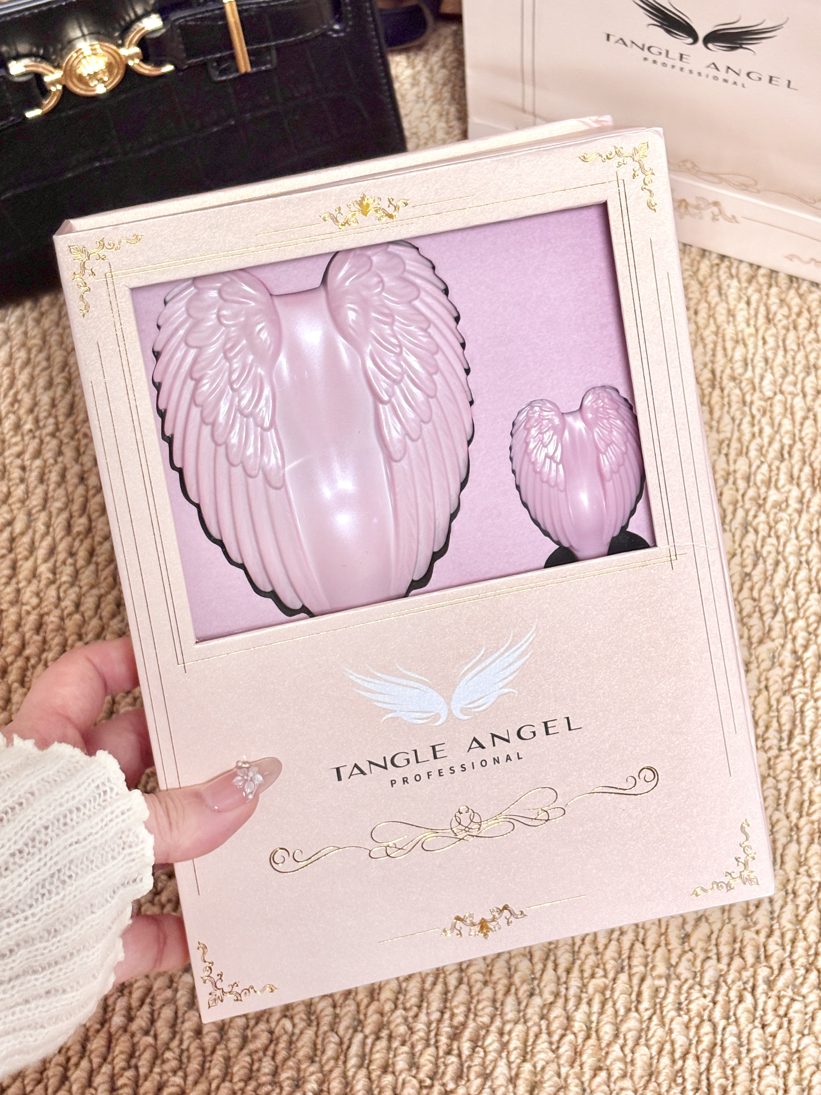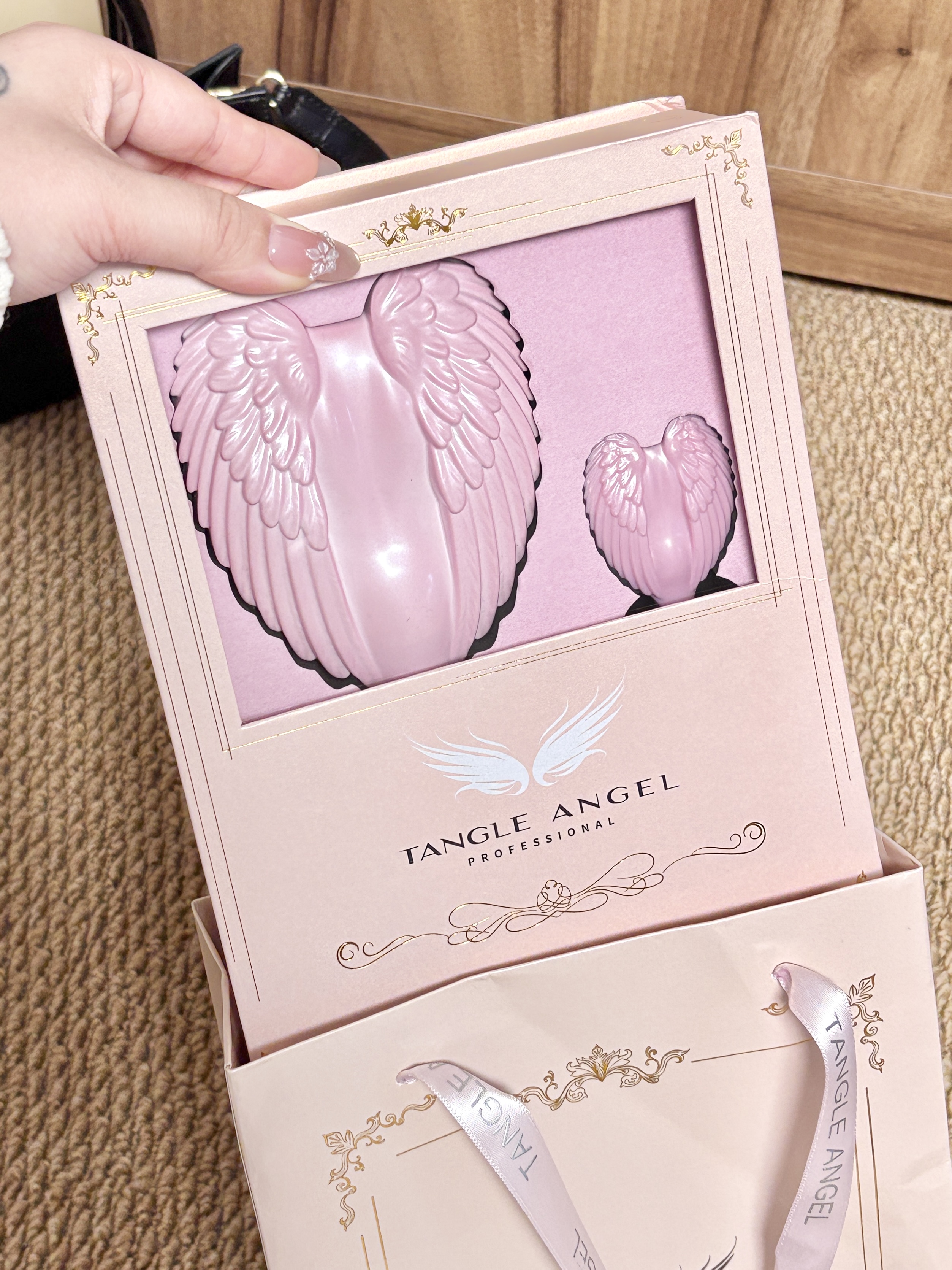真的好爱这种粉粉嫩嫩的小东西~ TANGLE ANGEL天使气囊梳太戳我惹 立体小翅膀造型 温柔又有公主感 里面有一大一小两把 敲击实用 梳齿软软的 梳头顺滑不拉扯头皮 炸毛星人梳完头发蓬松又柔顺 带气囊还能按摩头皮 可舒服啦! 迷你款小小一个 随身携带也方便 礼盒包装特别精致 少女心爆棚 这套自用或者送礼都hin有仪式感呢