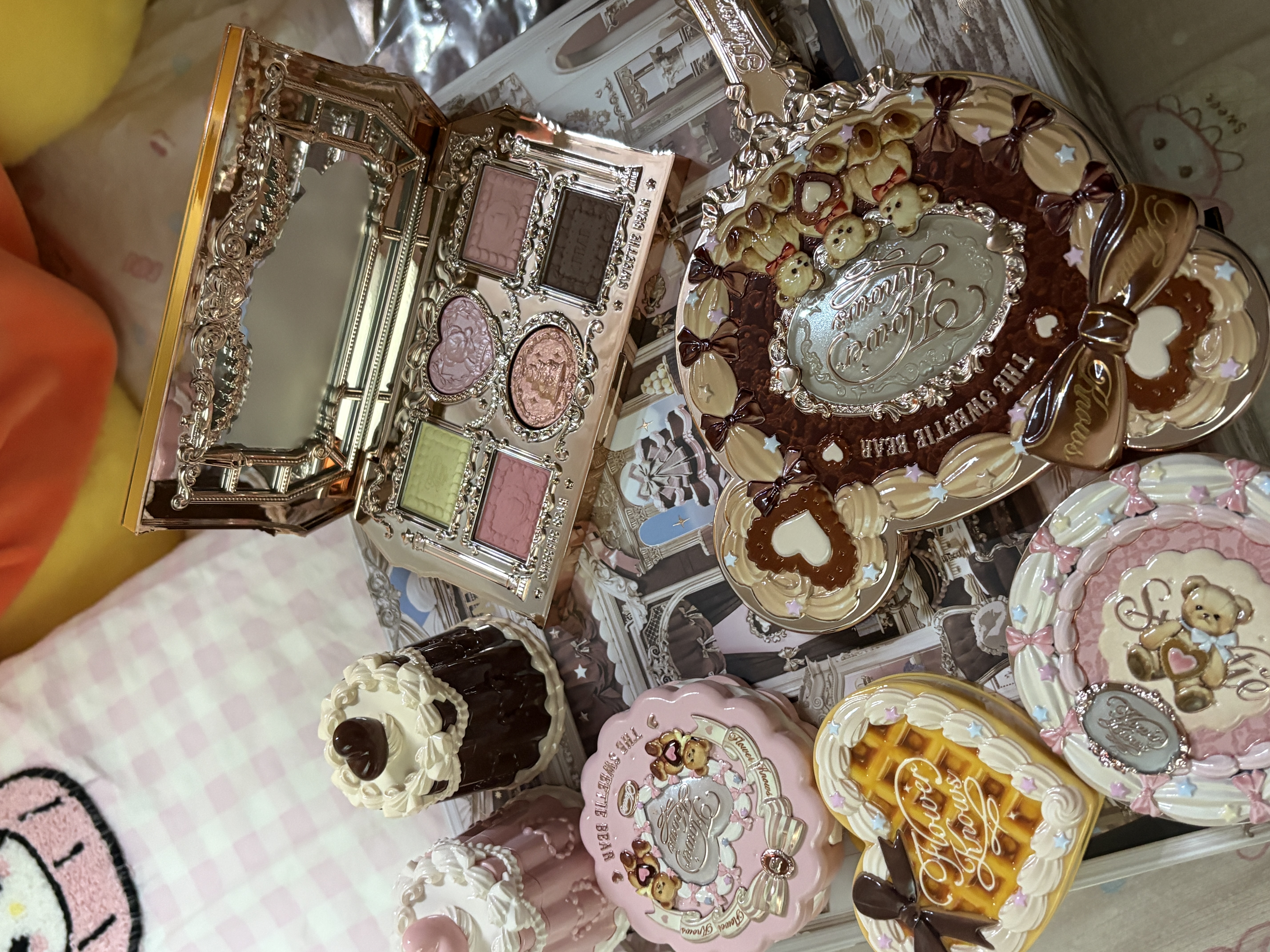 本篇笔记关联了花知晓 甜心小熊系列六色眼影 粉质细腻易上色不易飞粉 6.5g 02草莓牛奶、花知晓 晚茶彩妆套装 持久定妆 唇釉C7 金麦穗 3.5g+腮红01 雪霜珍珠 5g+眼影02 天空城 6.3g等商品,为用户提供真实的使用体验和购买参考。