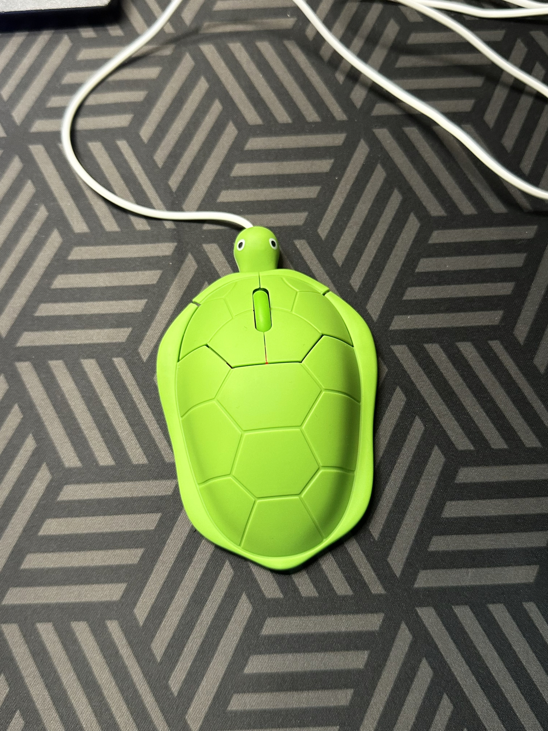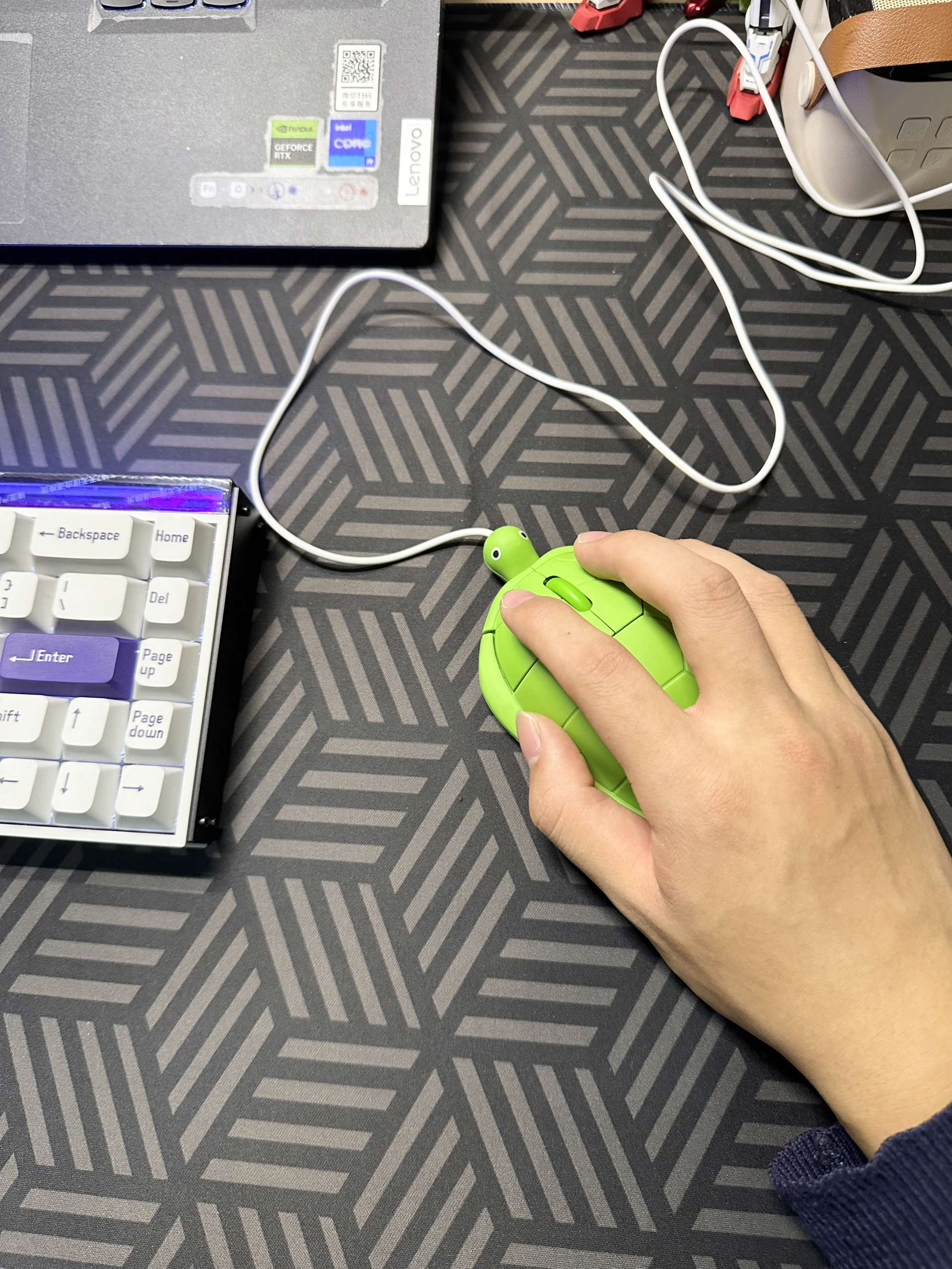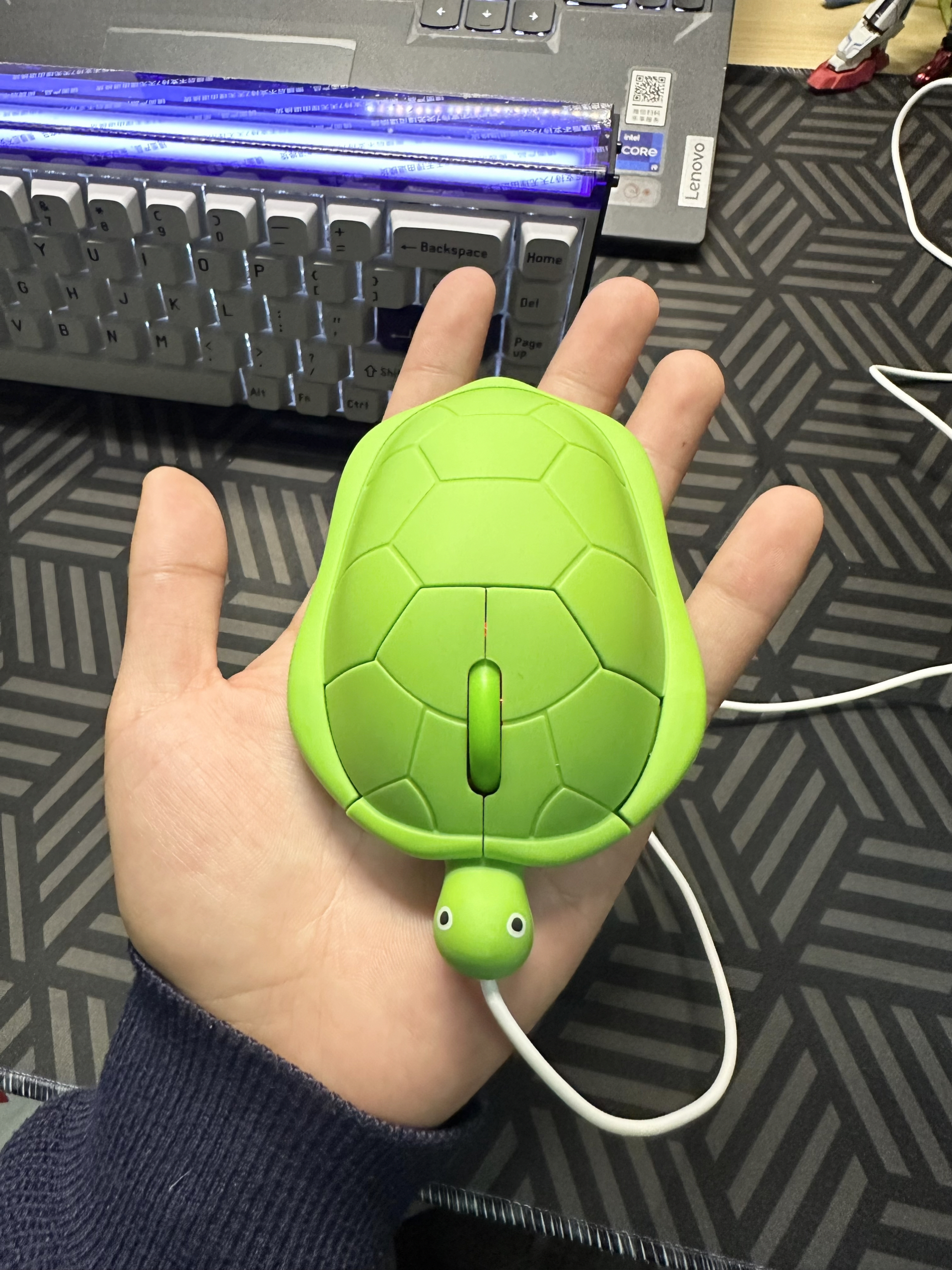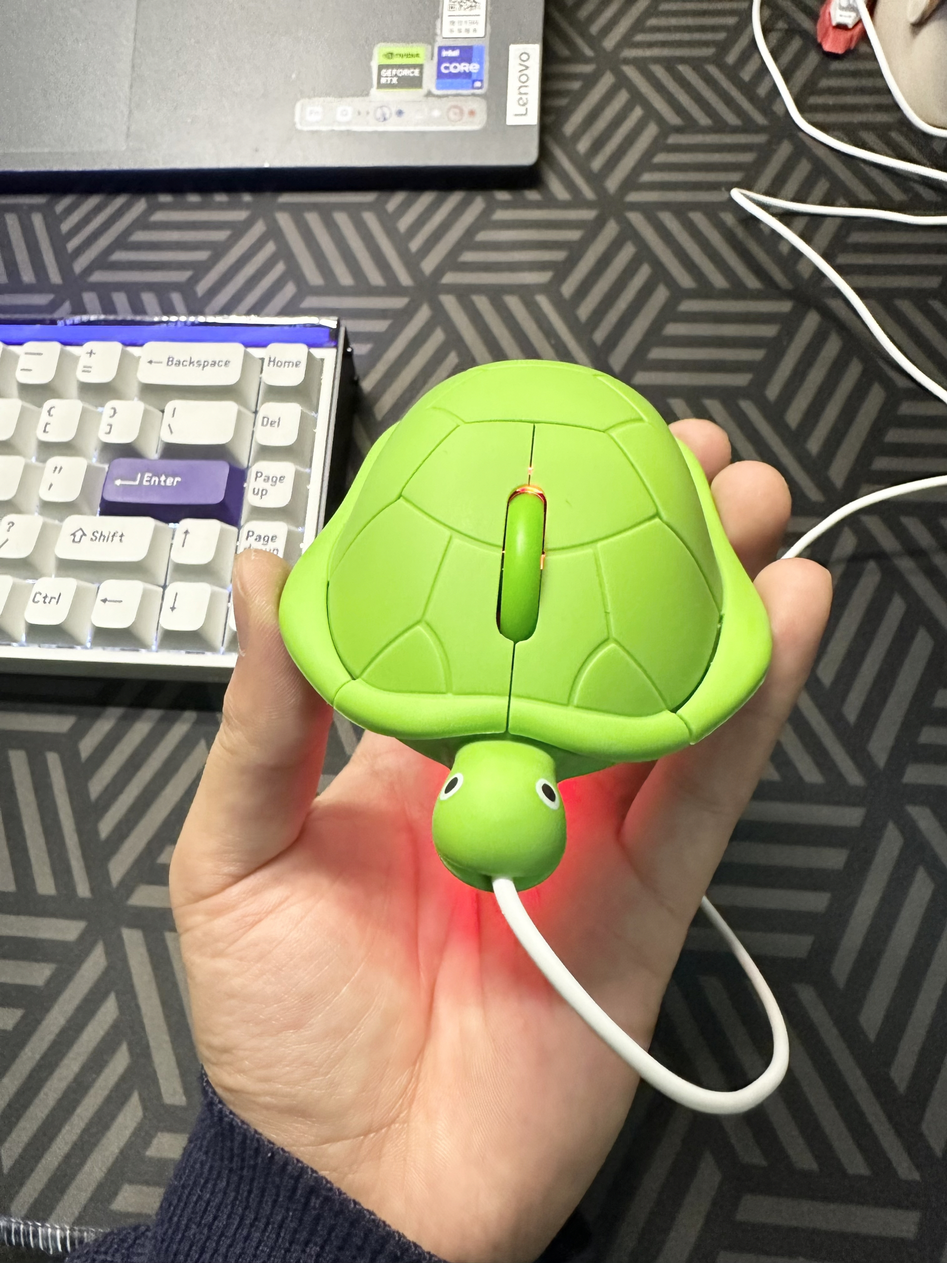 哈哈,网上很火的小乌龟也是用上打瓦了哈哈! 质感,颜值也是很好看 很吸引人 你还别说,用这个鼠标打瓦也能颗秒 握感还行,适合手比较小的人使用 握感舒适度高,在游戏中操作也很顺手~搭配键盘办公超便捷 主要可爱的乌龟🐢造型真的很吸引我 不用的时候放在桌面上也好看
